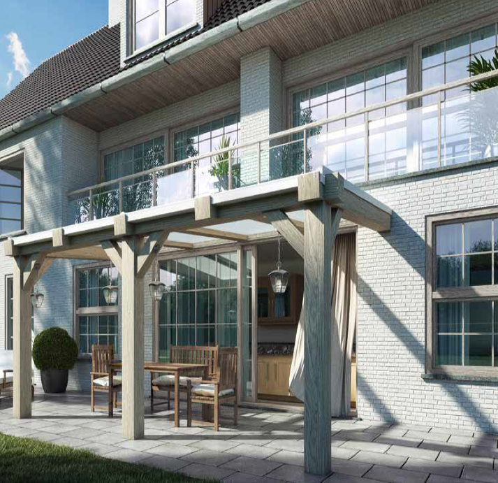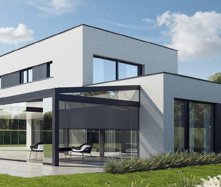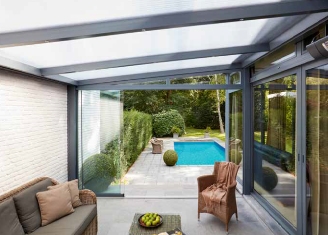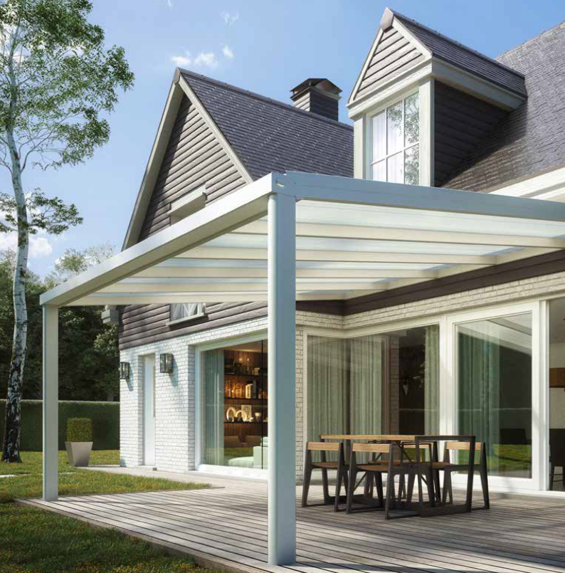Les abris de terrasse Skylux sont disponibles dans une large gamme de couleurs et de styles, pour s'adapter à tous les types de maisons.