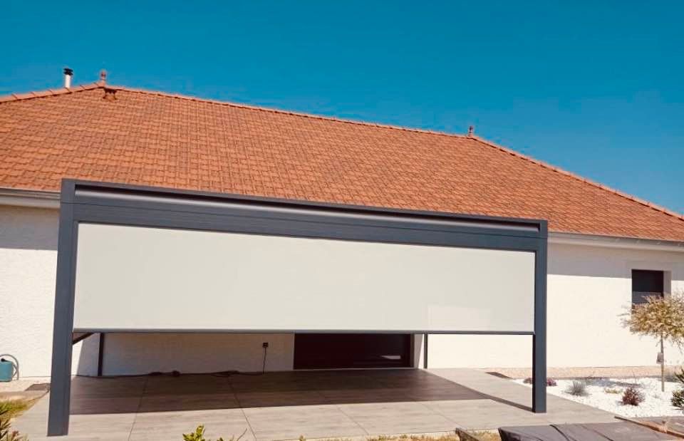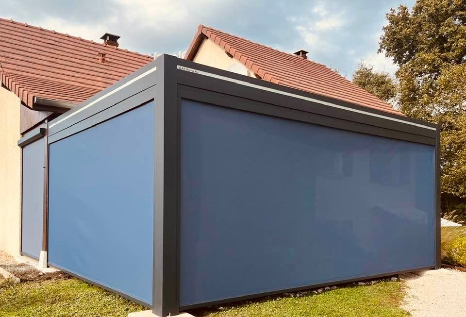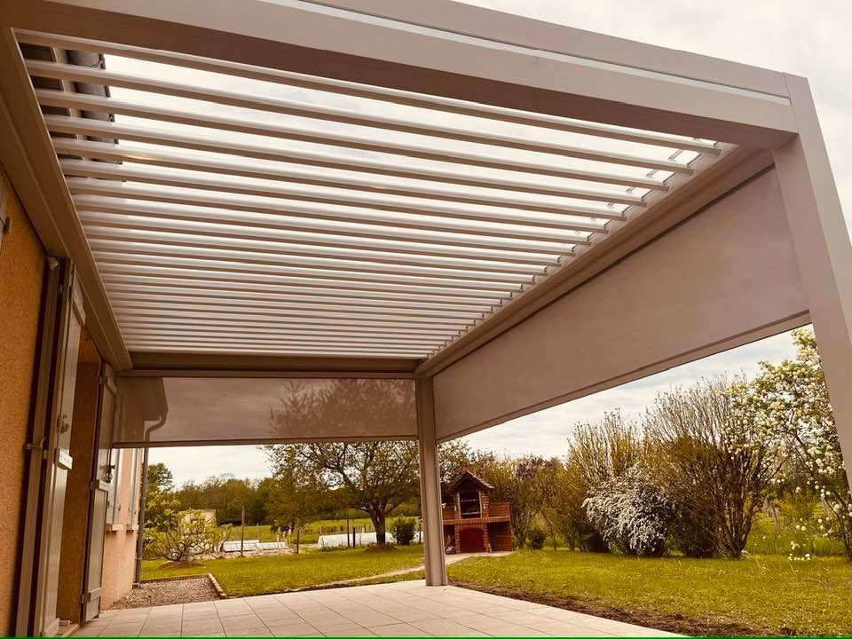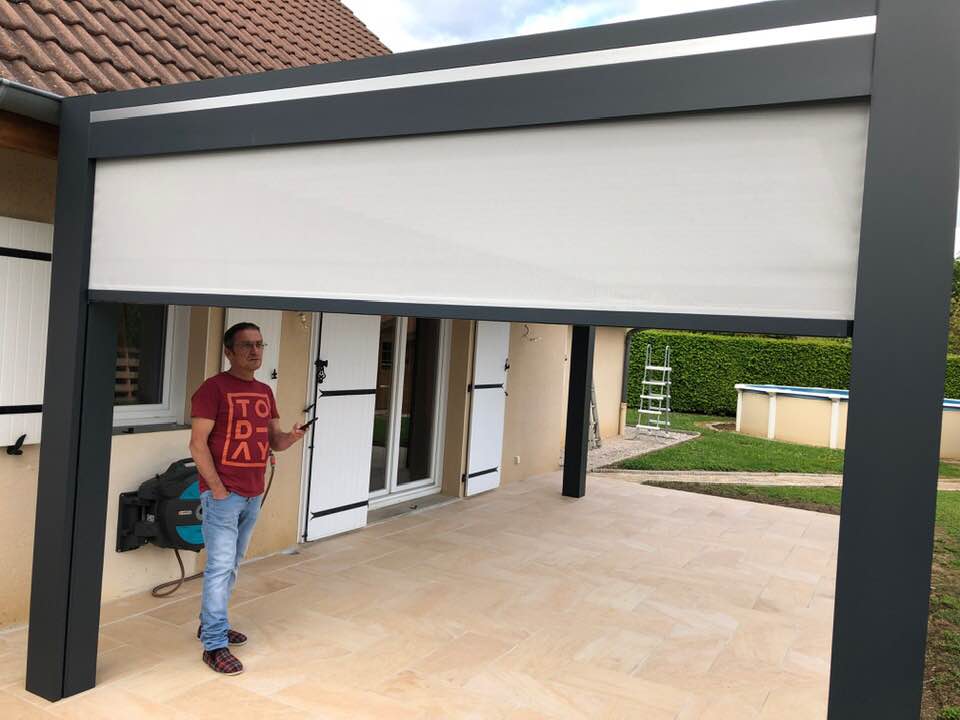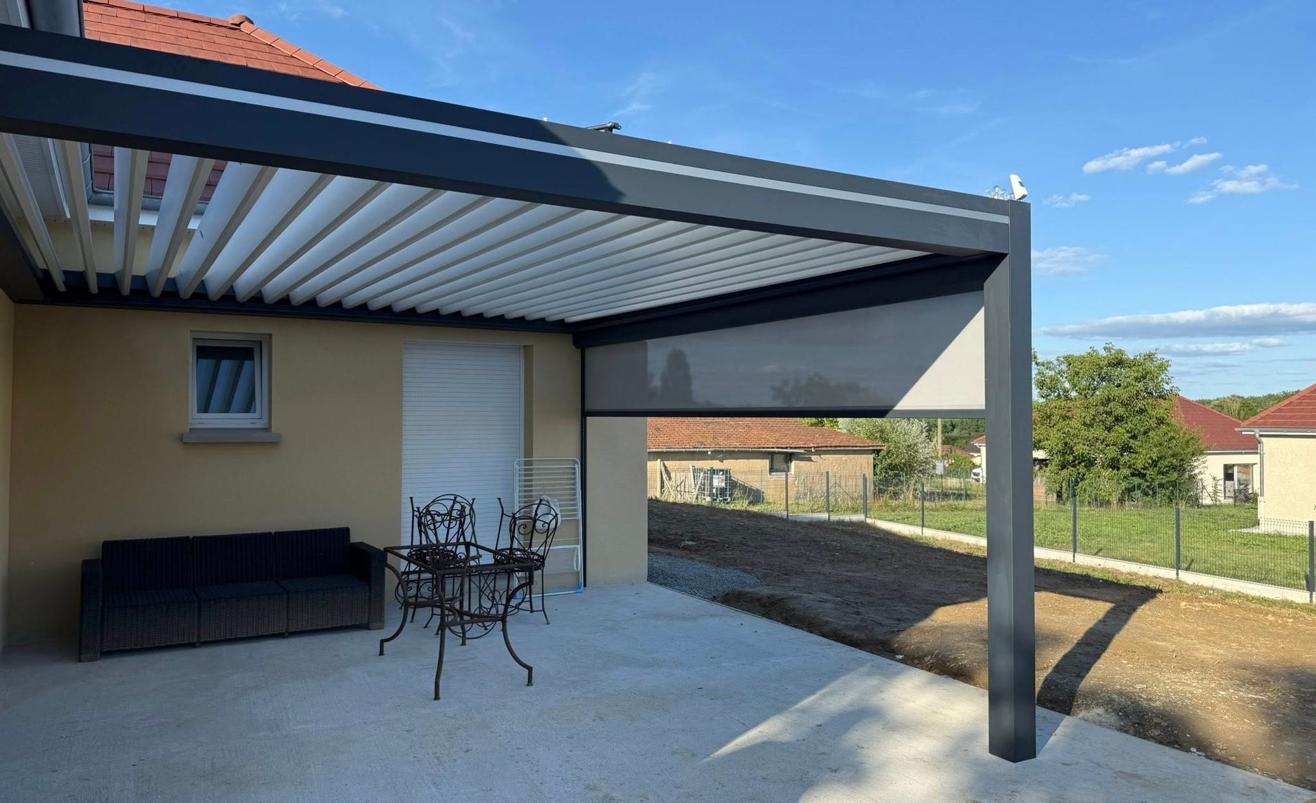 À Saint-Germain-du-Bois (71) pose de la pergola « lux intégral » bioclimatique Art Home Alu, avec toutes les options :