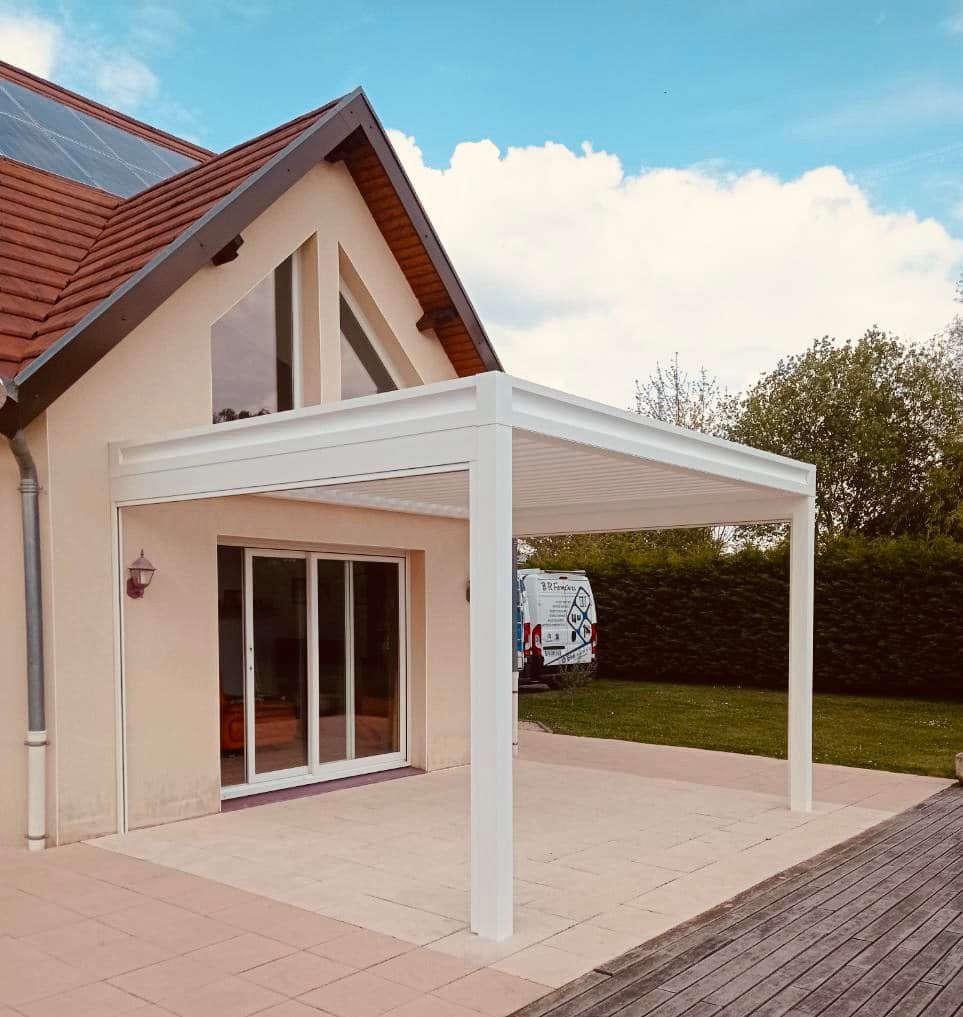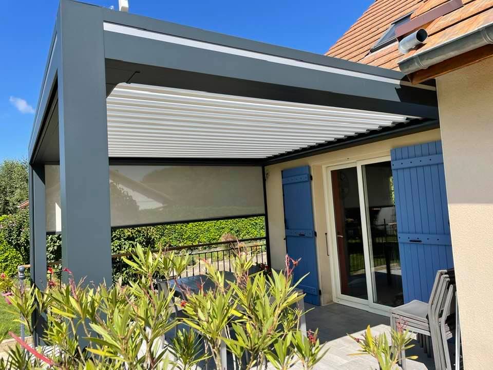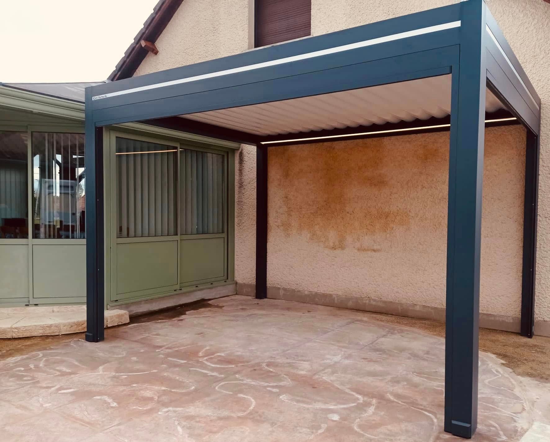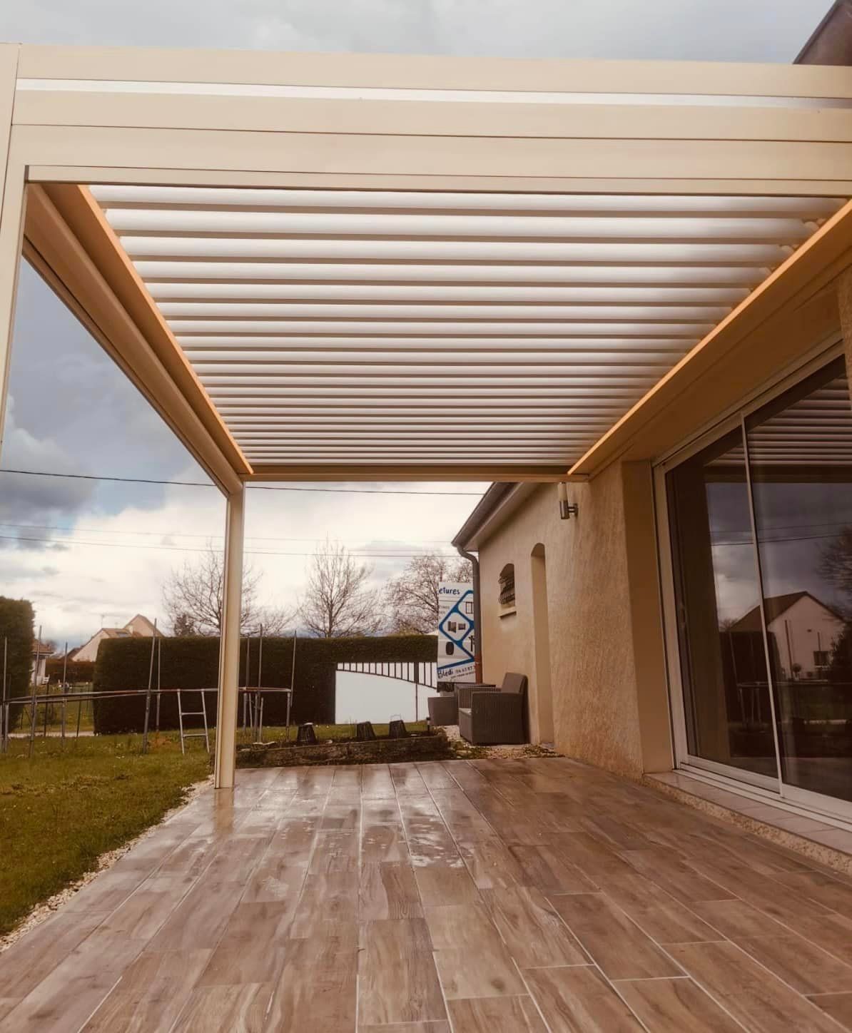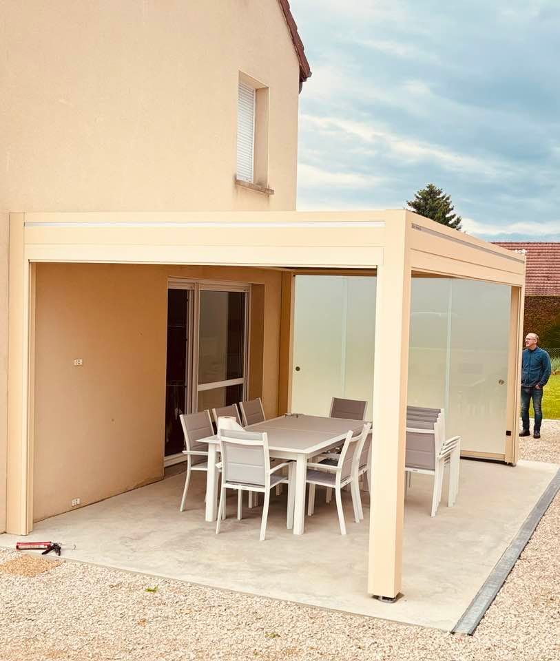 À Chivres (21) installation d’une pergola bioclimatique toutes options Art Home Alu de la gamme « lux intégral » :