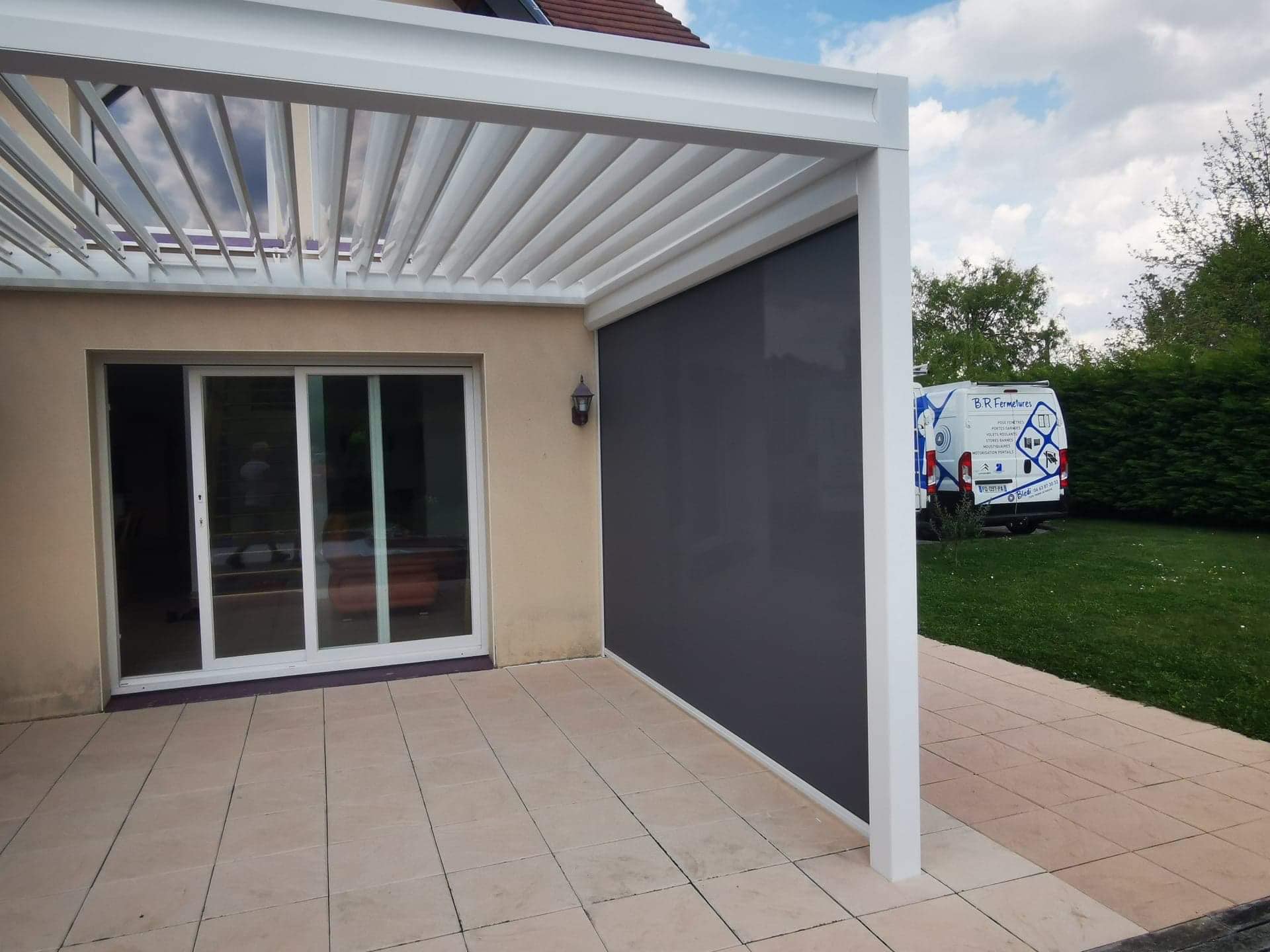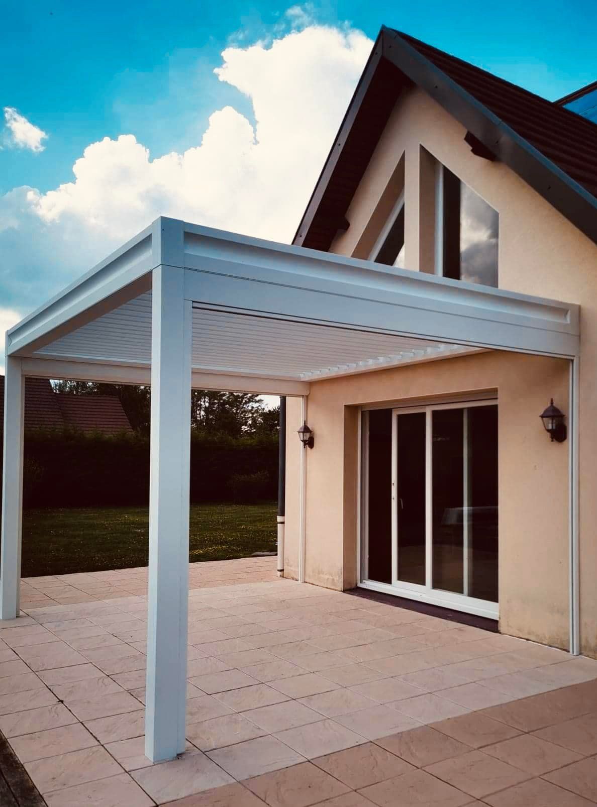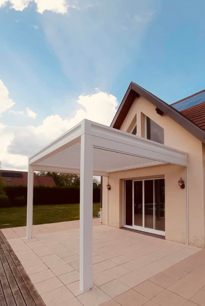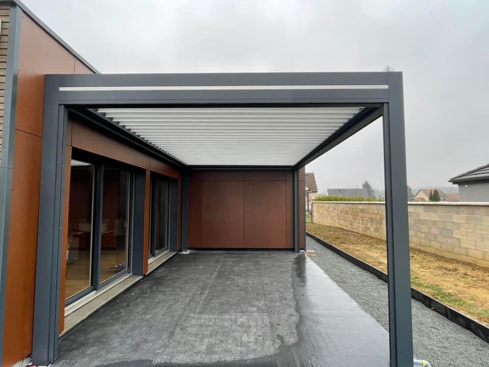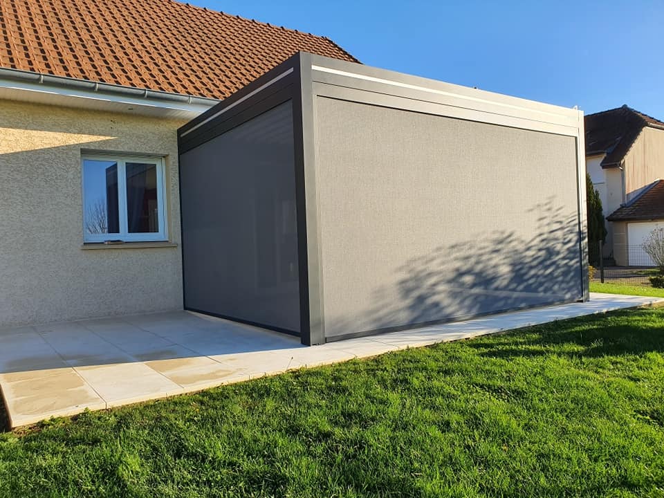 À Chivres (21) installation d’une pergola bioclimatique toutes options Art Home Alu de la gamme « lux intégral » :