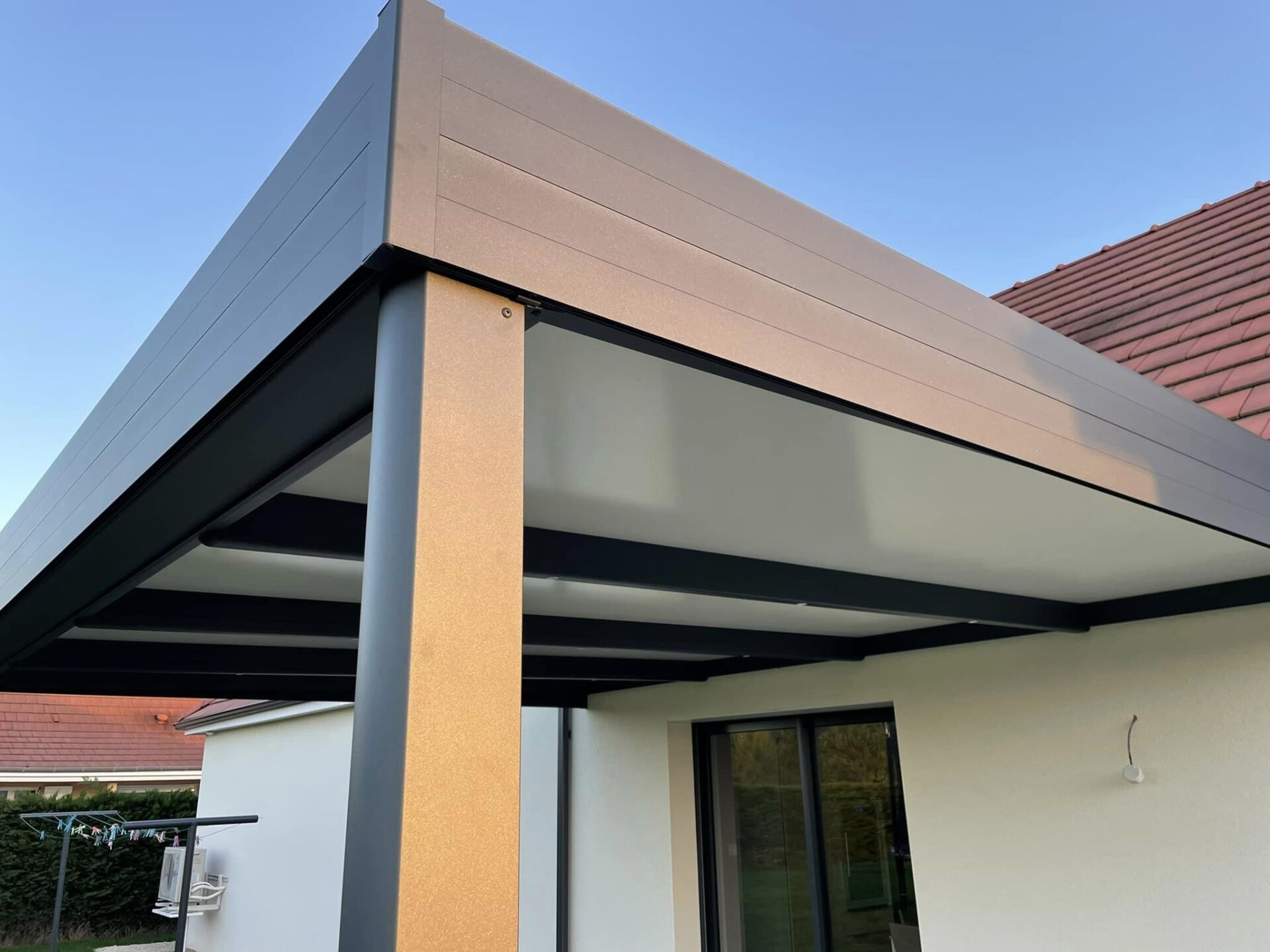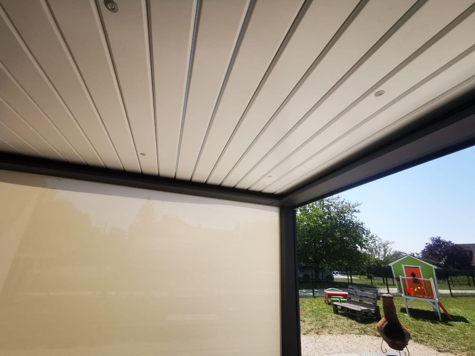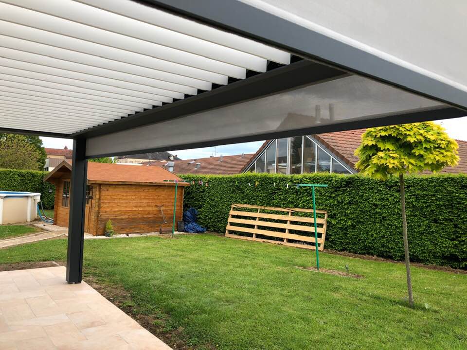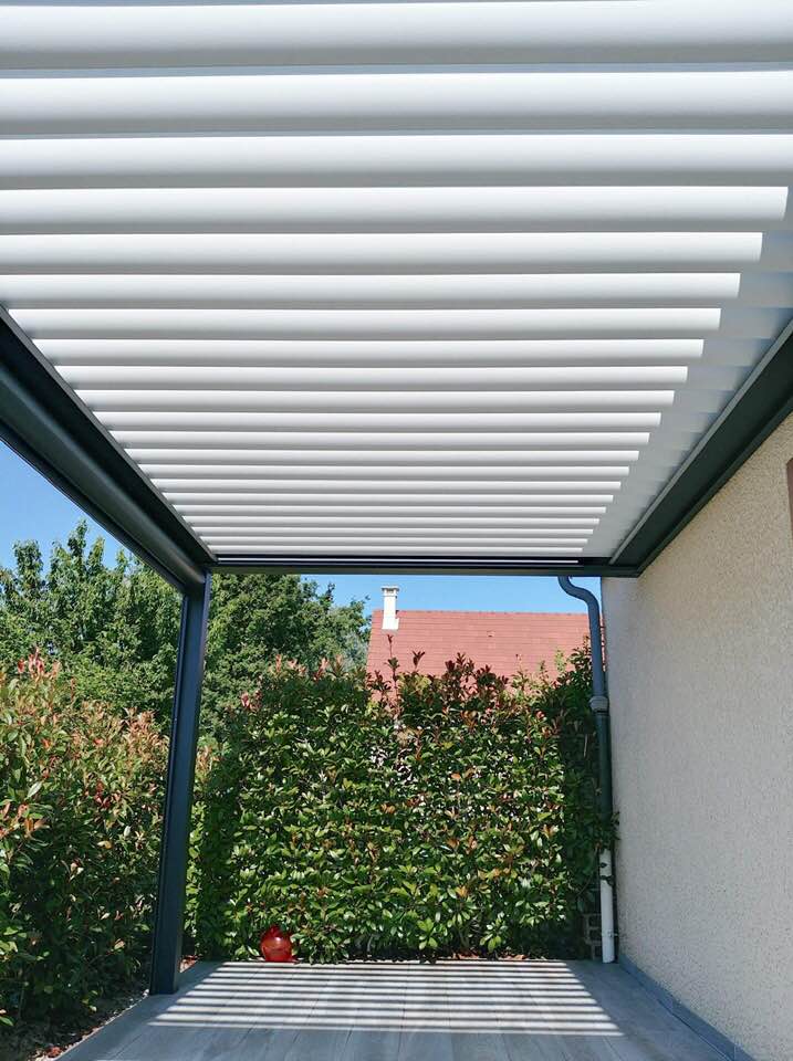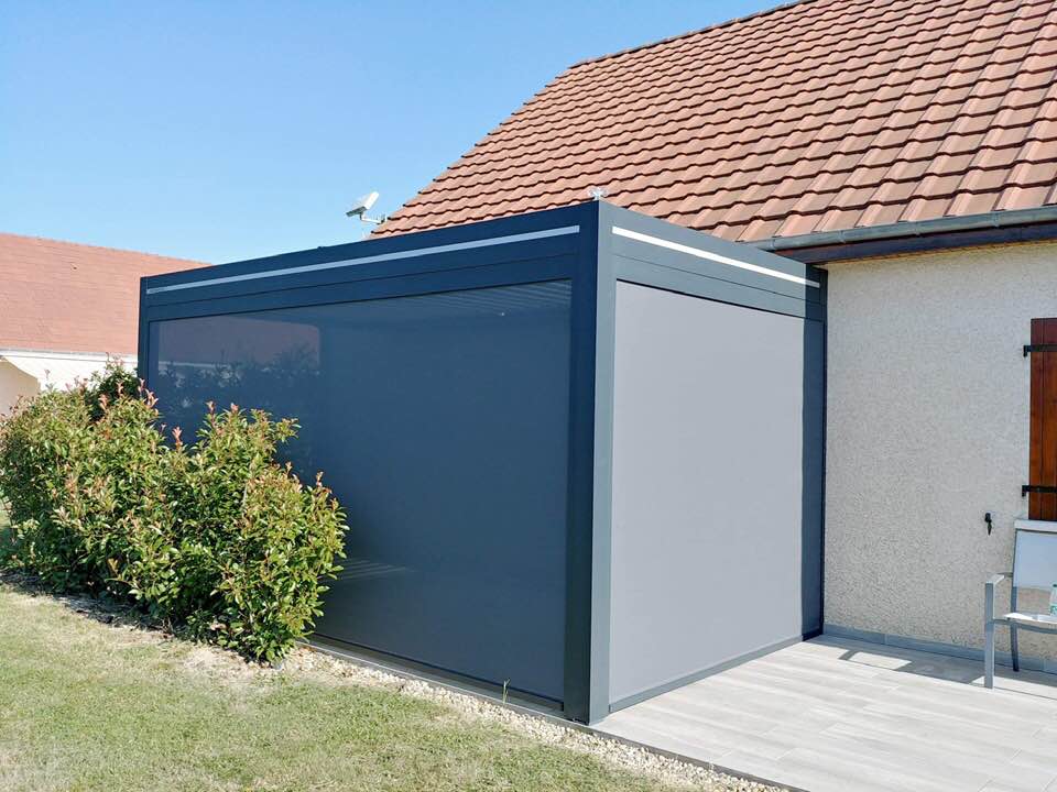 À Chivres (21) installation d’une pergola bioclimatique toutes options Art Home Alu de la gamme « lux intégral » :