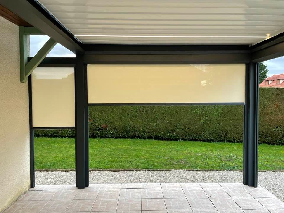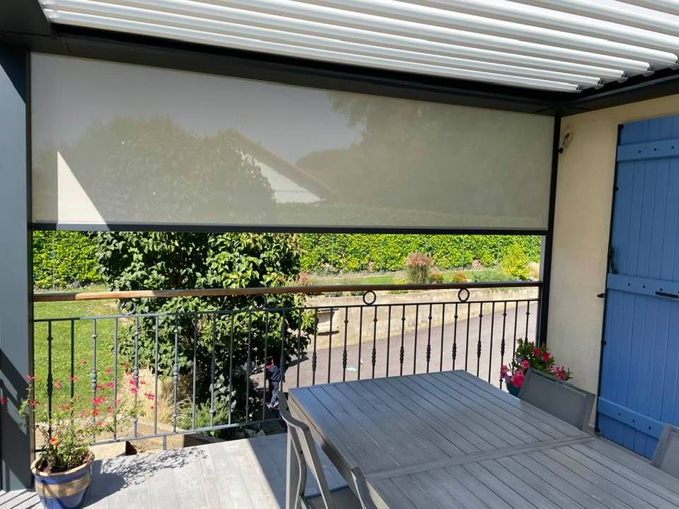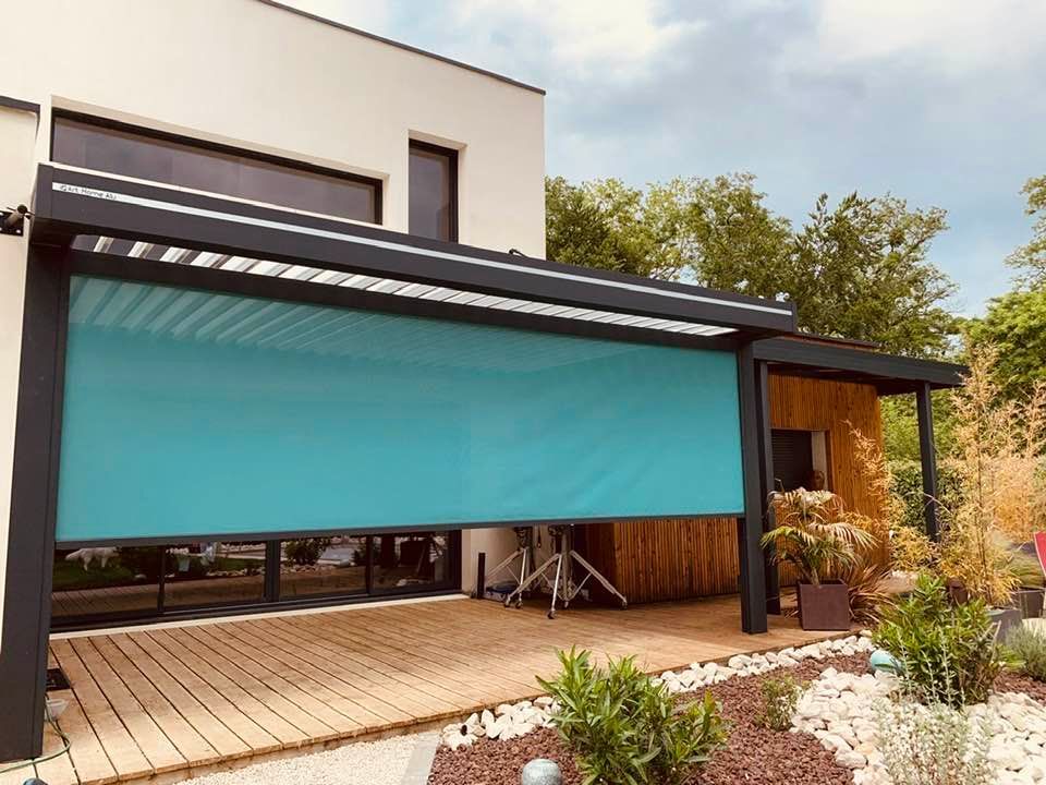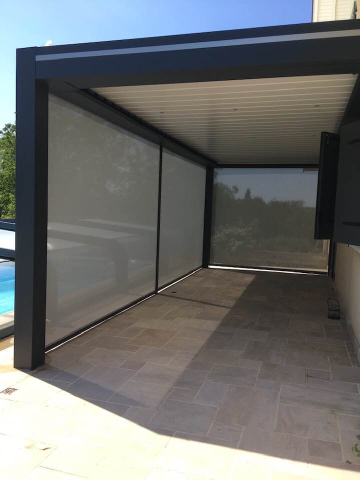 Le client a choisi en option les stores zip motorisés, avec teinte de toile sur mesure.