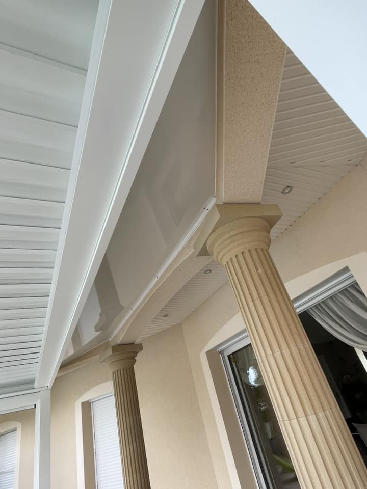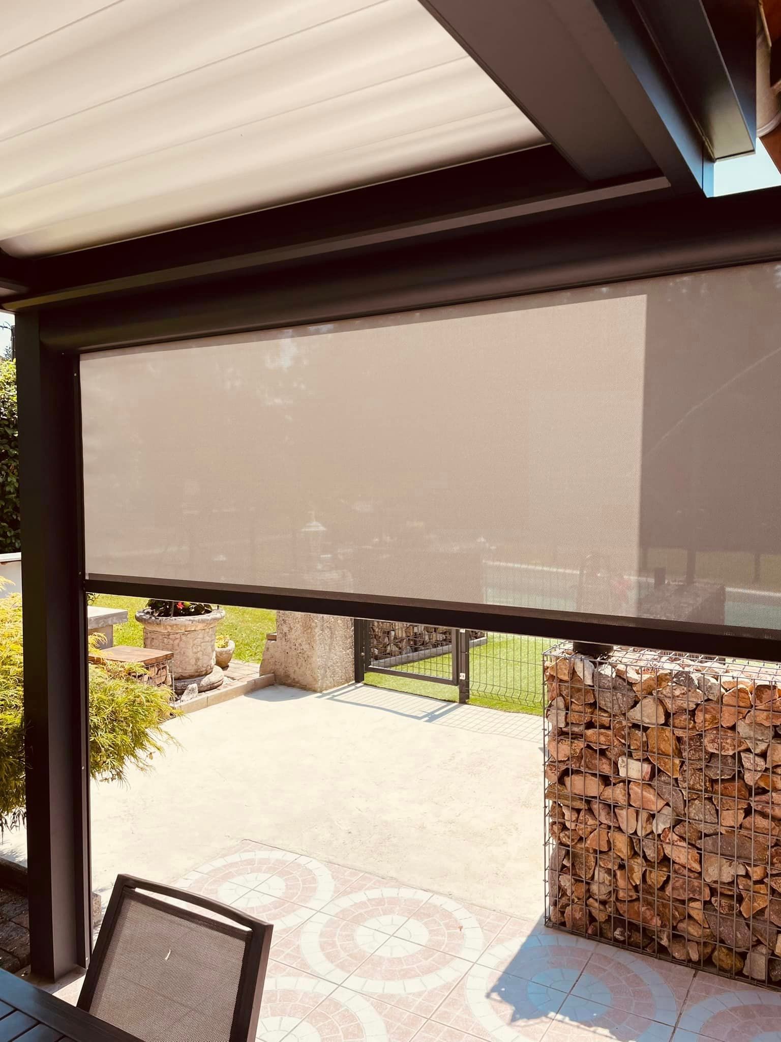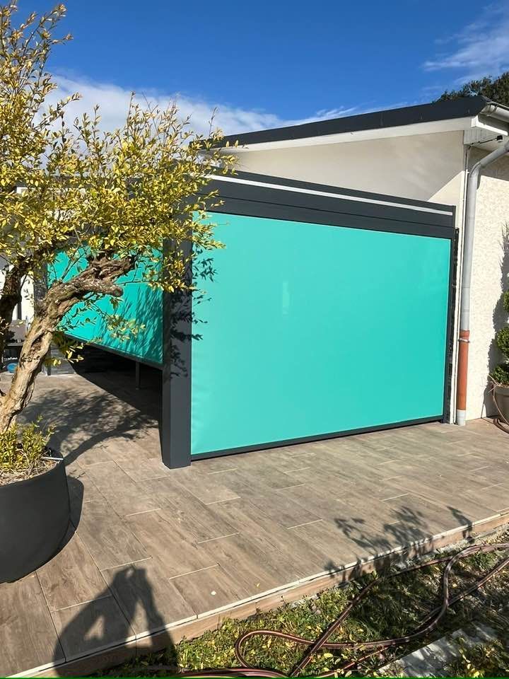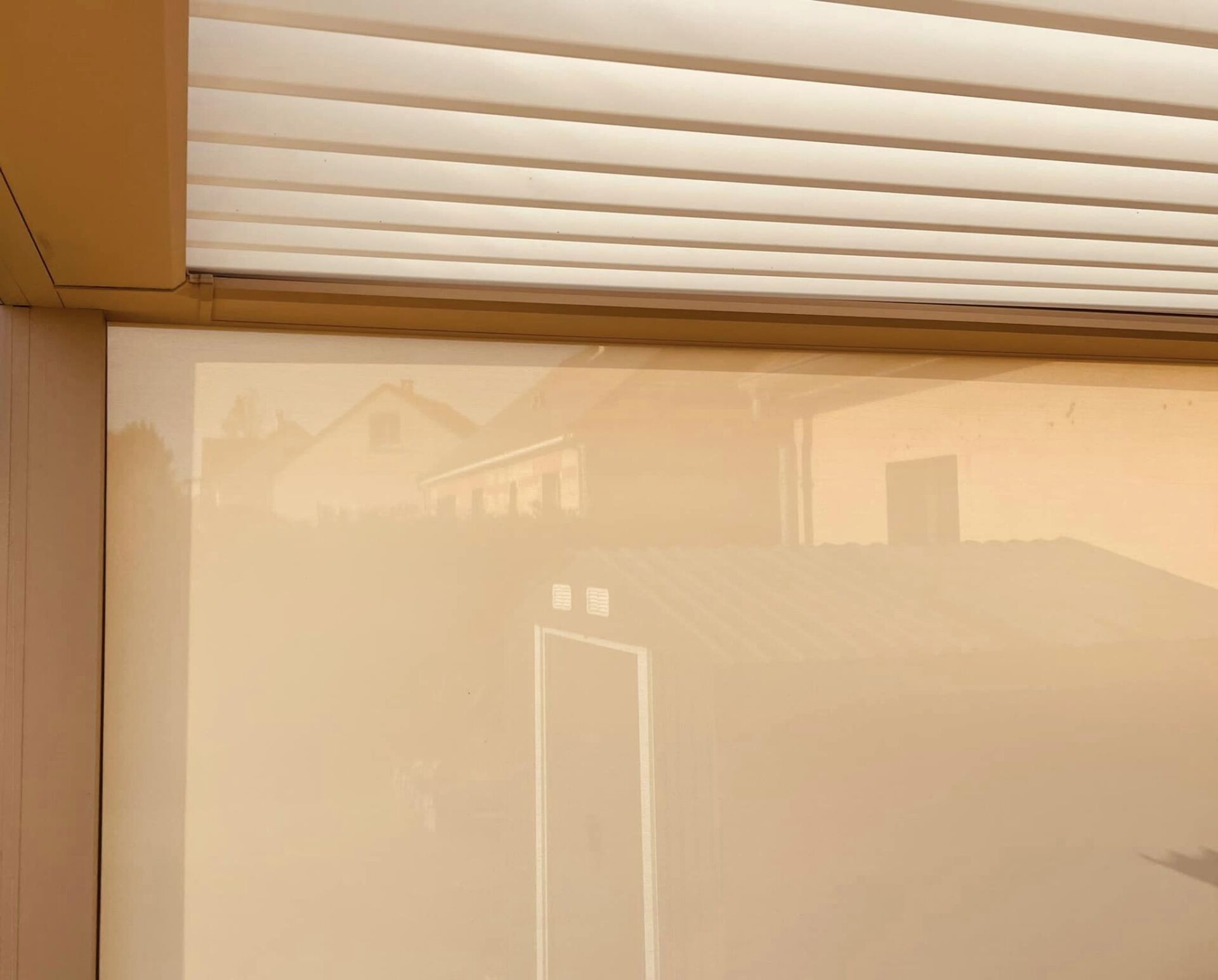 Le client a choisi en option les stores zip motorisés, avec teinte de toile sur mesure.
