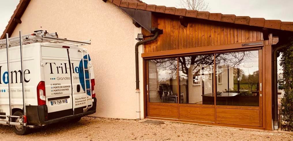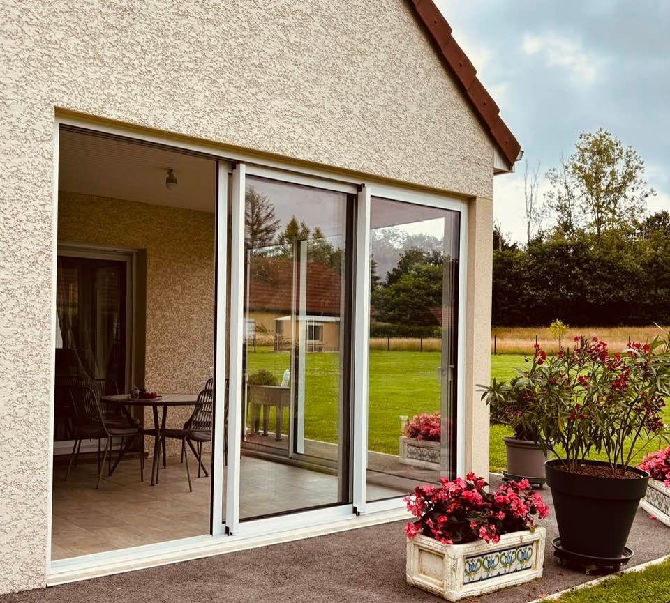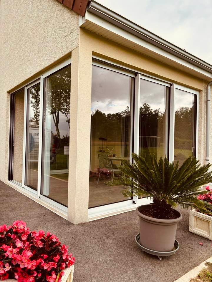 À Saint Germain du Bois, commune siège de notre showroom, où nous serons toujours ravis de vous recevoir, nos équipes ont terminé la pose de ces 2 coulissants en aluminium, conçus sur mesure 👌