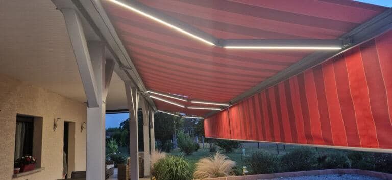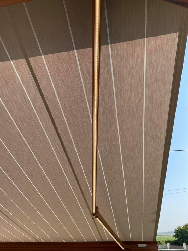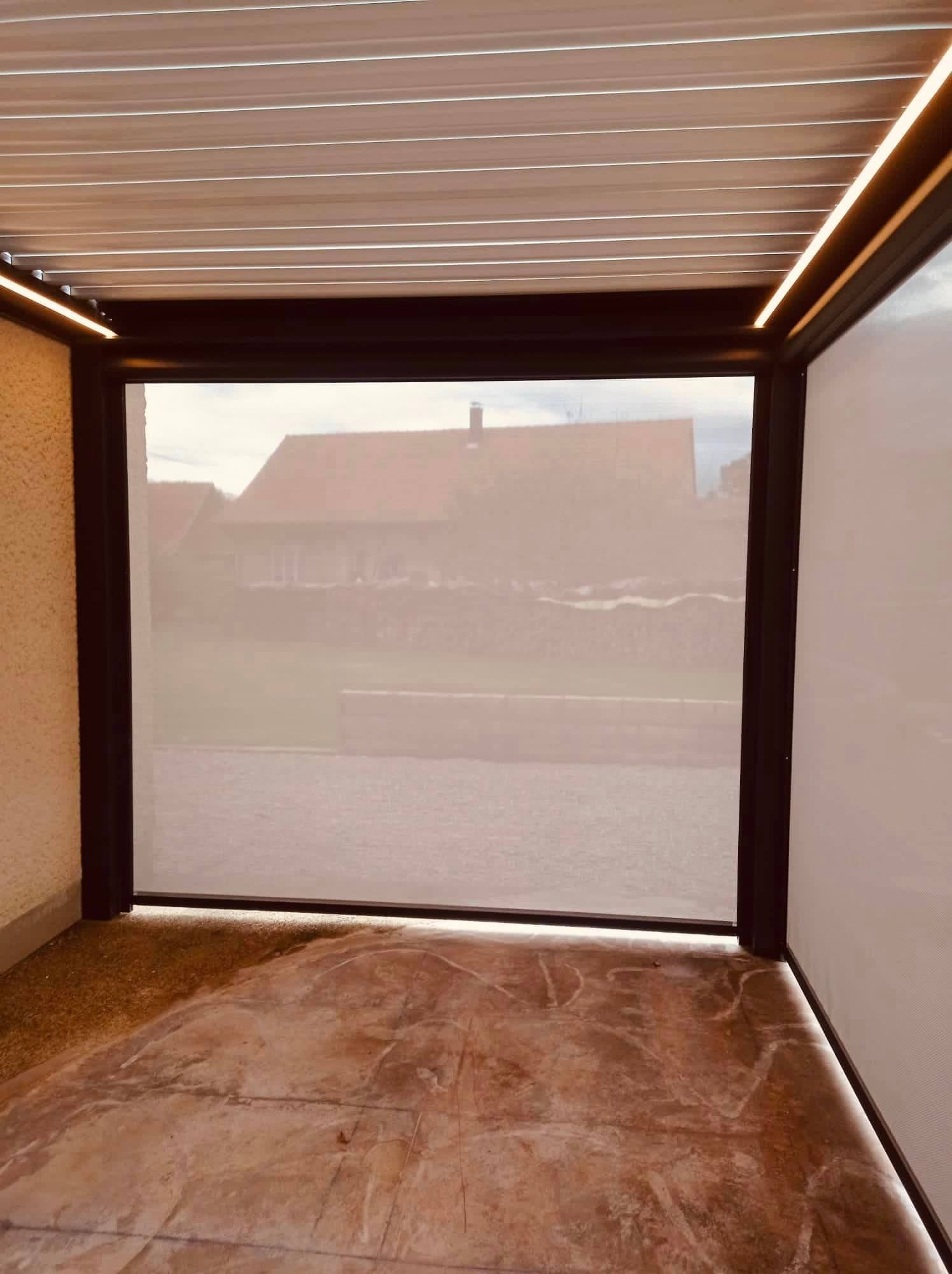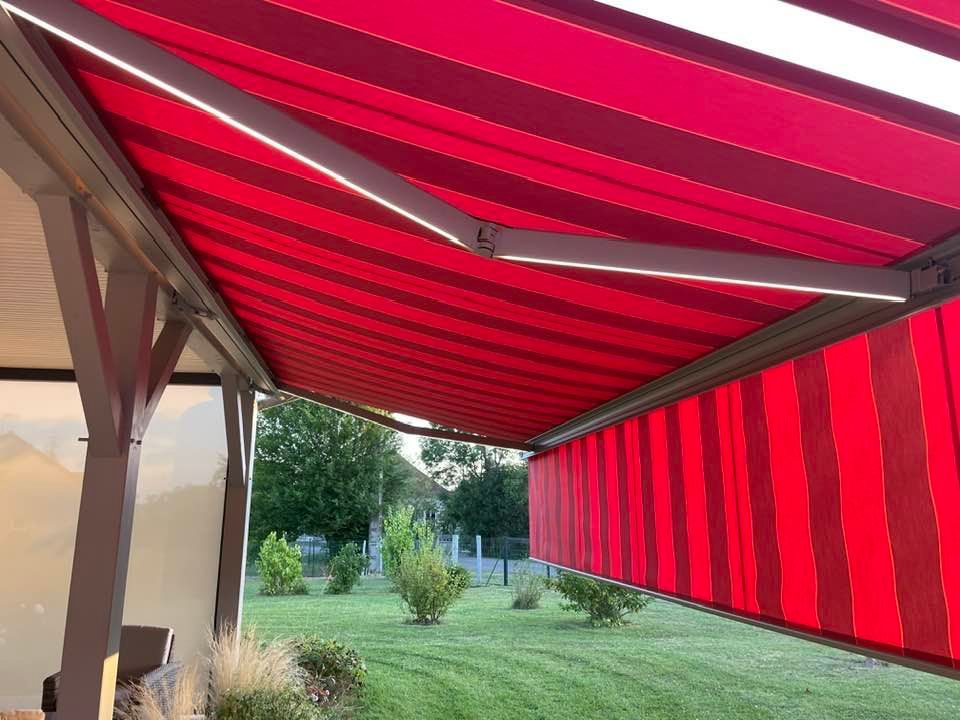 Ici options Leds intégrées aux chevrons pour prolonger les soirées… et stores zip afin d’assurer une protection solaire à la demande sur les faces exposées 😃.