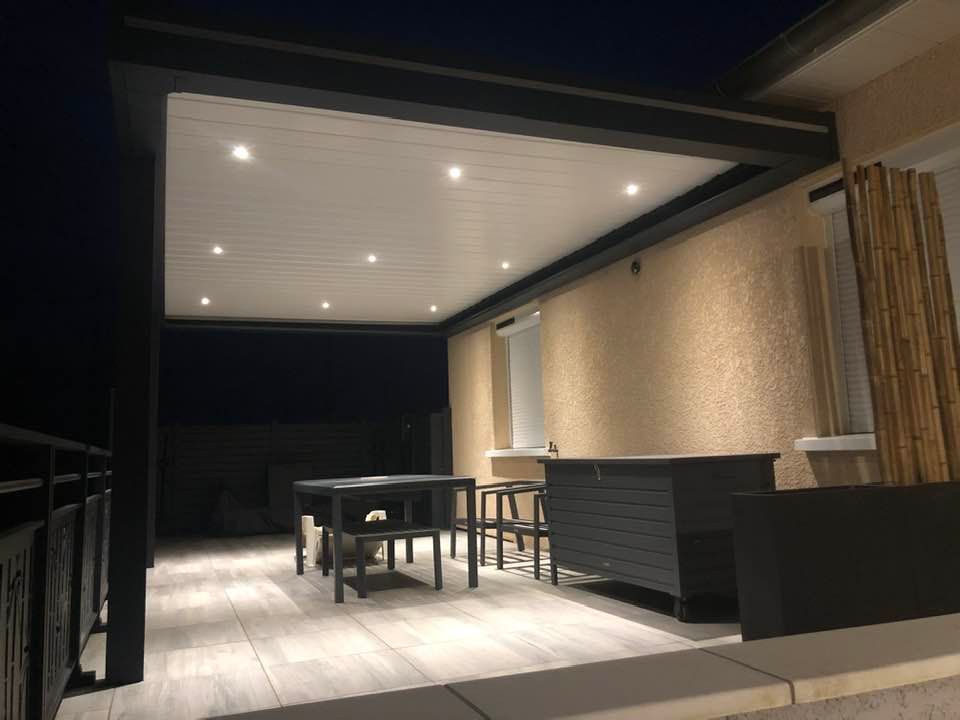 Éclairage par simple appui sur la télécommande Somfy… et la soirée en extérieur se prolonge 😊👌.
