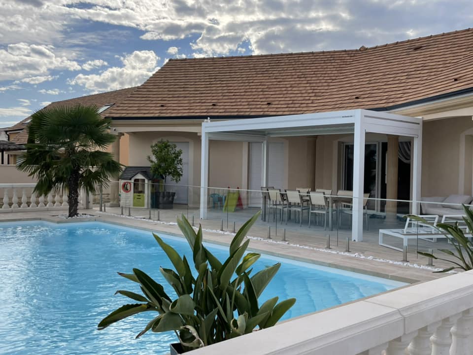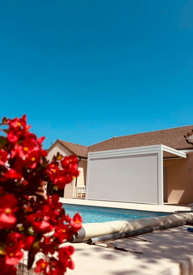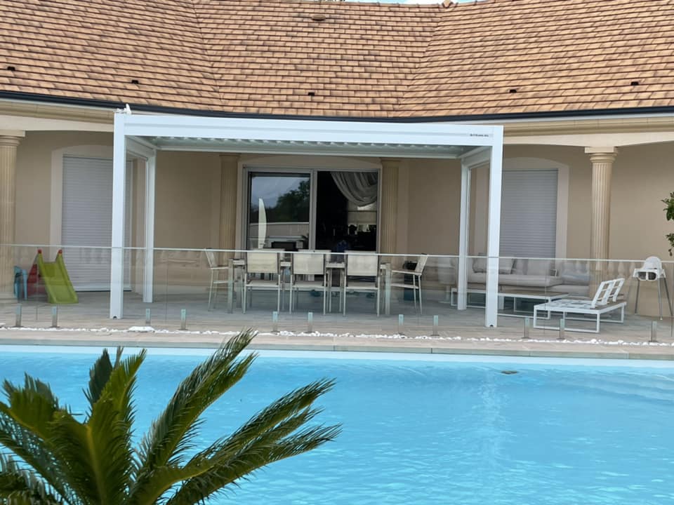 À Jambles (71) , Pergola bioclimatique installée pour profiter au mieux de l'extérieur et de la piscine sous un soleil éclatant 😎⛱️.