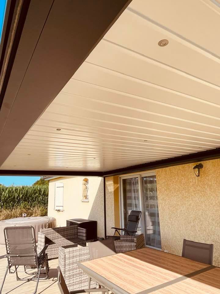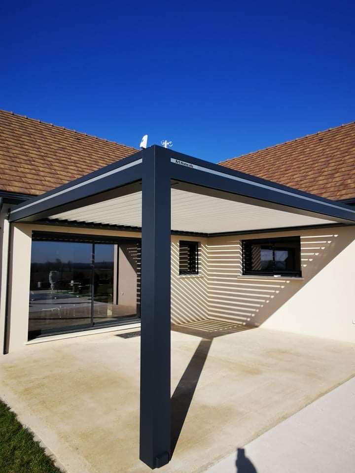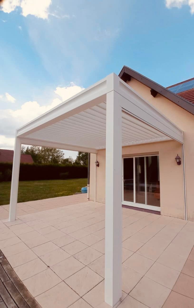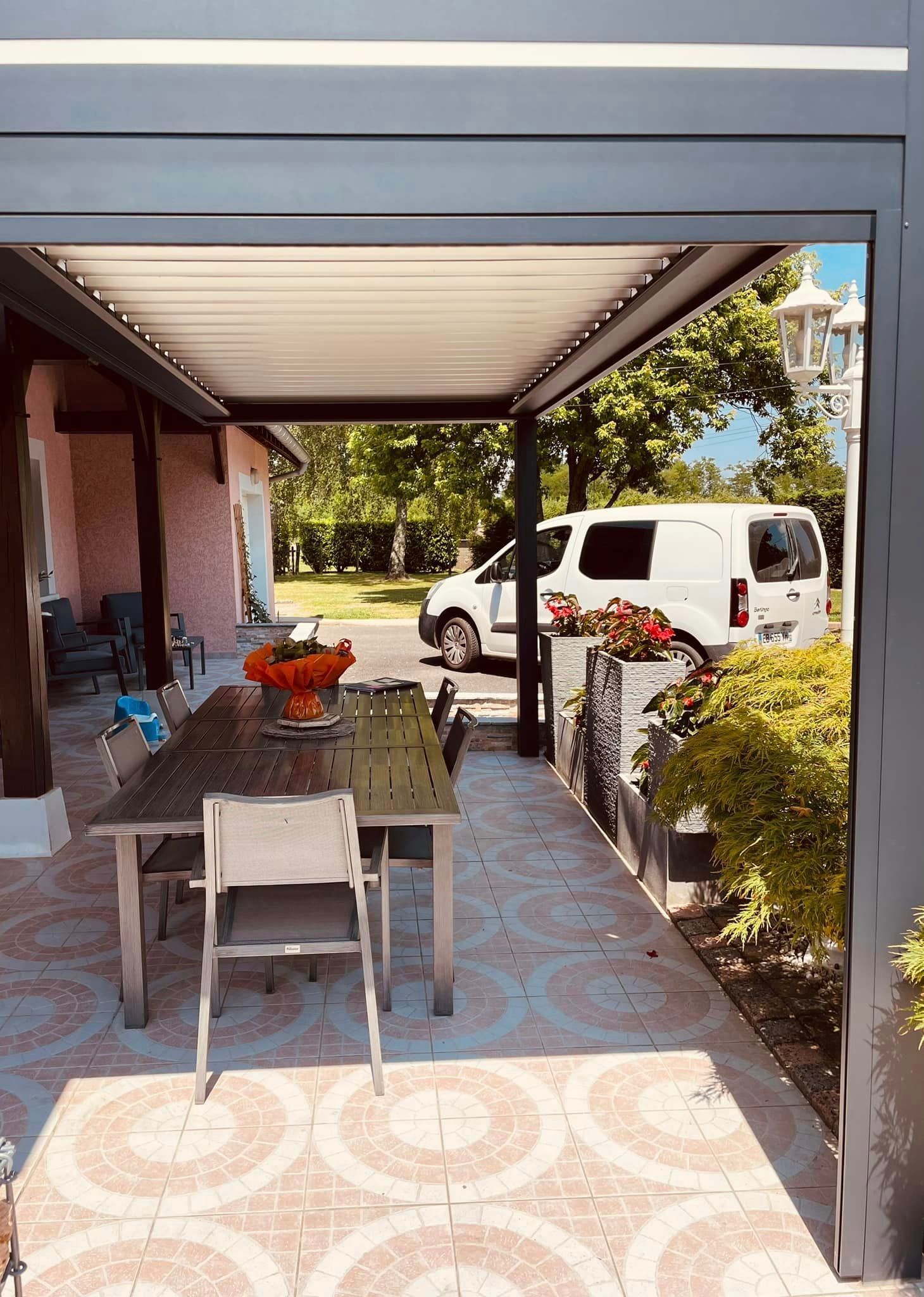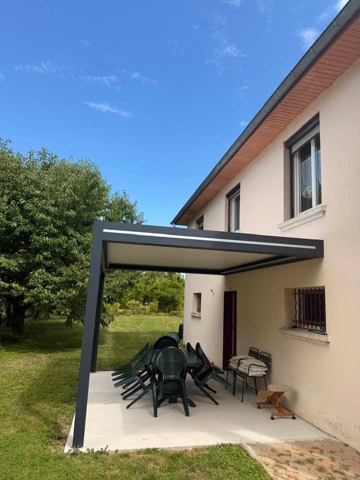 À La Chapelle Saint Sauveur (71), appréciez cette belle installation finalisée d'une pergola bioclimatique Art Home Alu. Pose sur mesure et toutes options ! 🤩