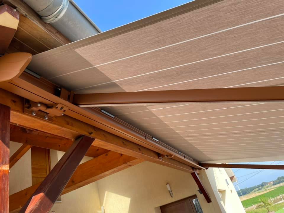 À La Chapelle Naude (71), premiers rayons de soleil 🌞... et première pergola 2021 installée par l’équipe Trihome pour une protection solaire assurée par panneau isolant aluminium à mousse haute densité 👍