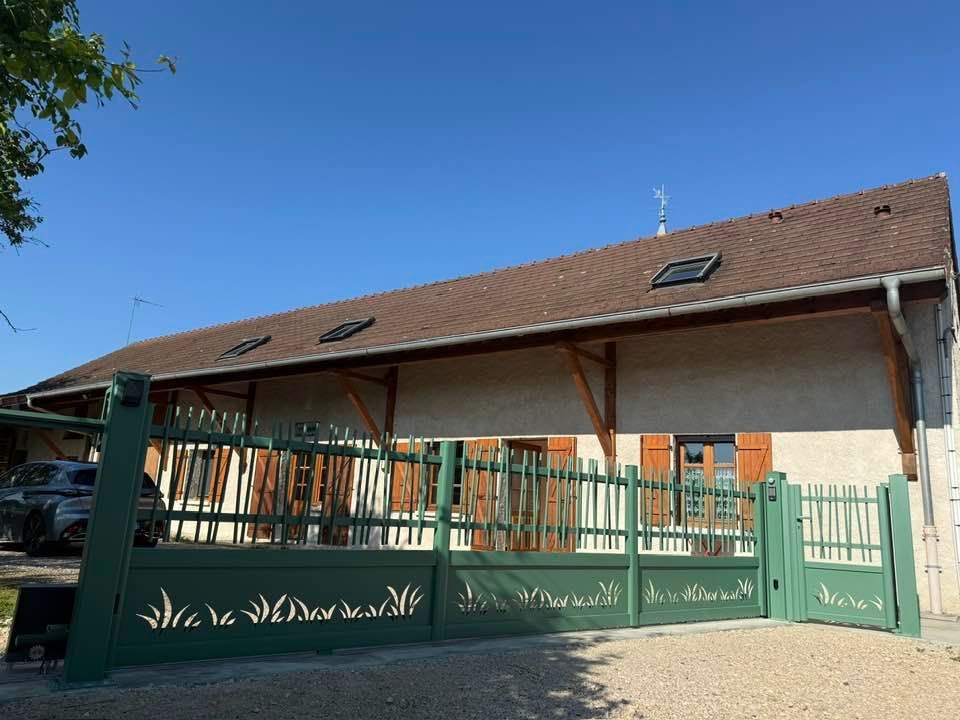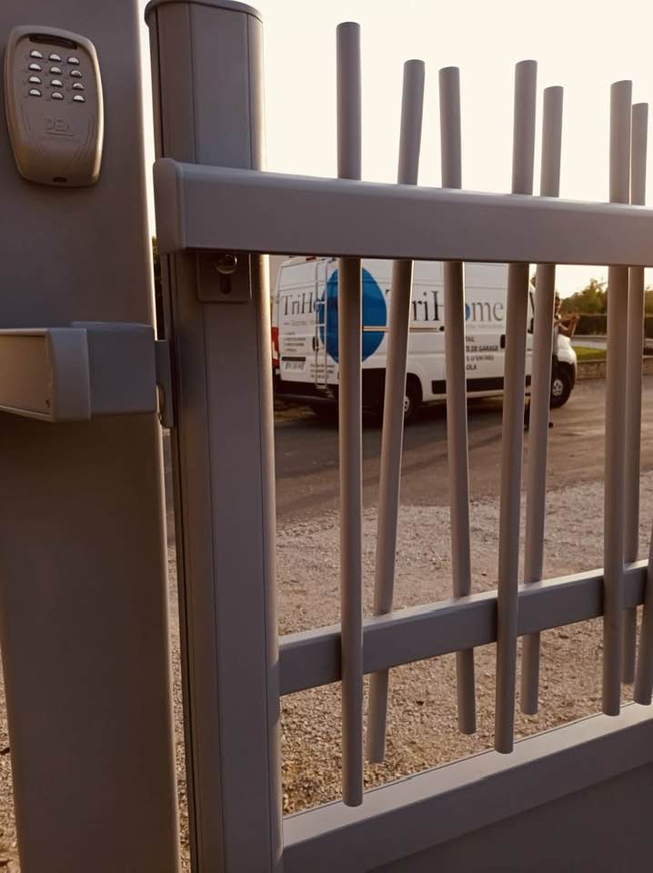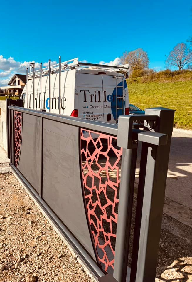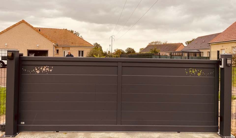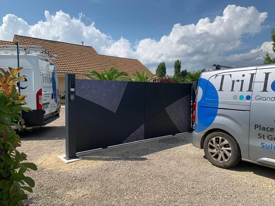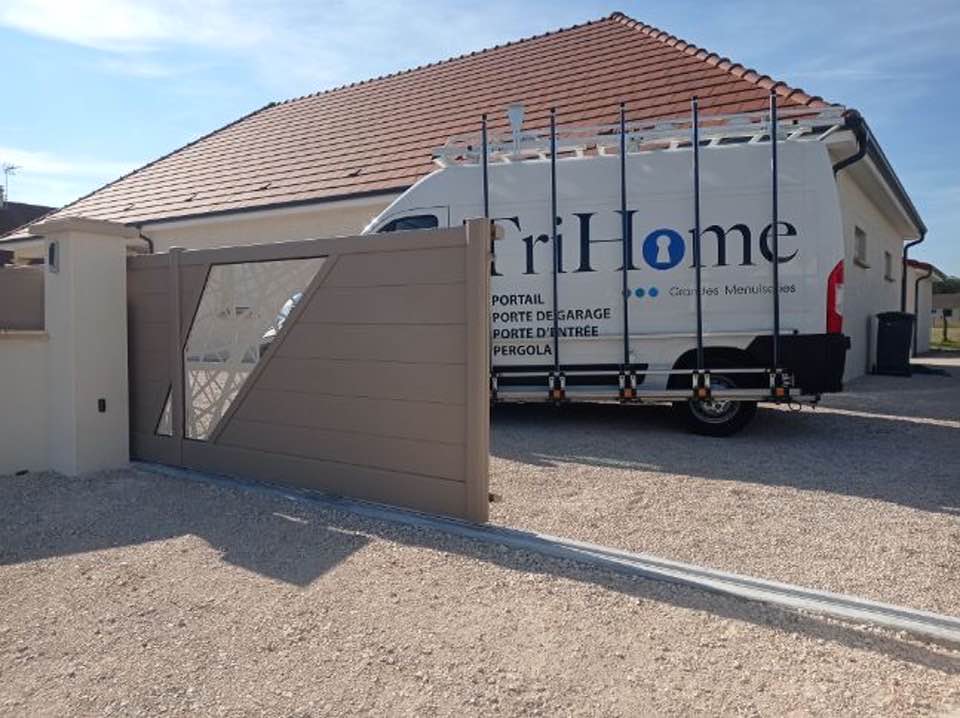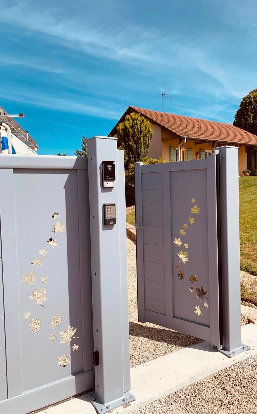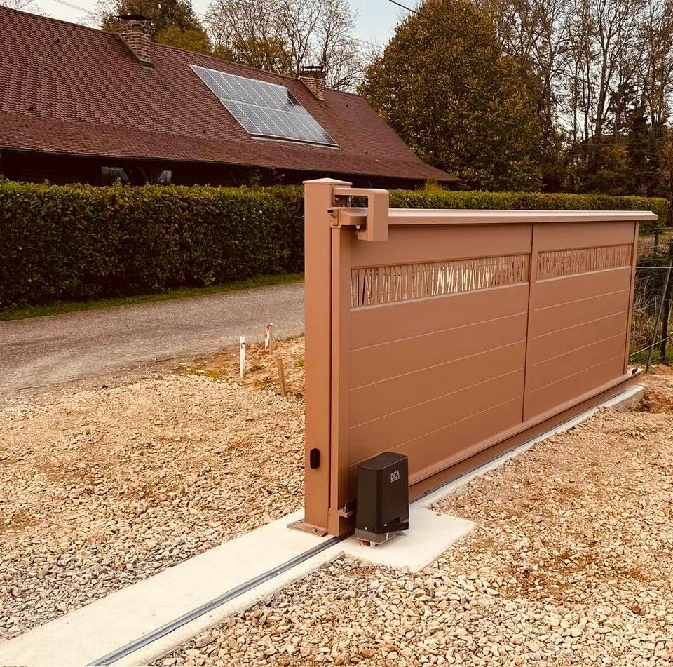 À Branges (71), juste avant la pause estivale de notre équipe Trihome, installation finalisée de ce portail sur mesure aluminum soudé et motorisé