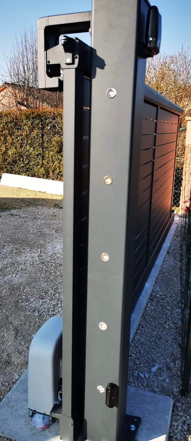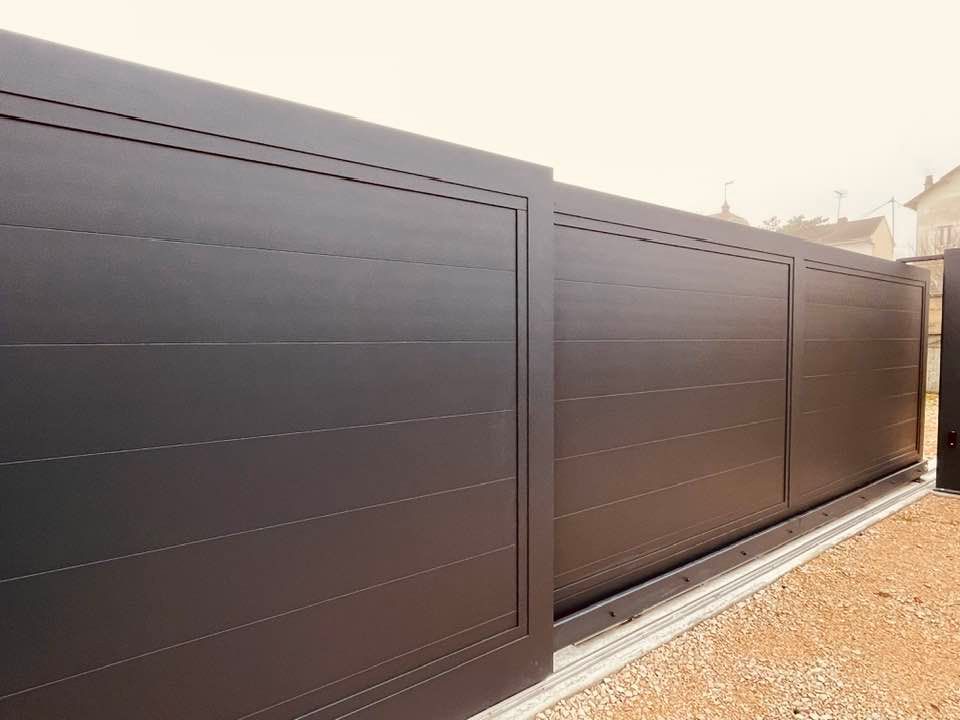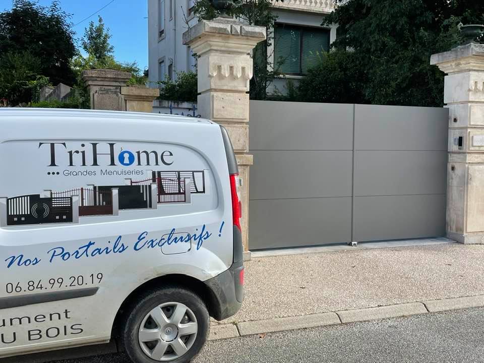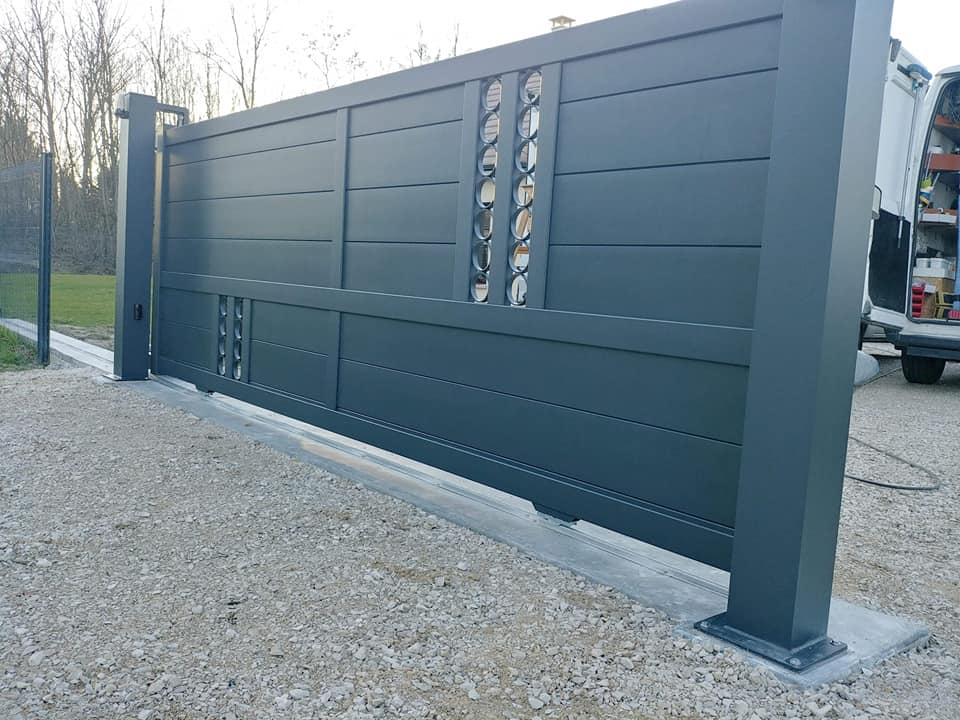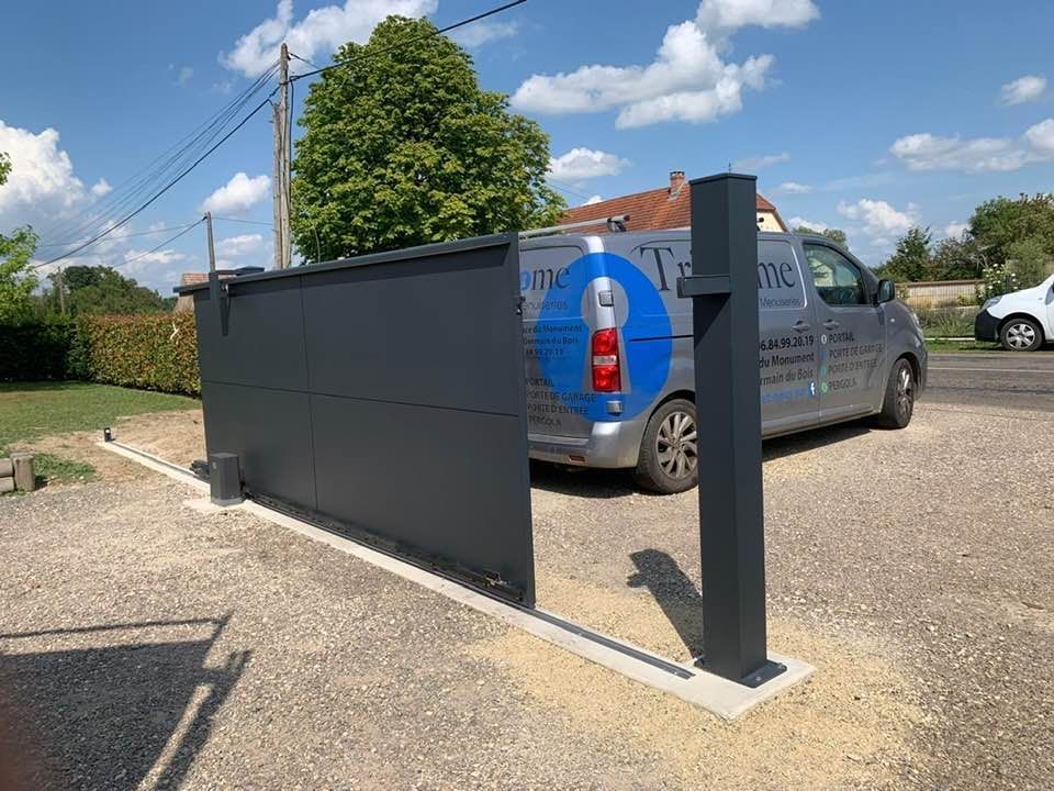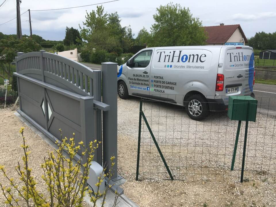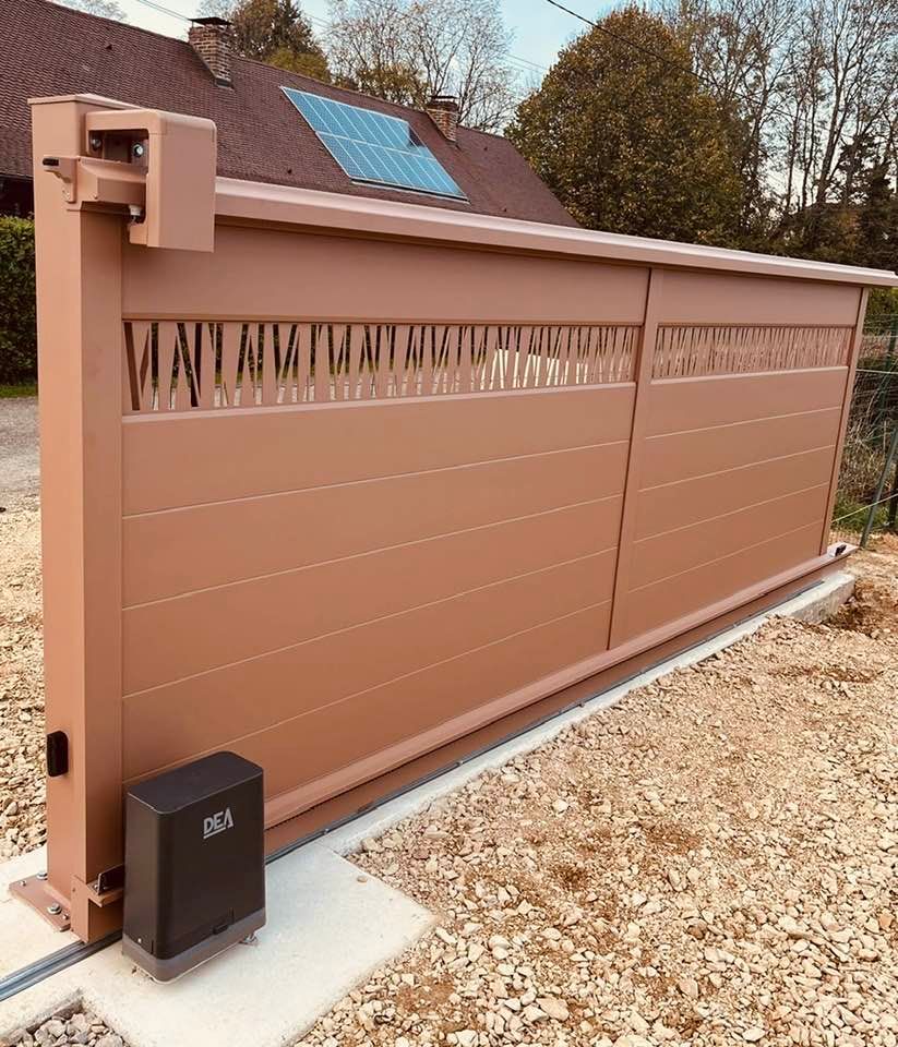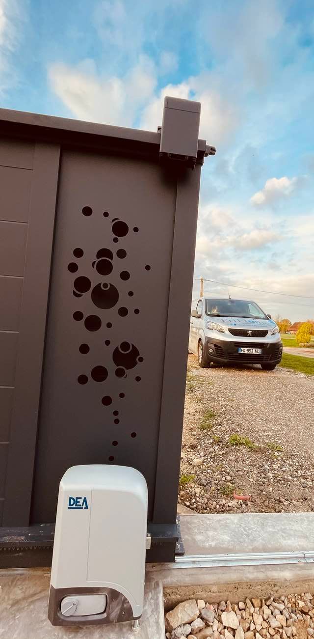 À Branges (71), juste avant la pause estivale de notre équipe Trihome, installation finalisée de ce portail sur mesure aluminum soudé et motorisé