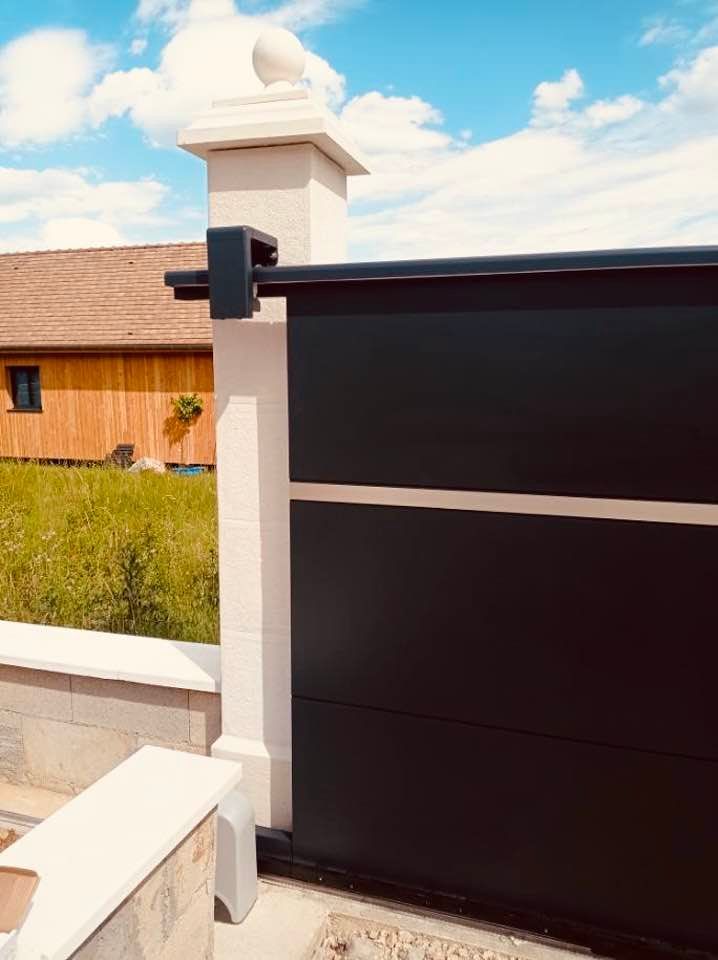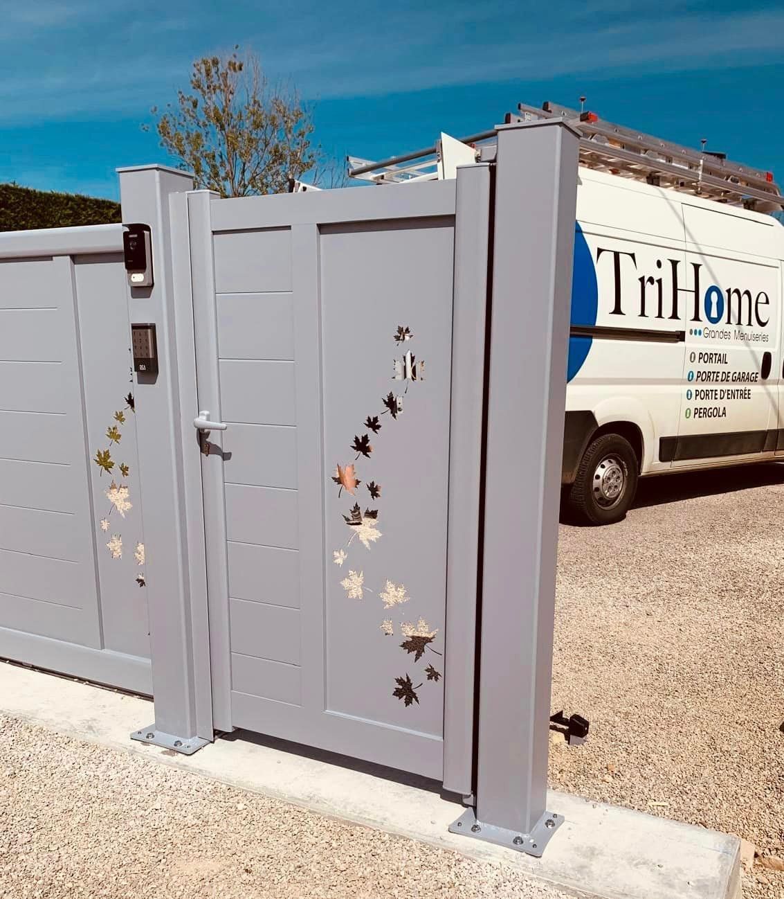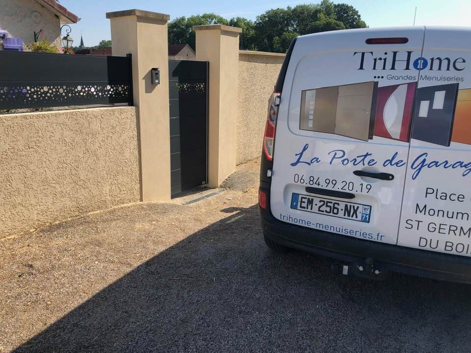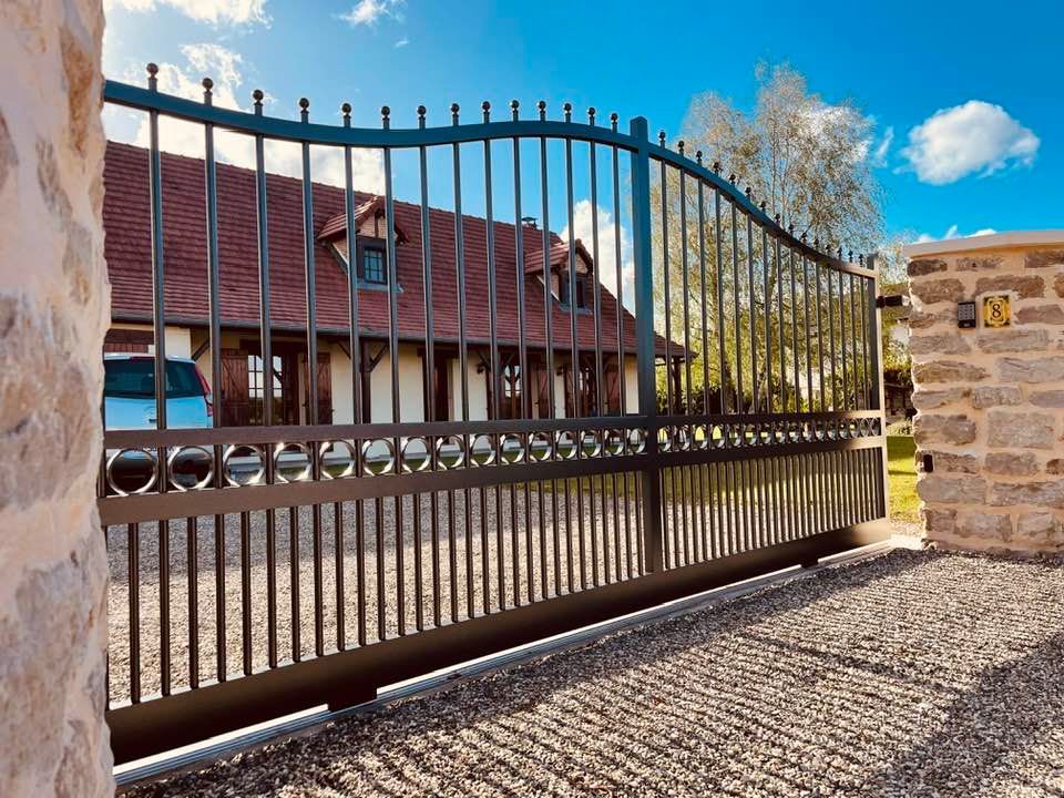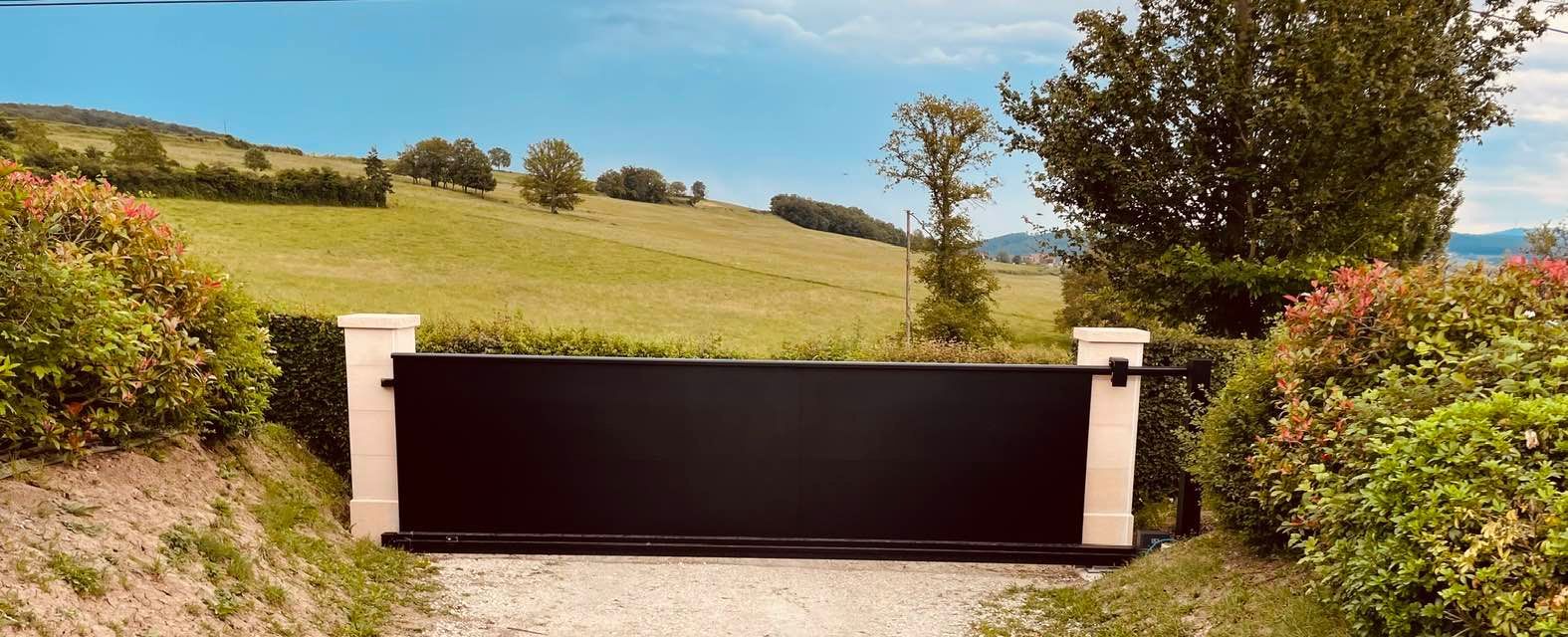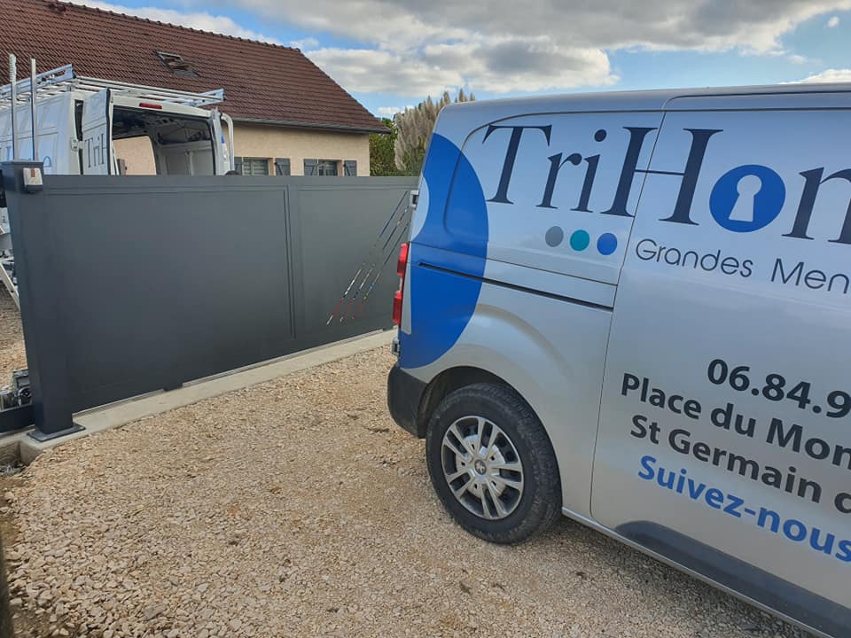 À Branges (71), juste avant la pause estivale de notre équipe Trihome, installation finalisée de ce portail sur mesure aluminum soudé et motorisé