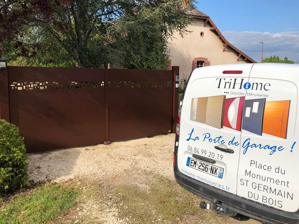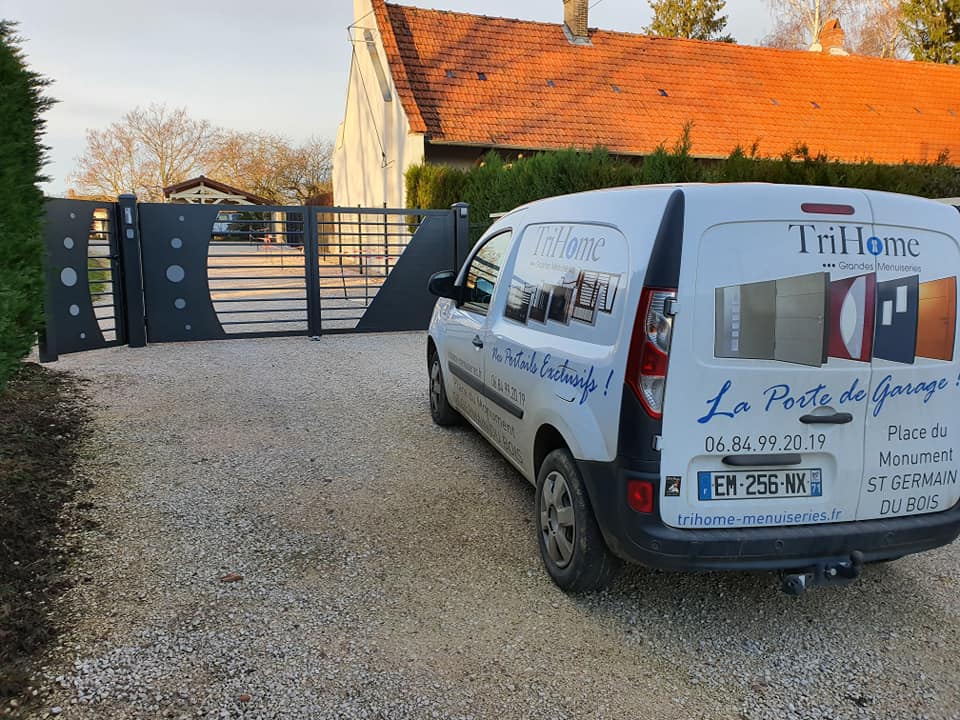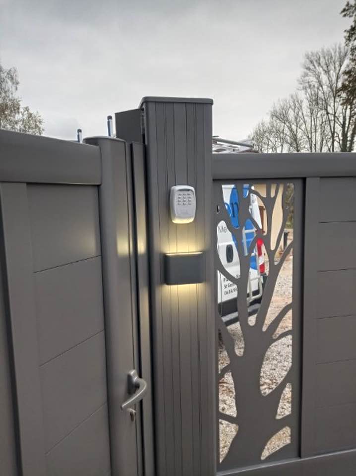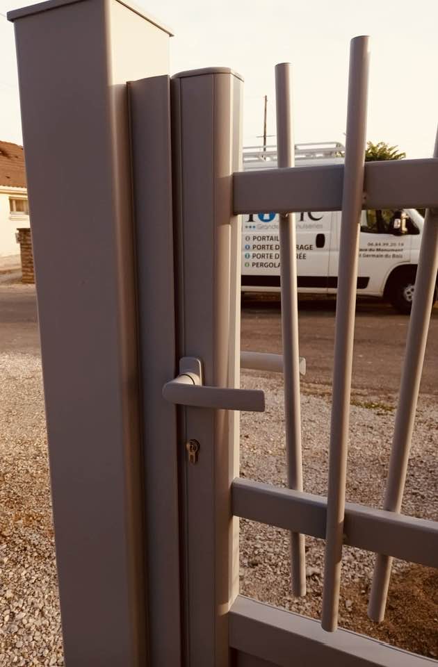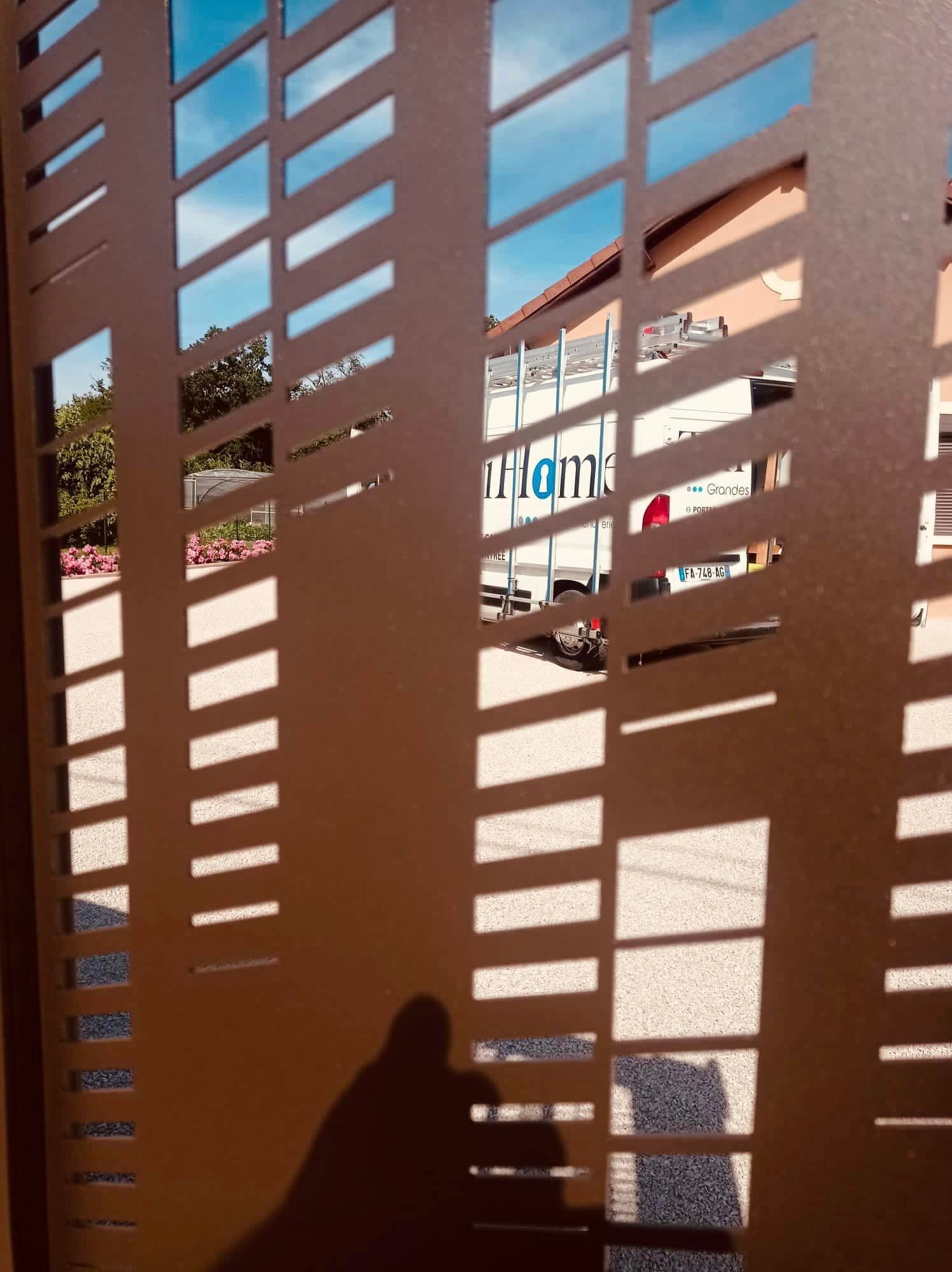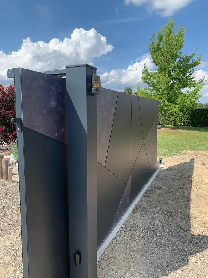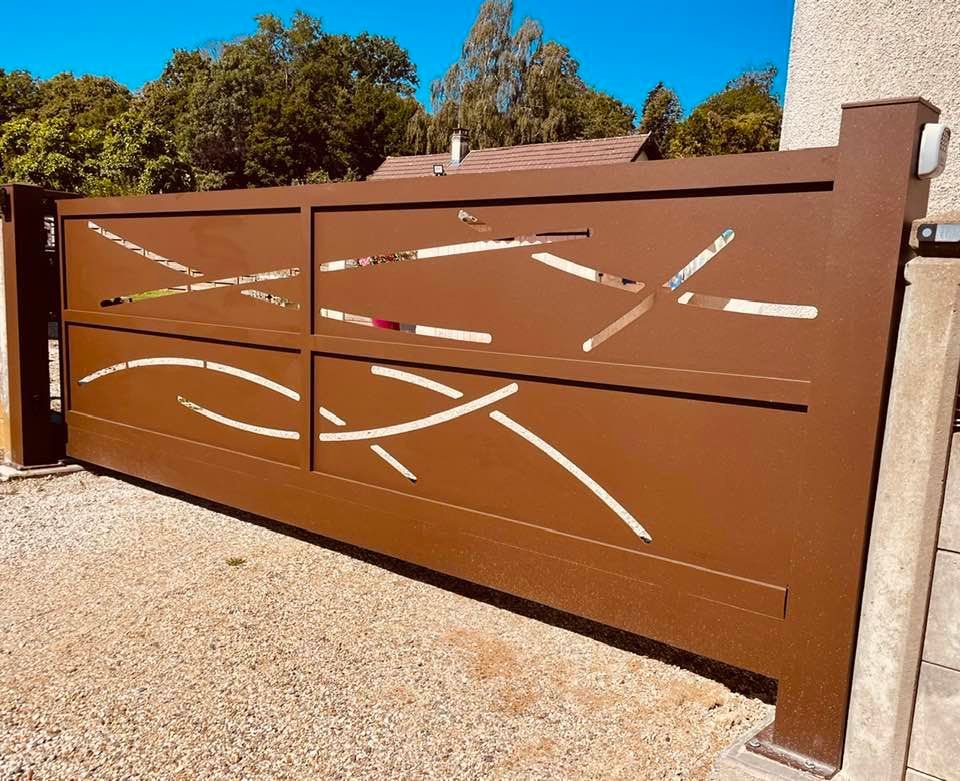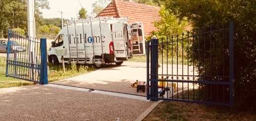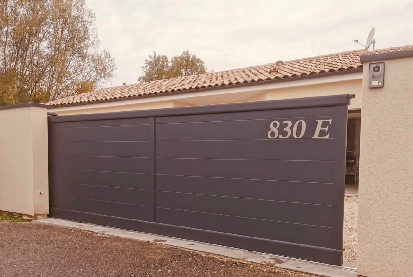 À Branges (71), juste avant la pause estivale de notre équipe Trihome, installation finalisée de ce portail sur mesure aluminum soudé et motorisé