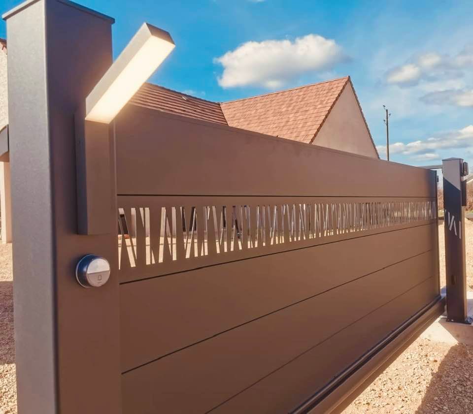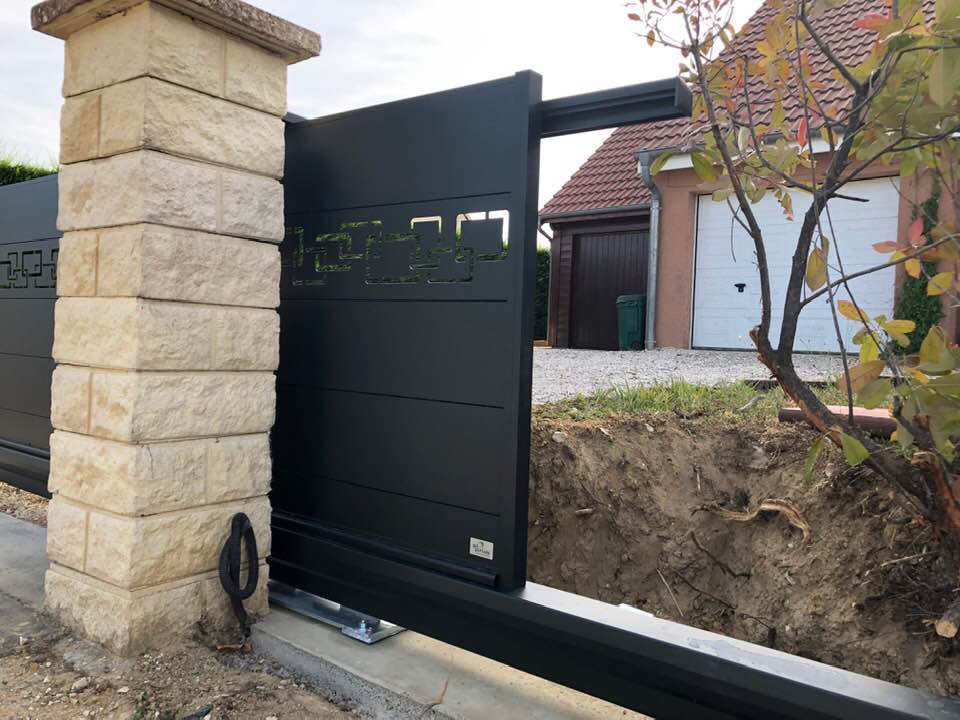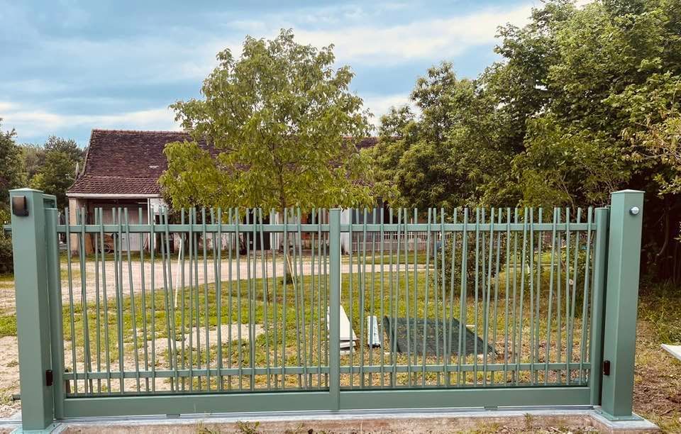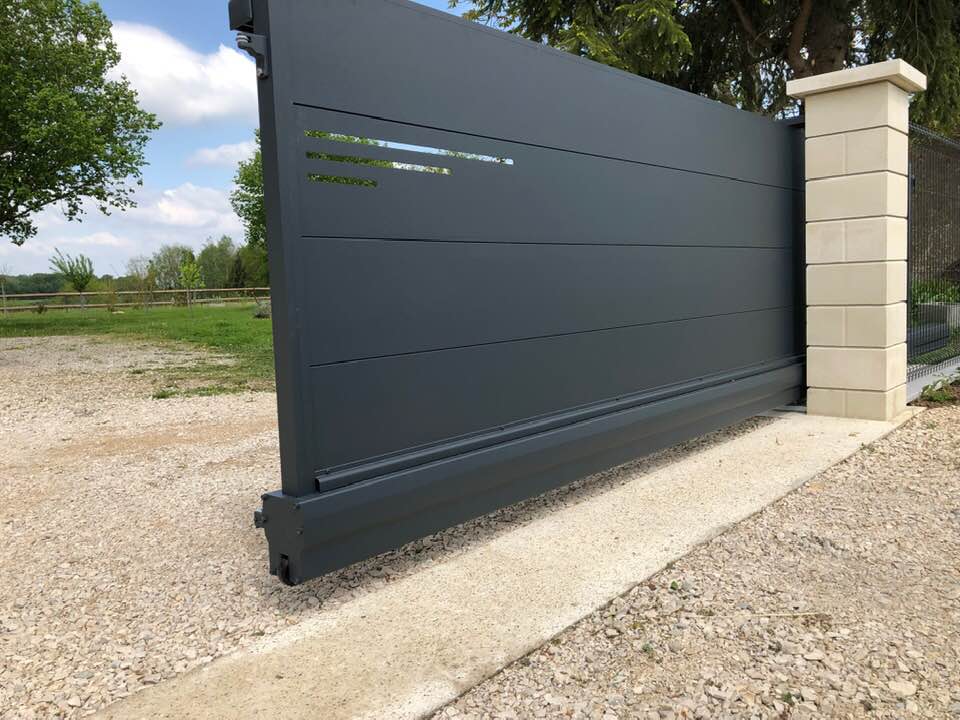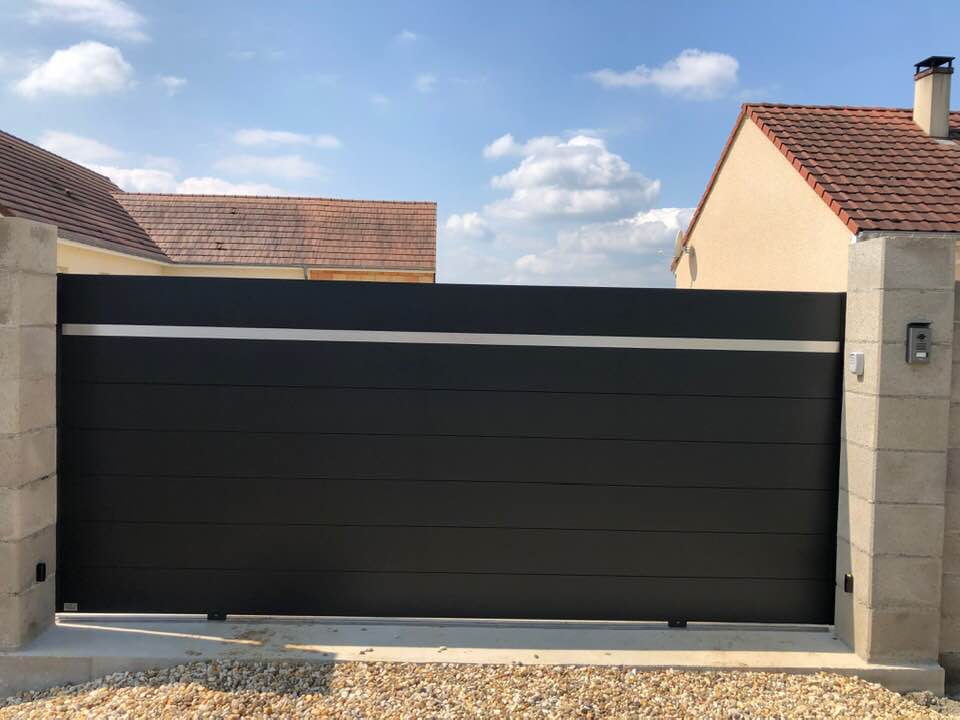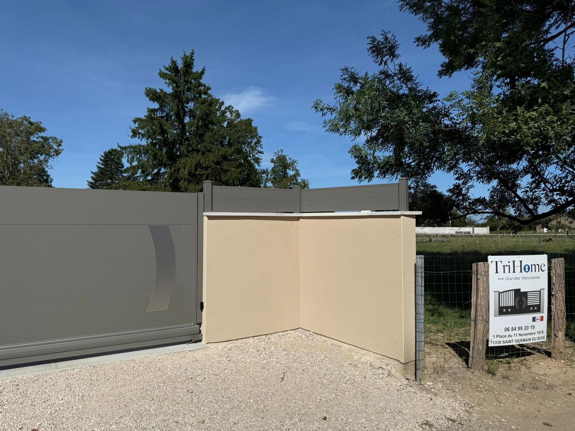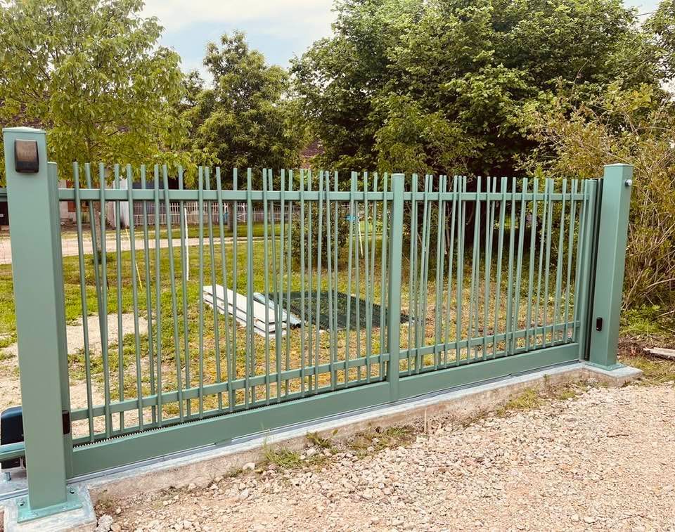 À Branges (71), juste avant la pause estivale de notre équipe Trihome, installation finalisée de ce portail sur mesure aluminum soudé et motorisé