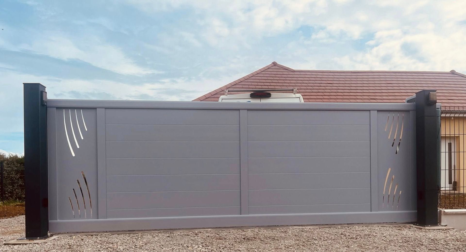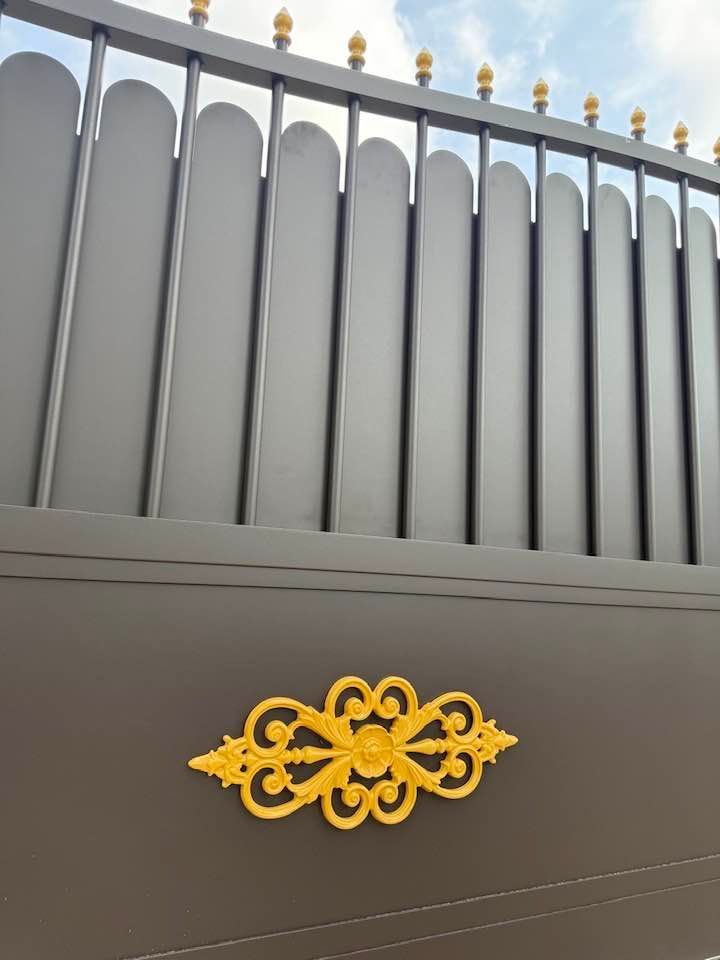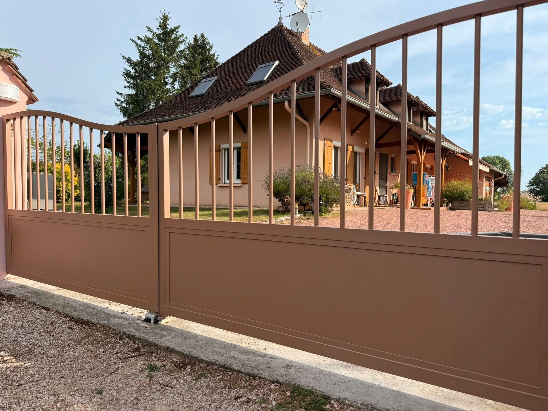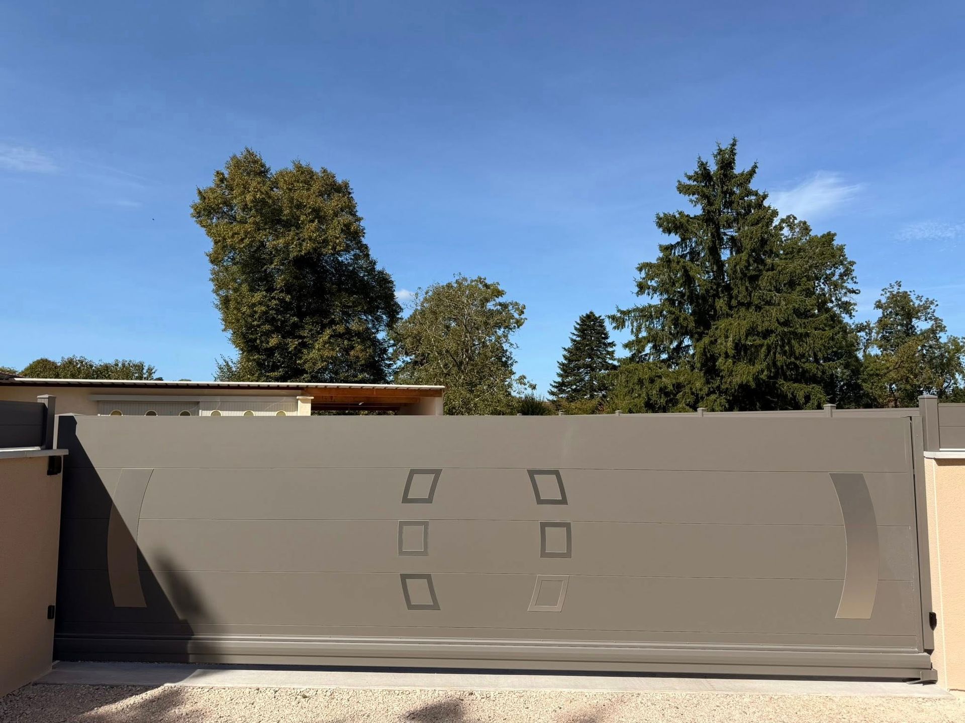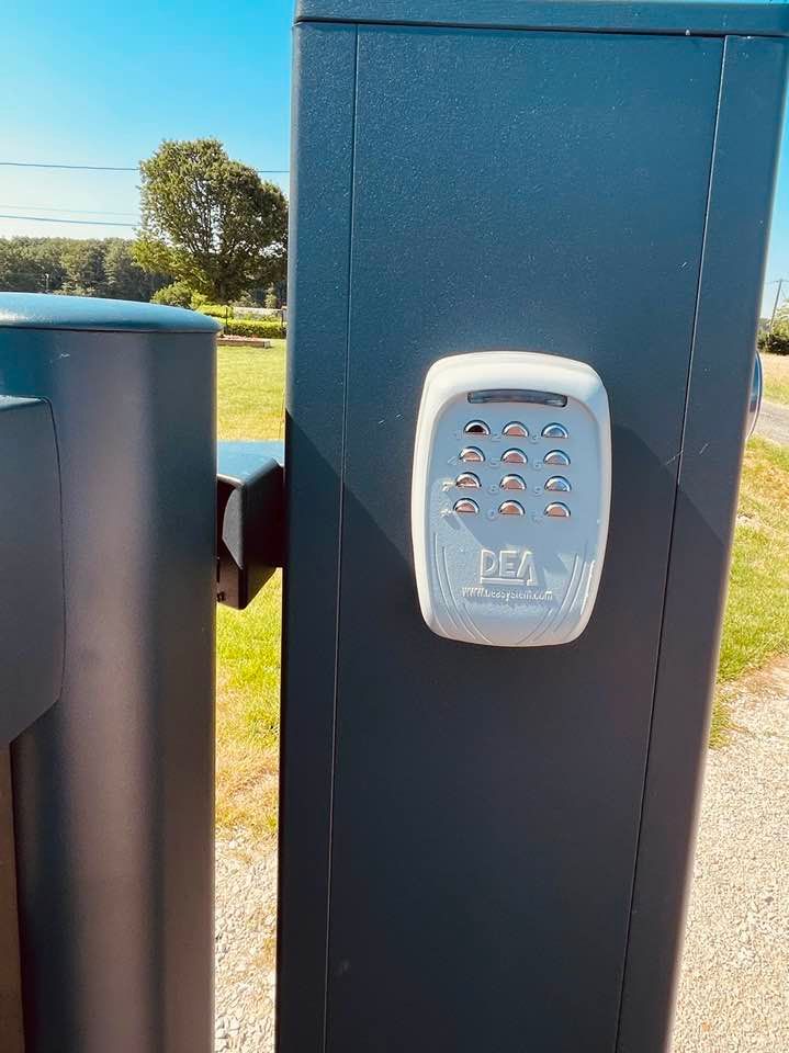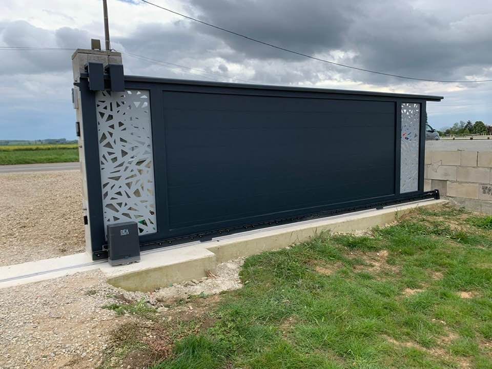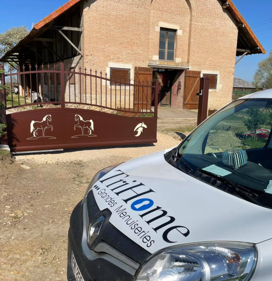À Branges (71), juste avant la pause estivale de notre équipe Trihome, installation finalisée de ce portail sur mesure aluminum soudé et motorisé