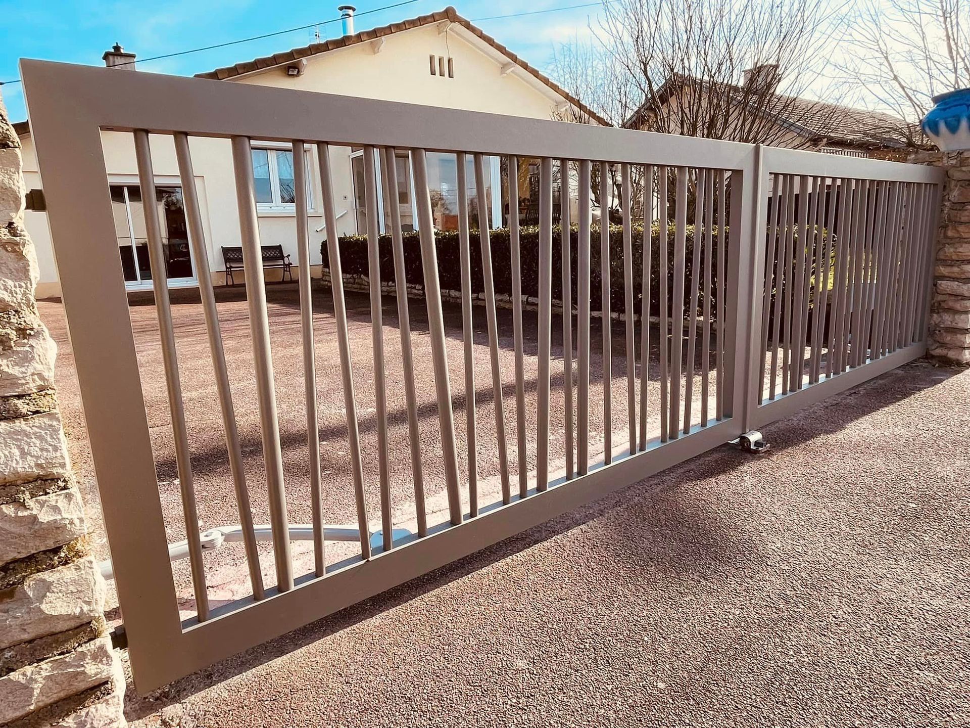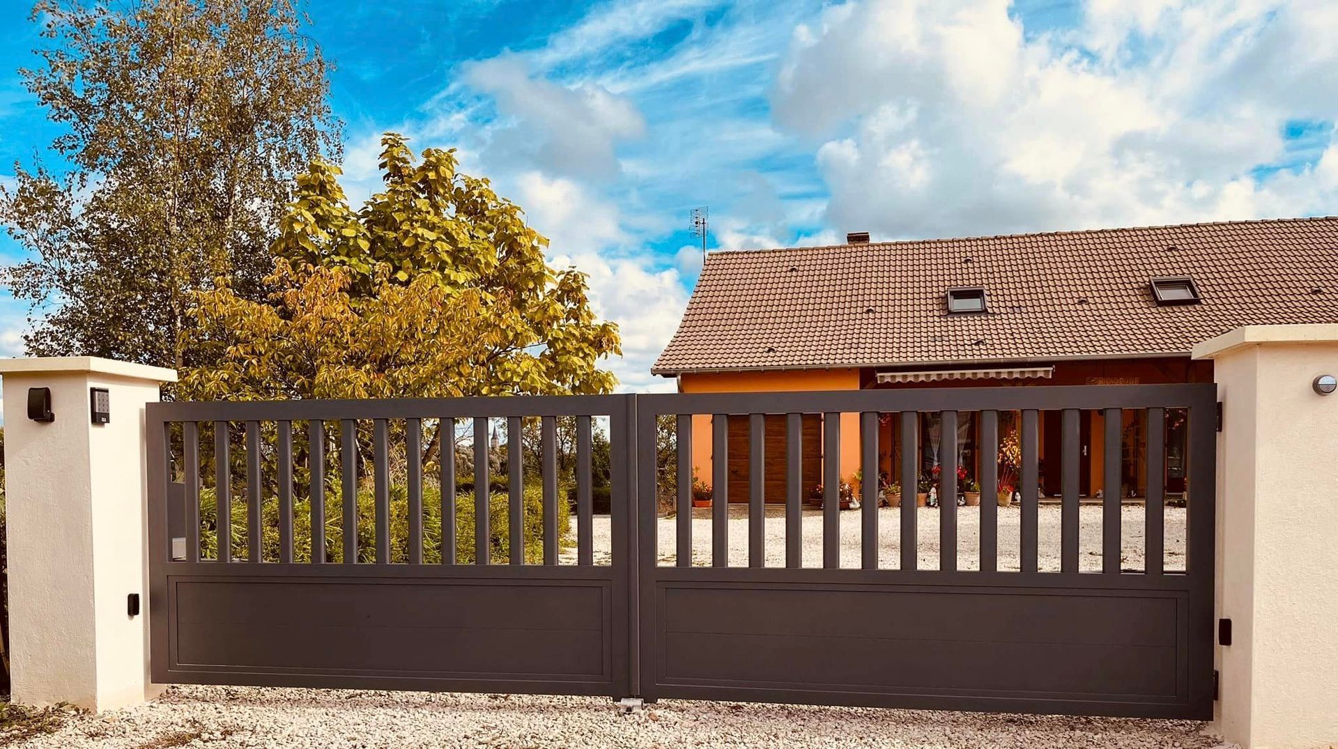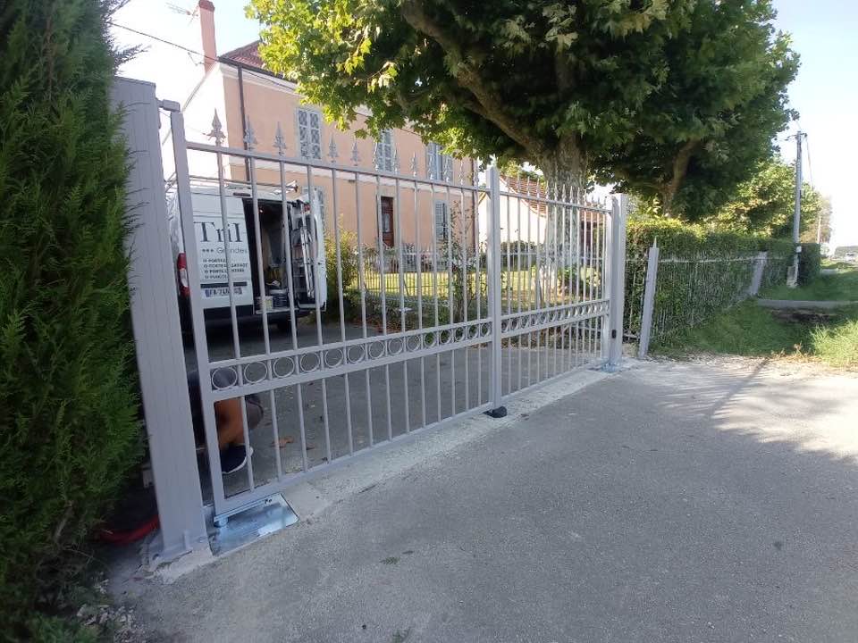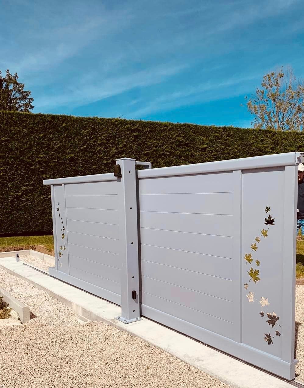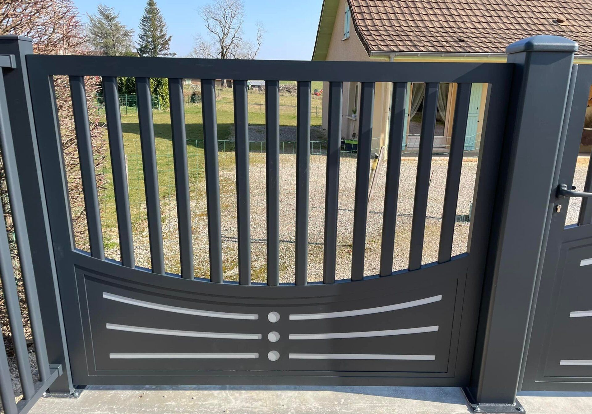 À Branges (71), juste avant la pause estivale de notre équipe Trihome, installation finalisée de ce portail sur mesure aluminum soudé et motorisé