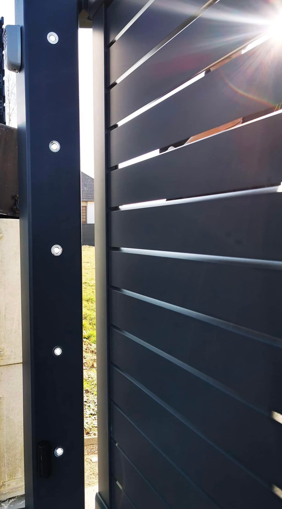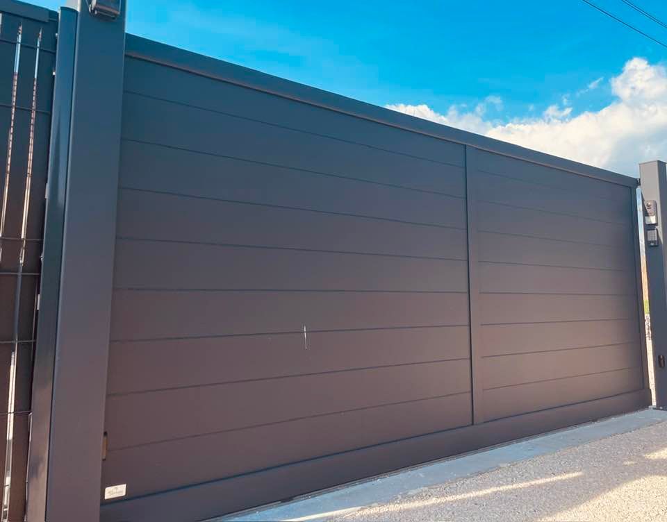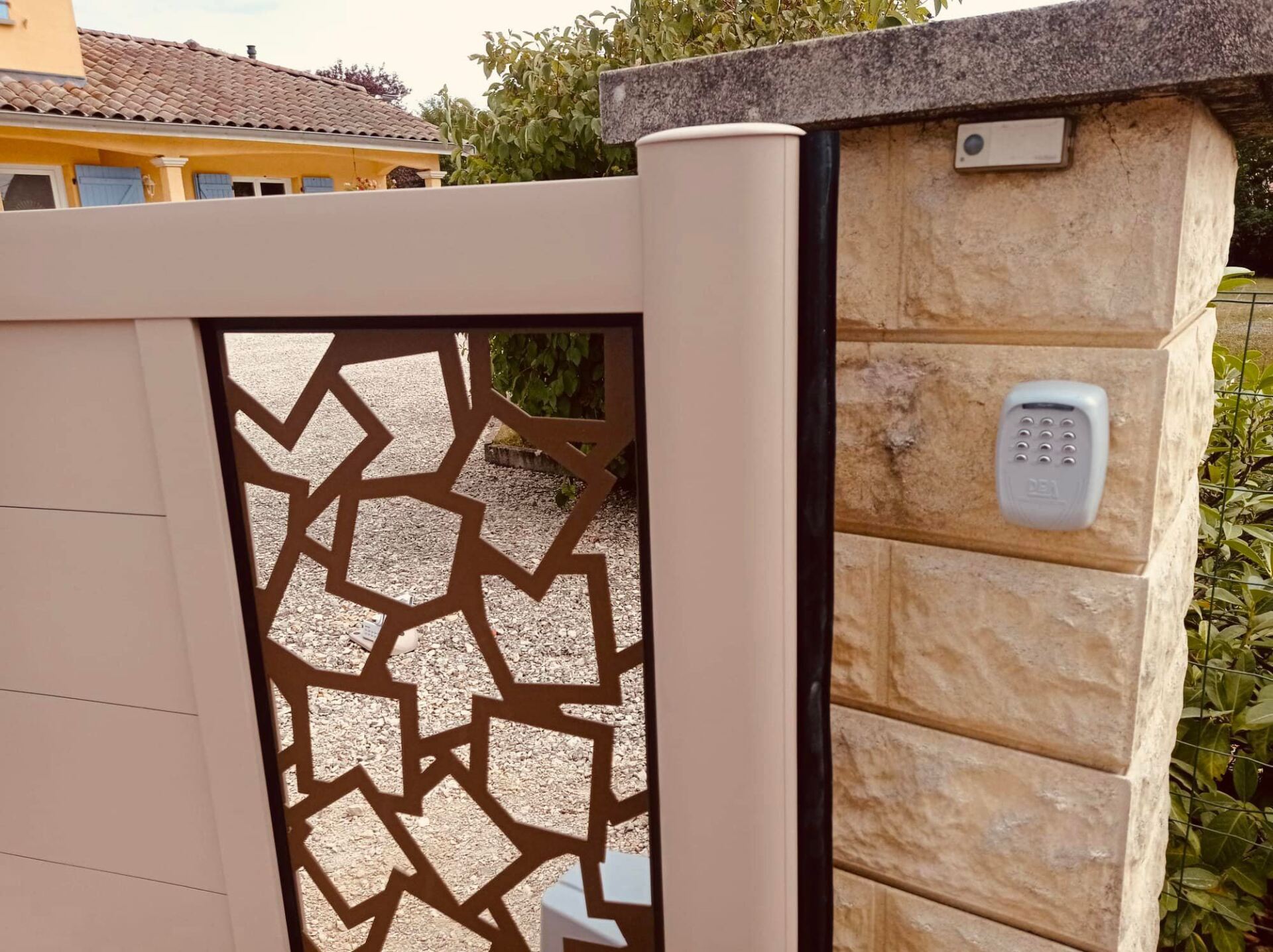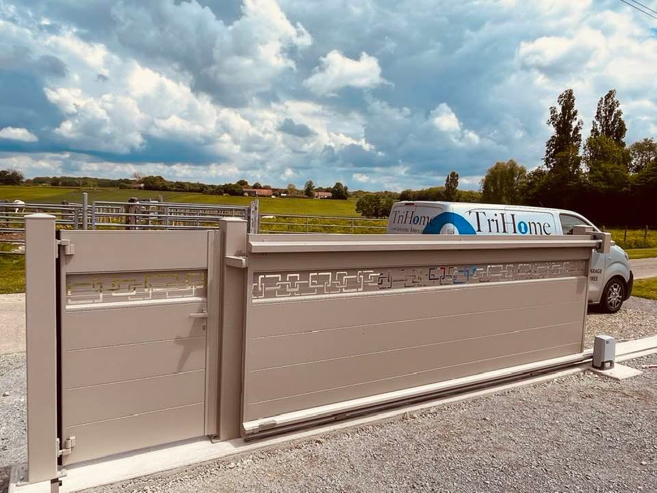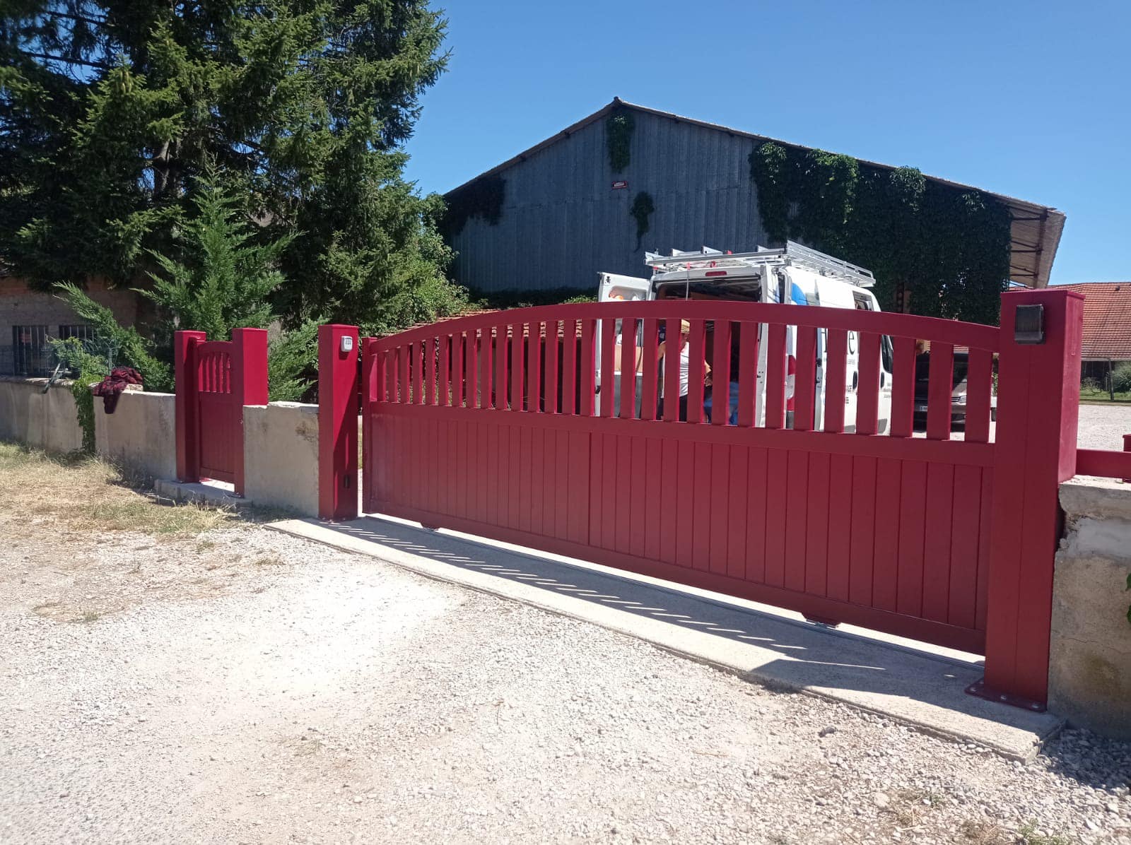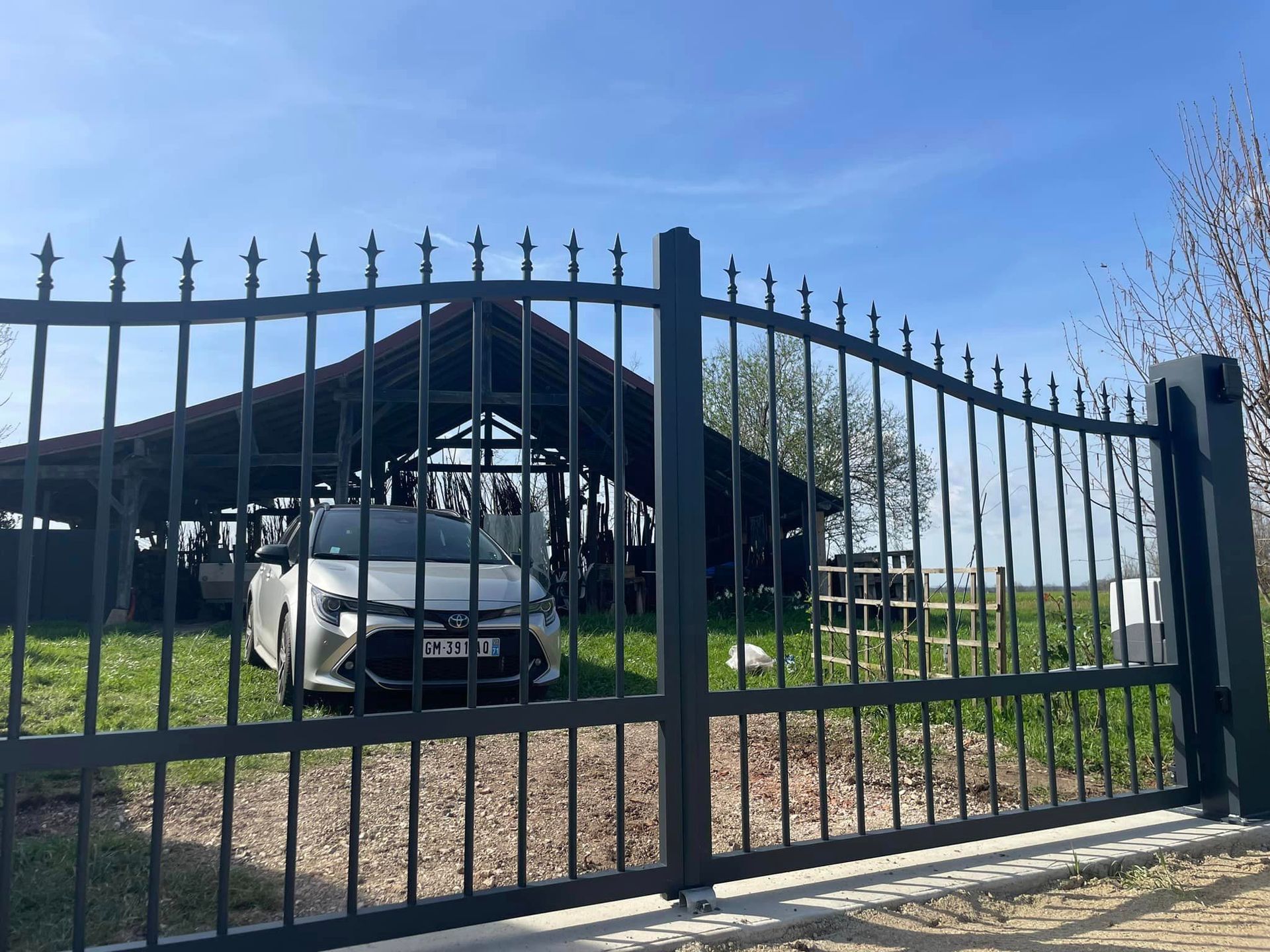 À Branges (71), juste avant la pause estivale de notre équipe Trihome, installation finalisée de ce portail sur mesure aluminum soudé et motorisé