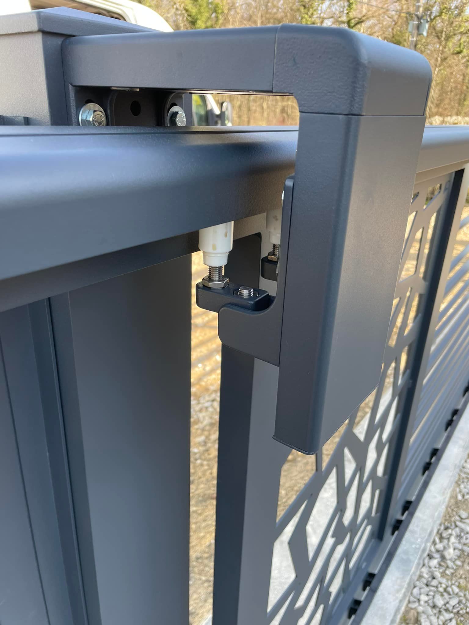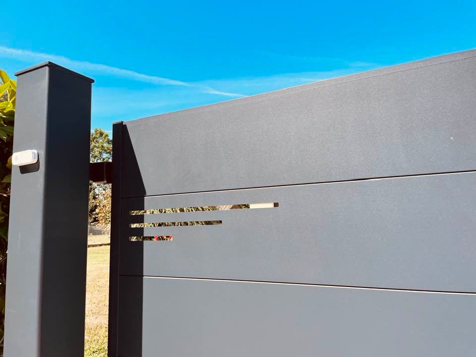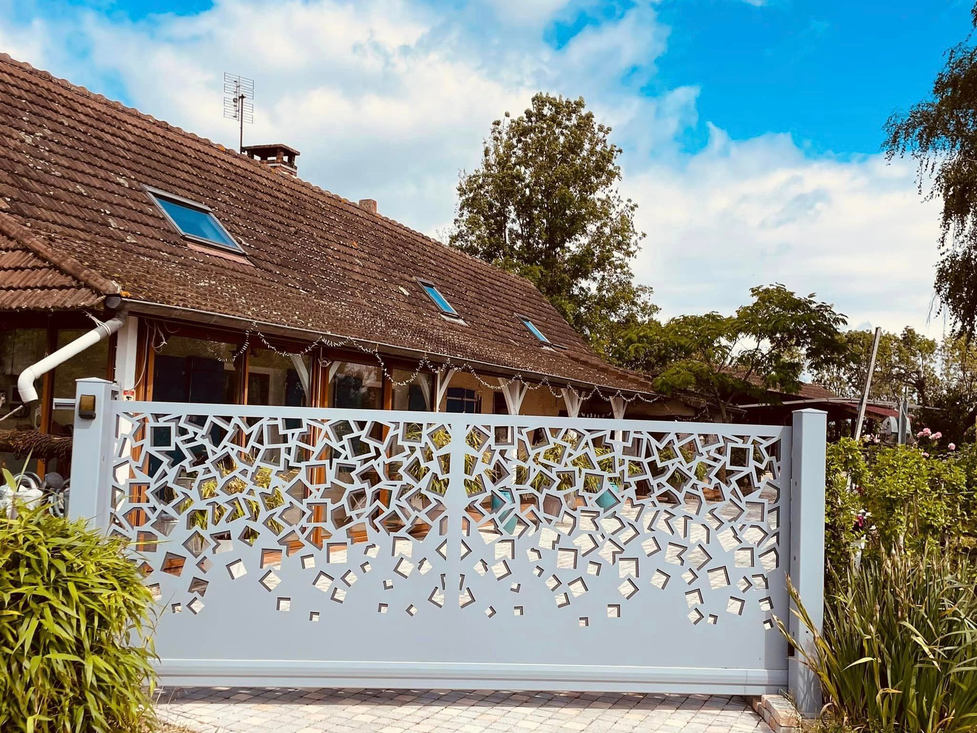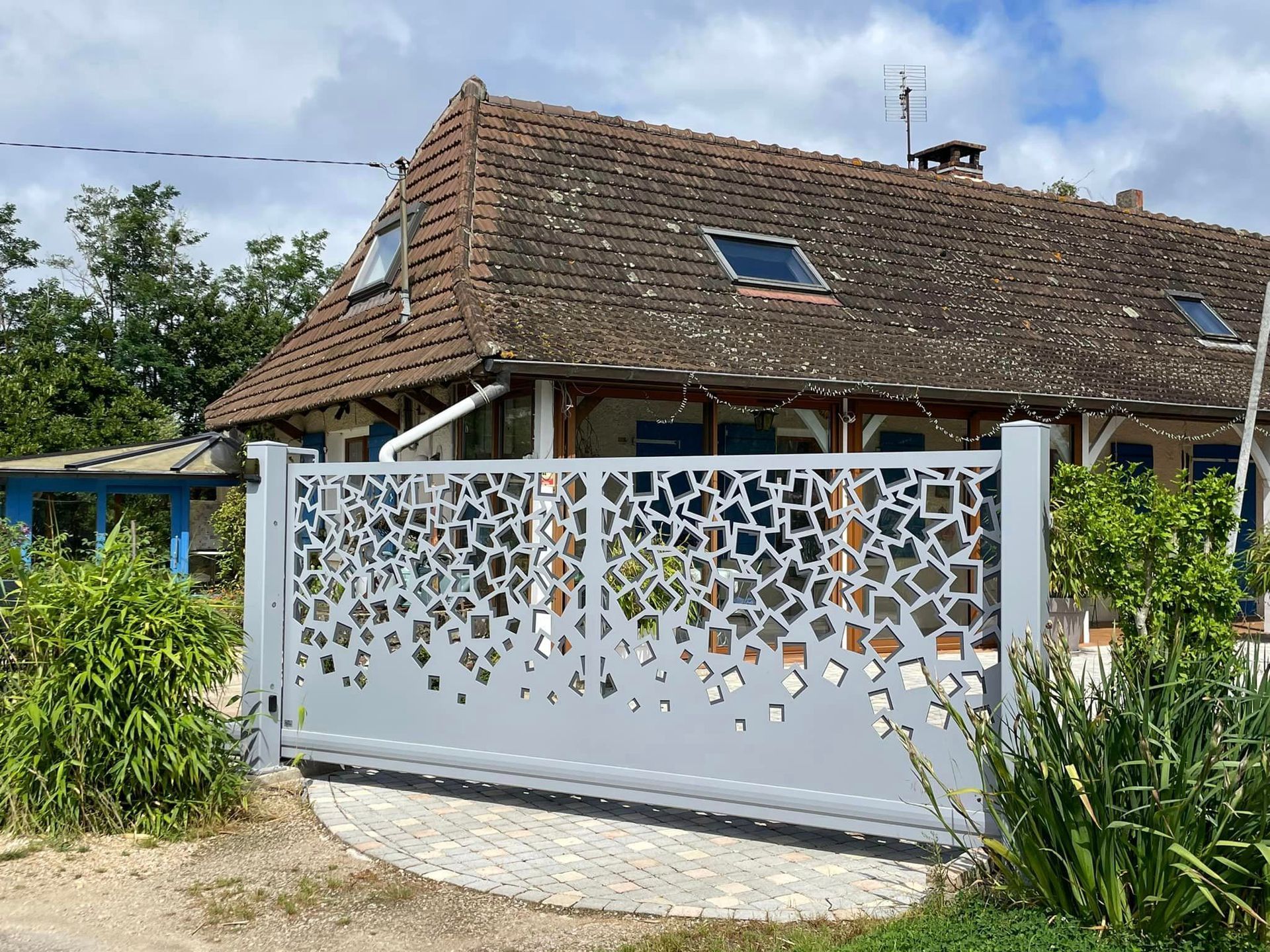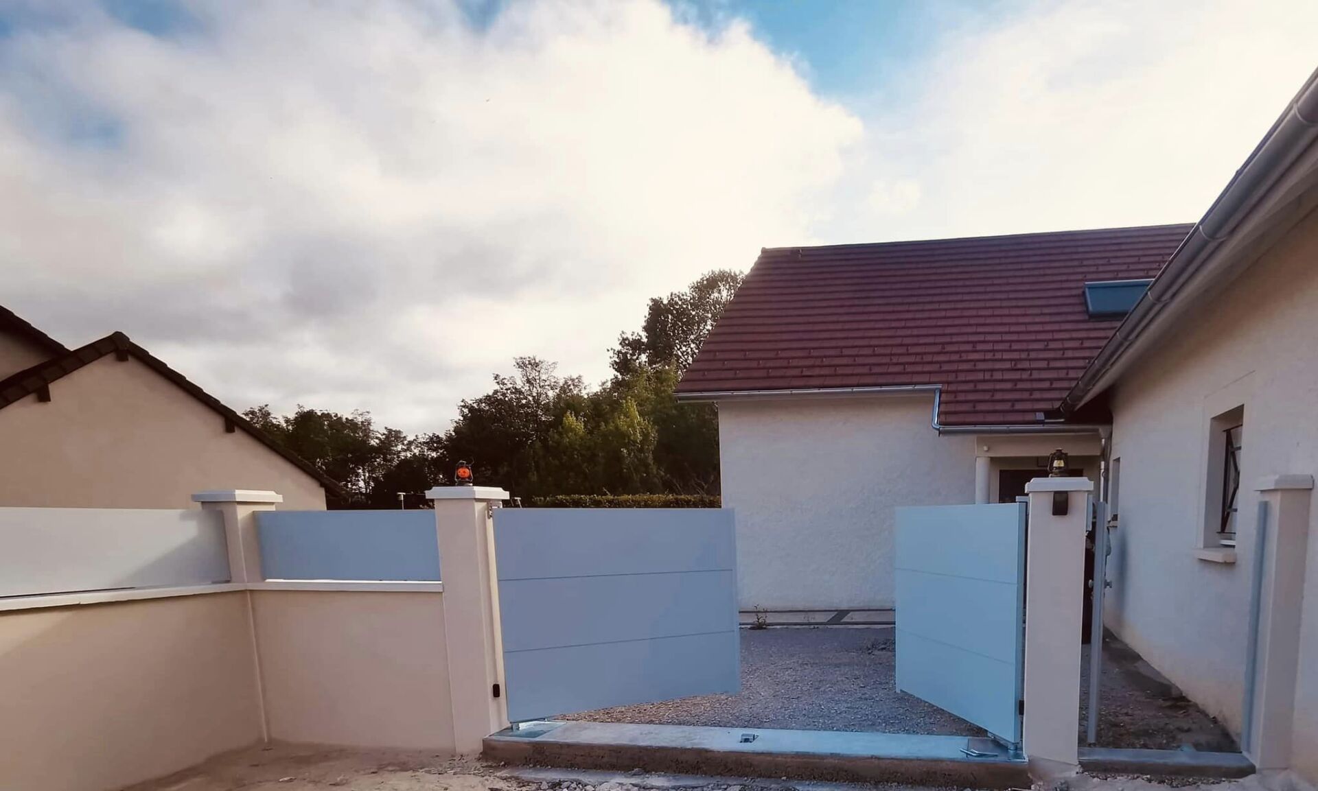 À Branges (71), juste avant la pause estivale de notre équipe Trihome, installation finalisée de ce portail sur mesure aluminum soudé et motorisé