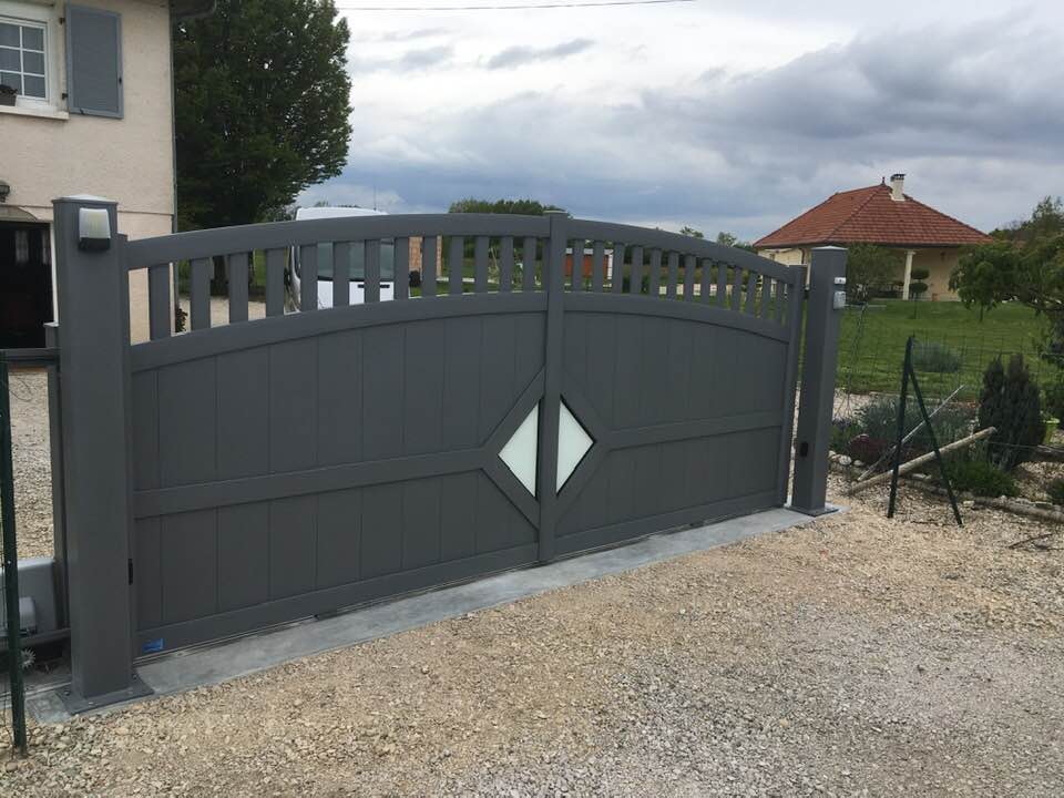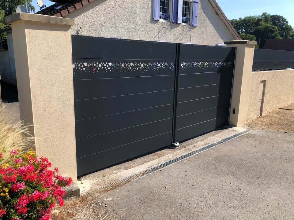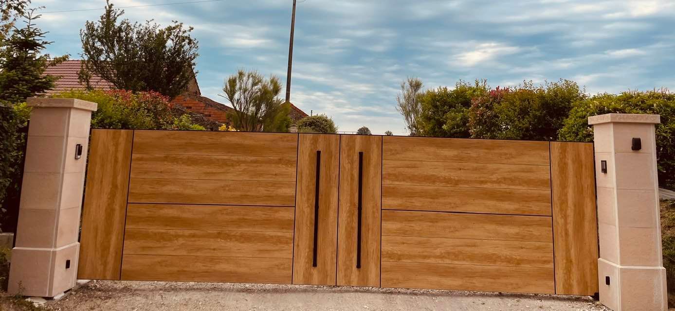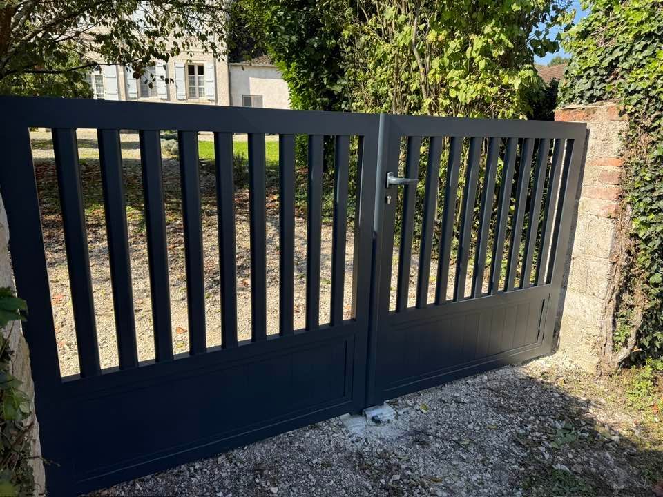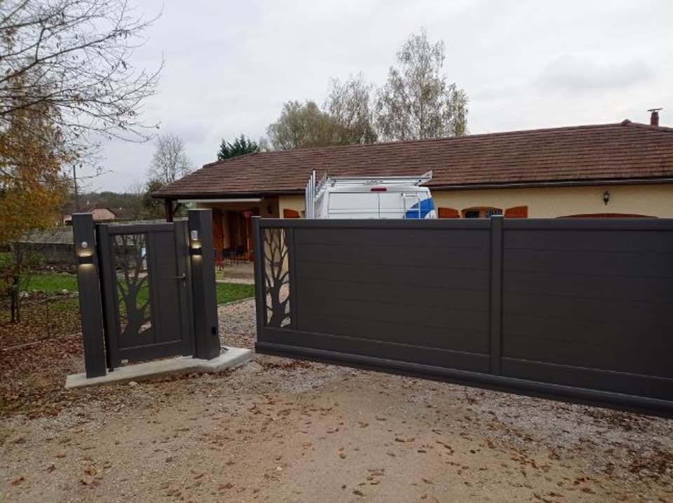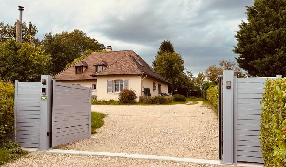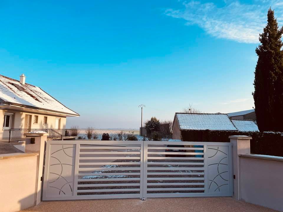 À Serley (71) joli portail deux battants en aluminium fait sur mesure