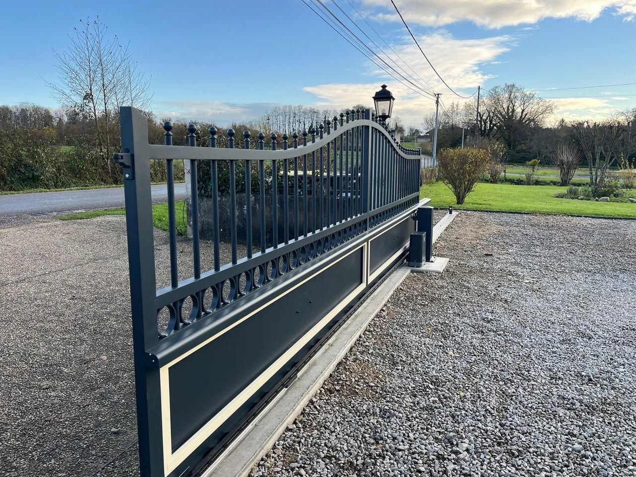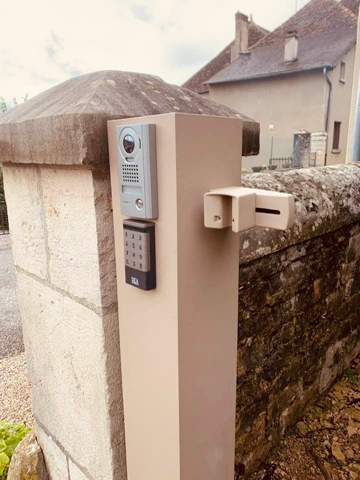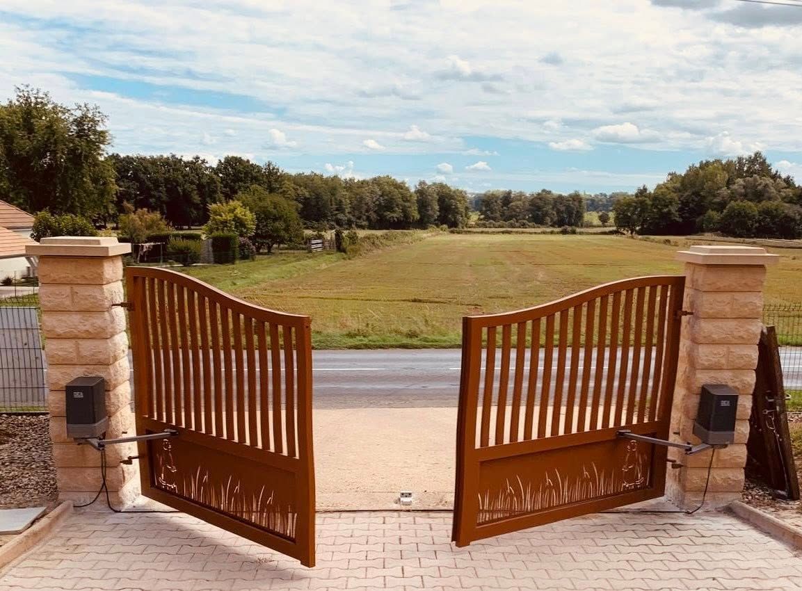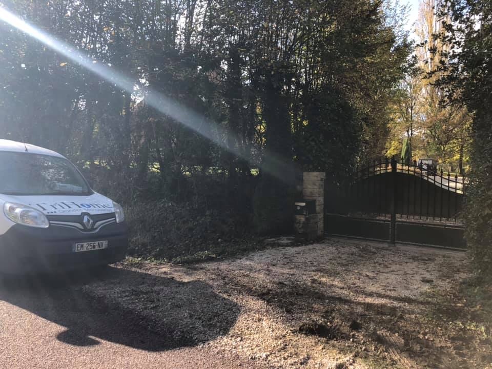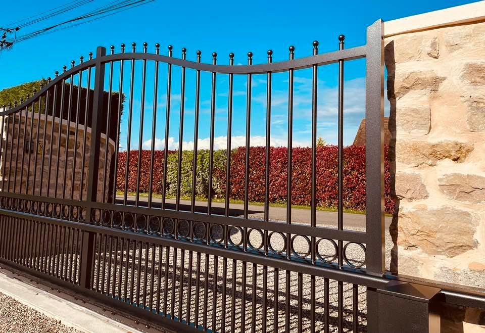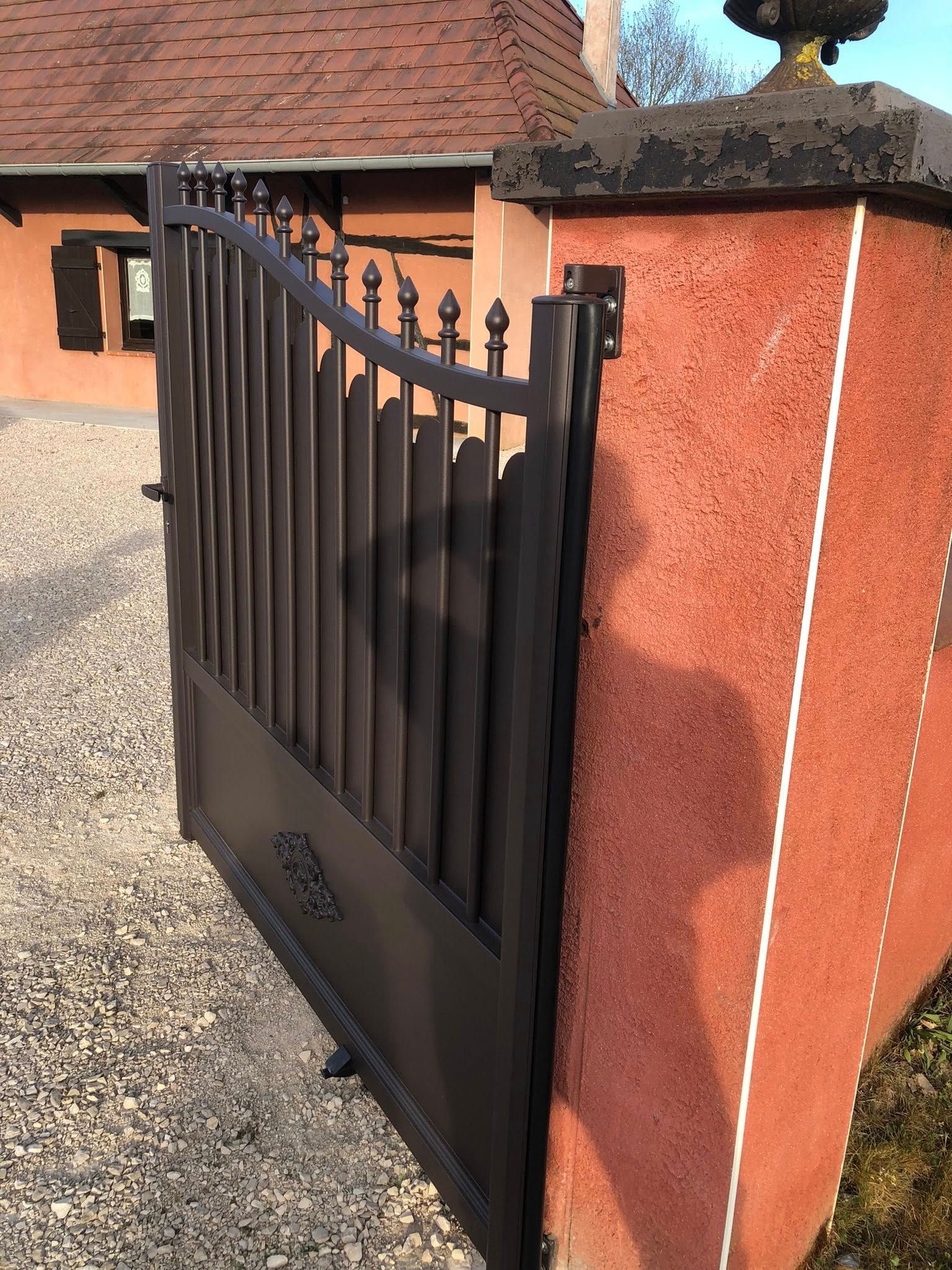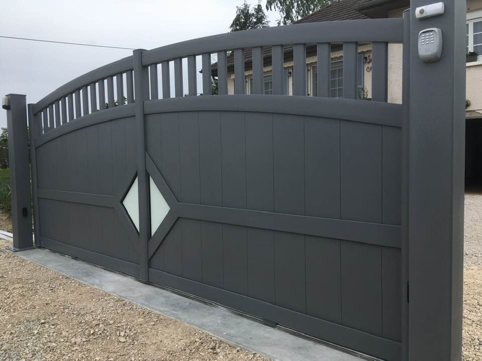 À Bruailles (71), installation et pose de ce joli portail aluminium soudé deux battants motorisés dans un style traditionnel mais très fonctionnel !