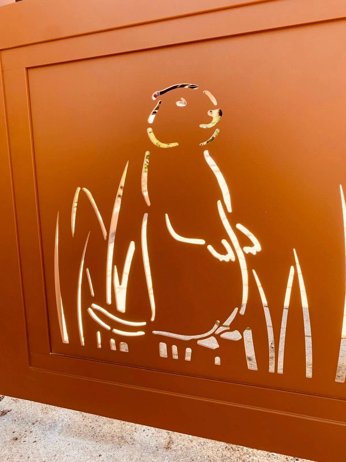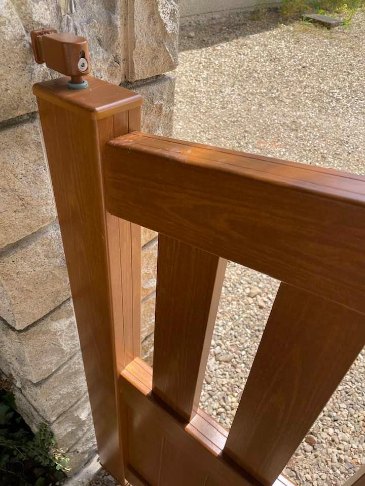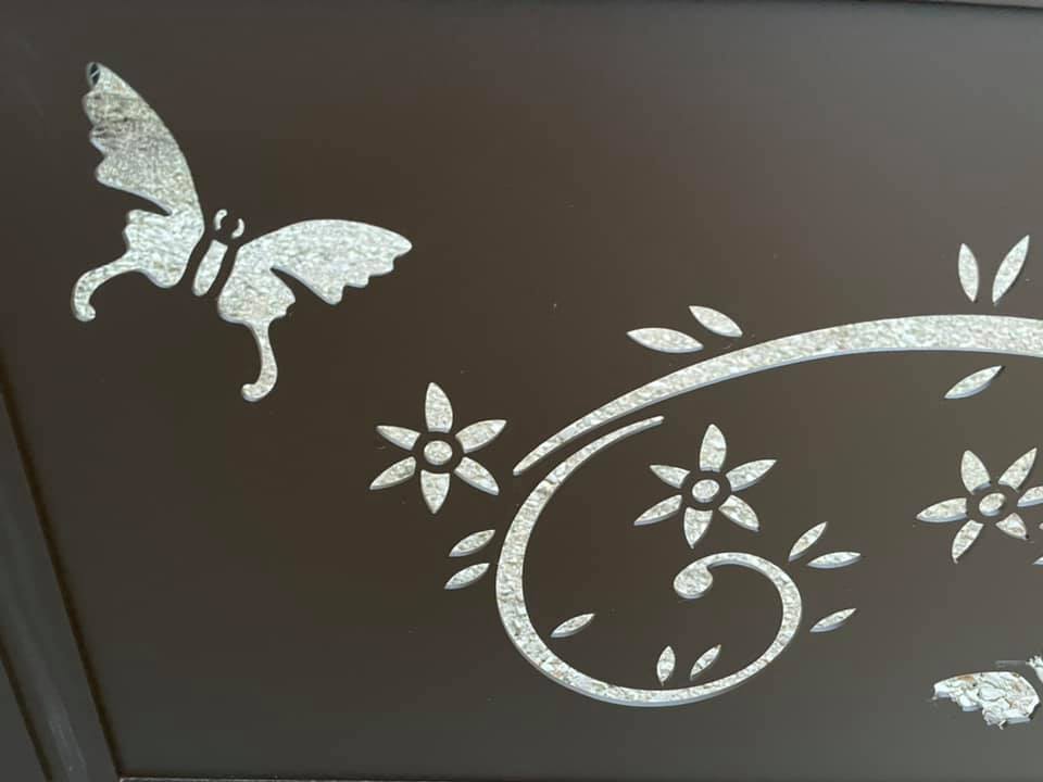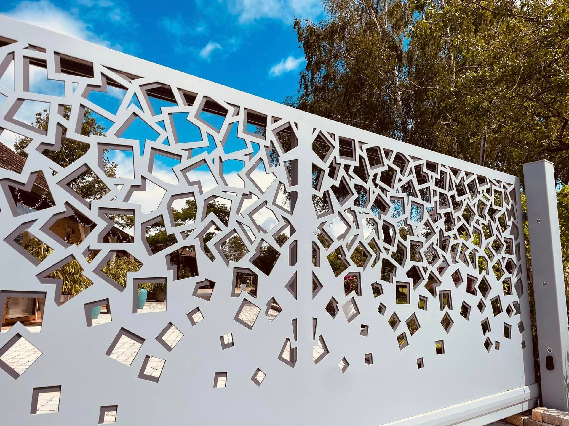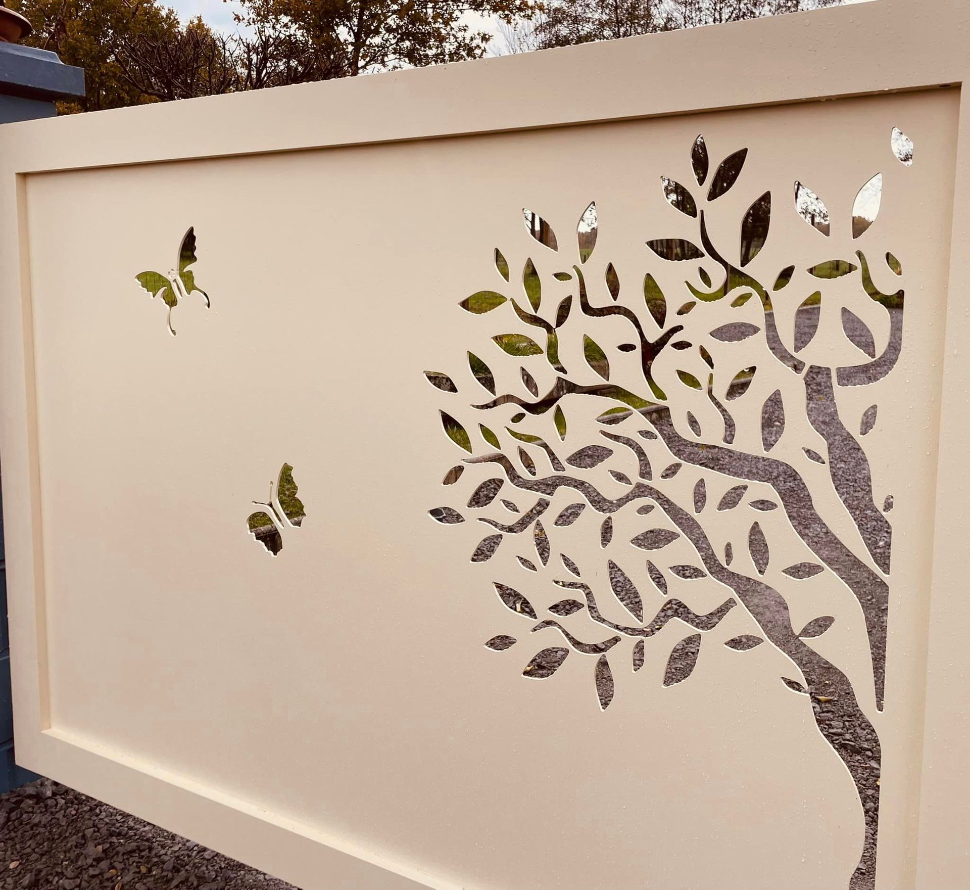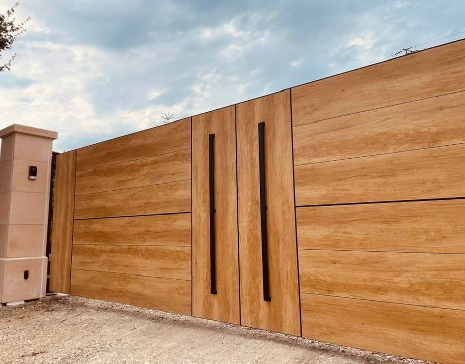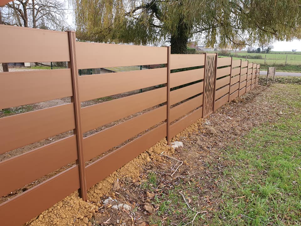 - clôture , portillon et portail avec motif personnalisé en découpe jet d’eau.