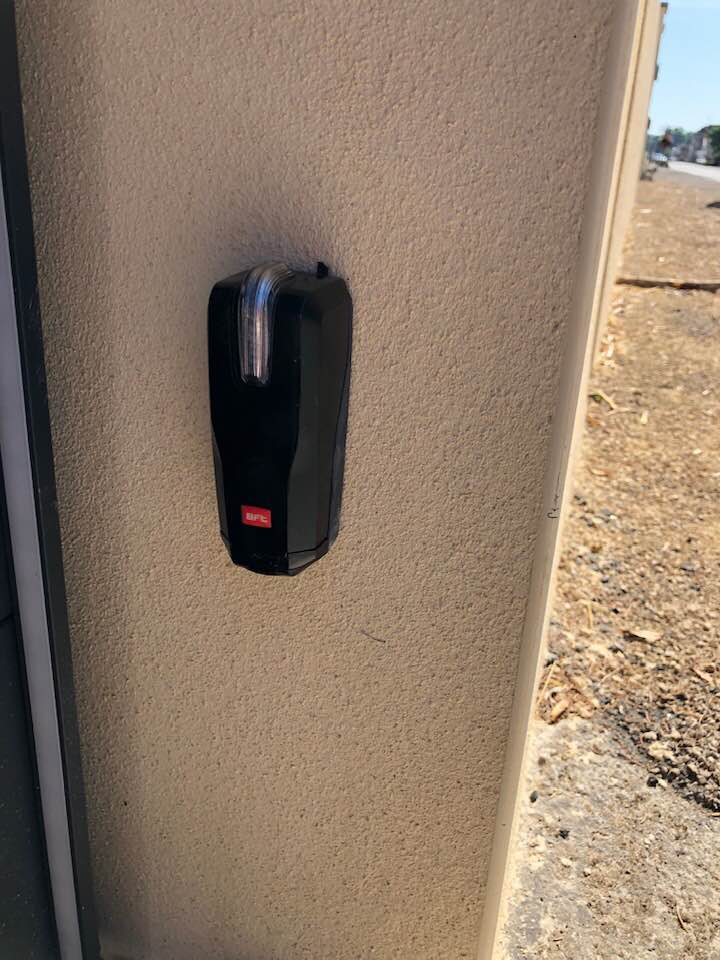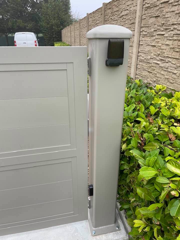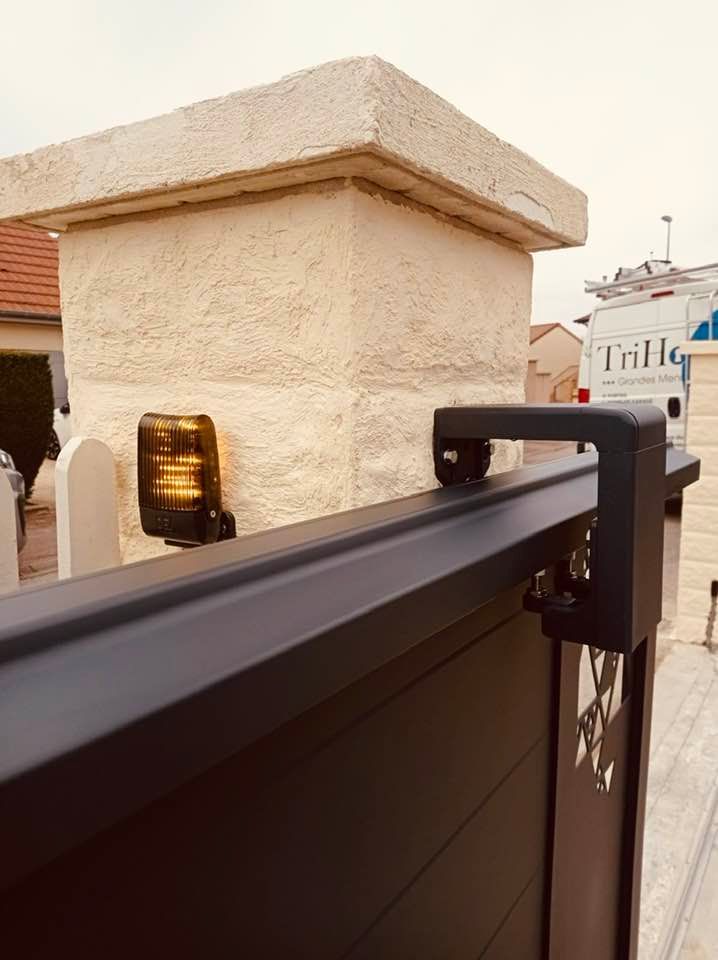 - portail deux battants motorisés via moteurs Geko DEA avec photocellules design à leds.