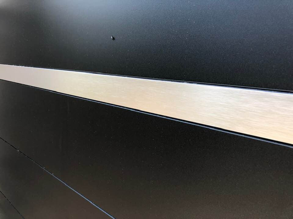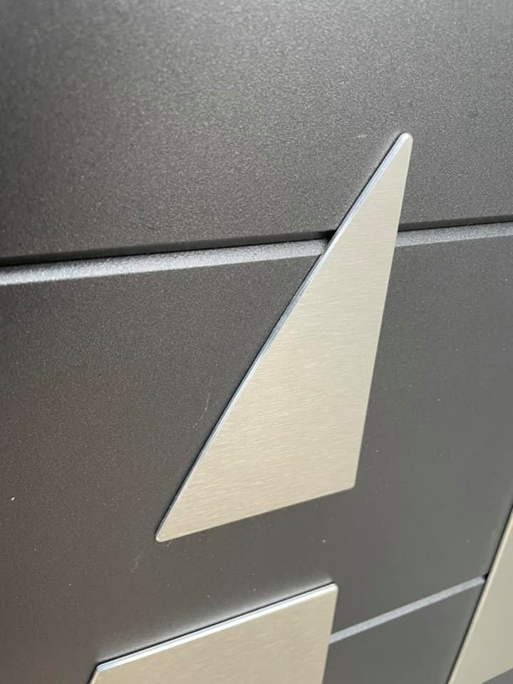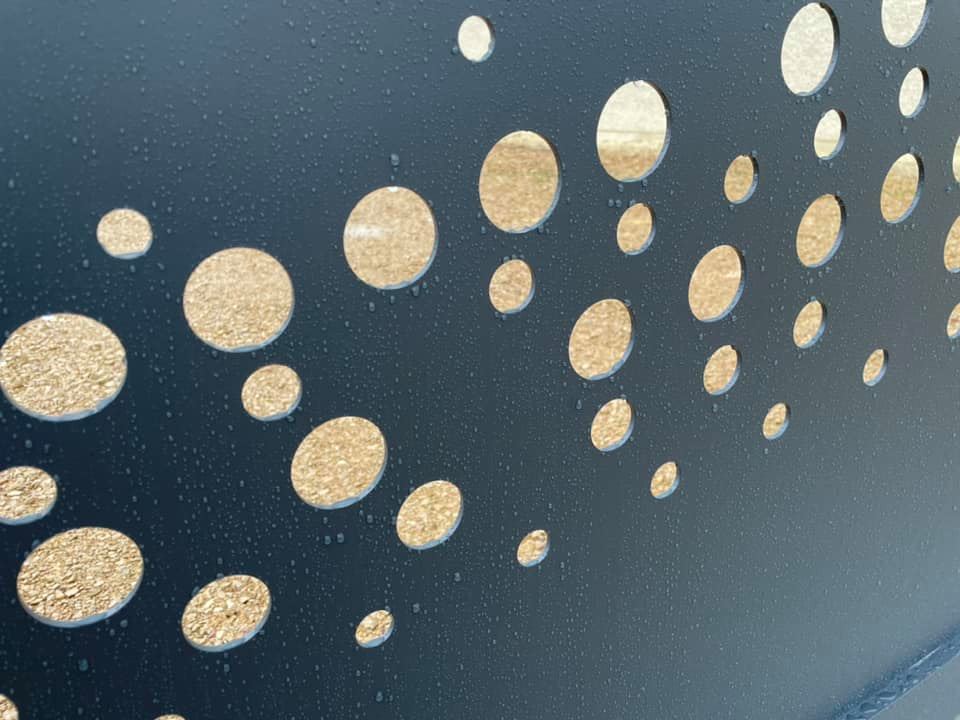 - Coloris sur mesure Noir 2200 sablé et motifs ajourés ( découpe jet d’eau) sélectionnés par notre cliente !