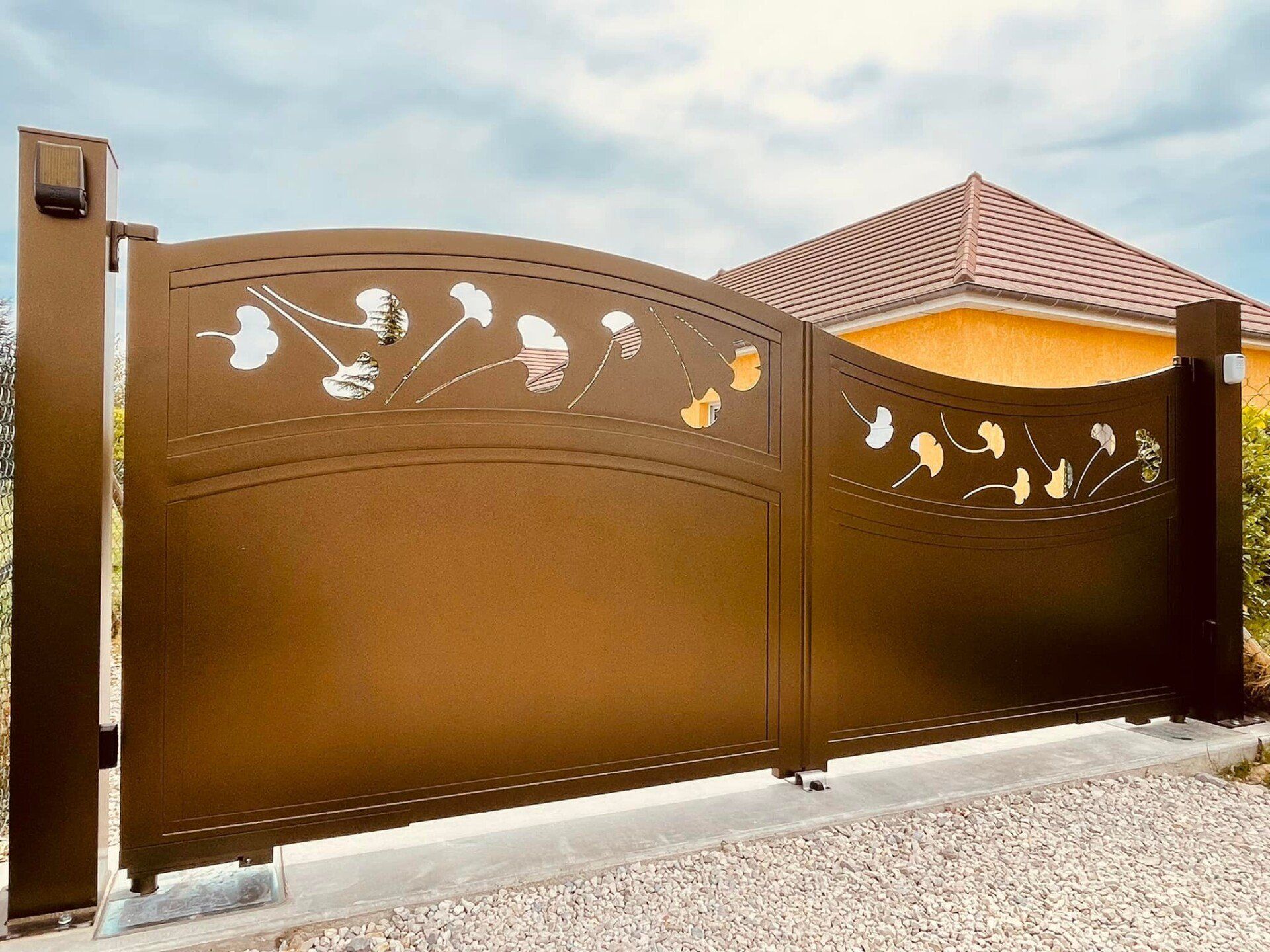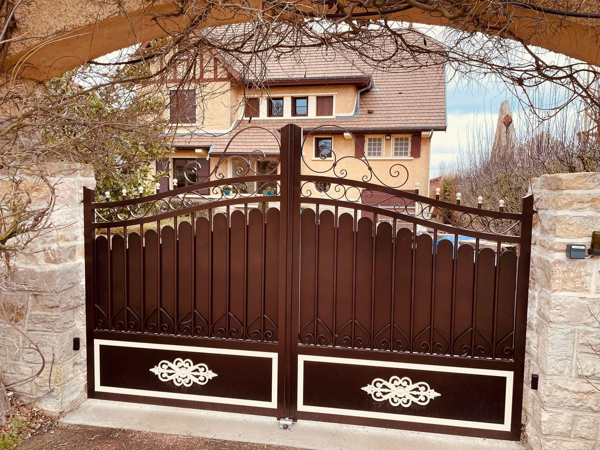 Portail deux battants motorisés réalisés avec notre partenaire fabricant Bredok Pro ! Modèle unique dessiné avec nos clients. 🤝