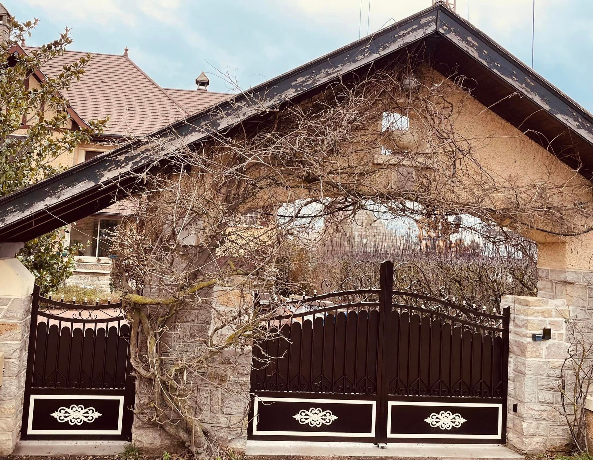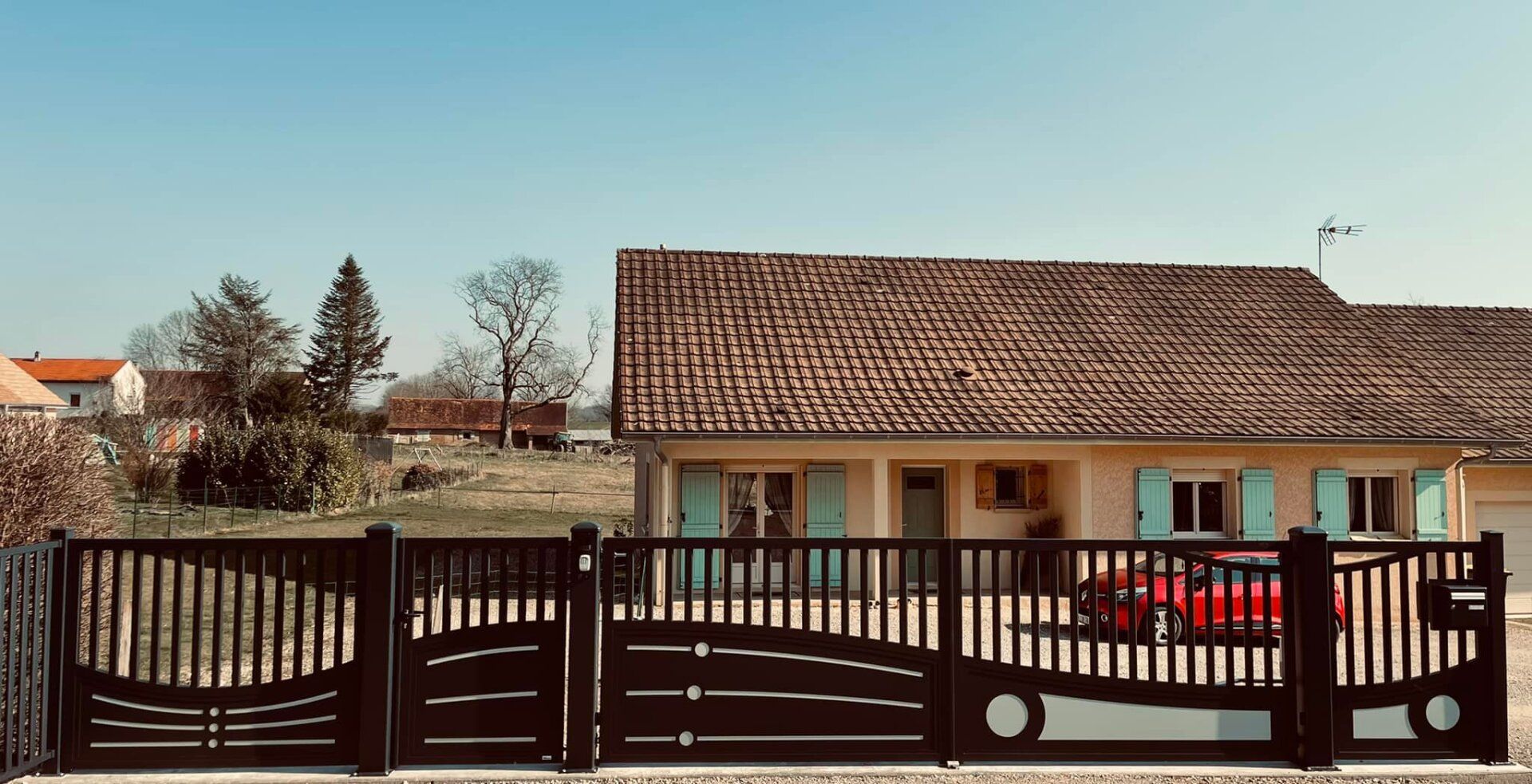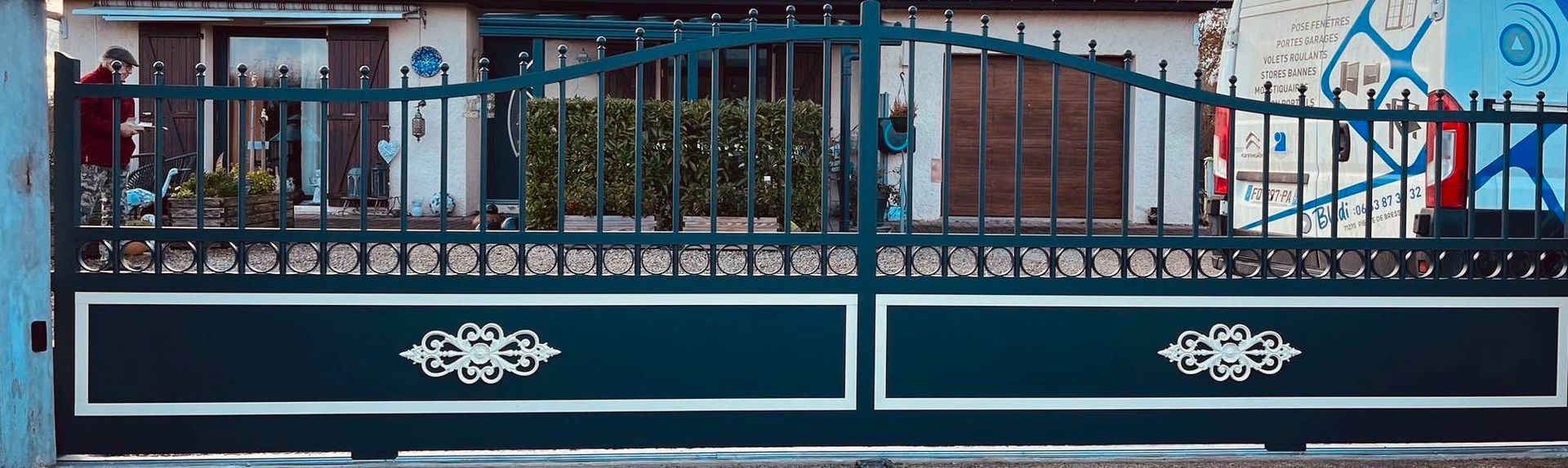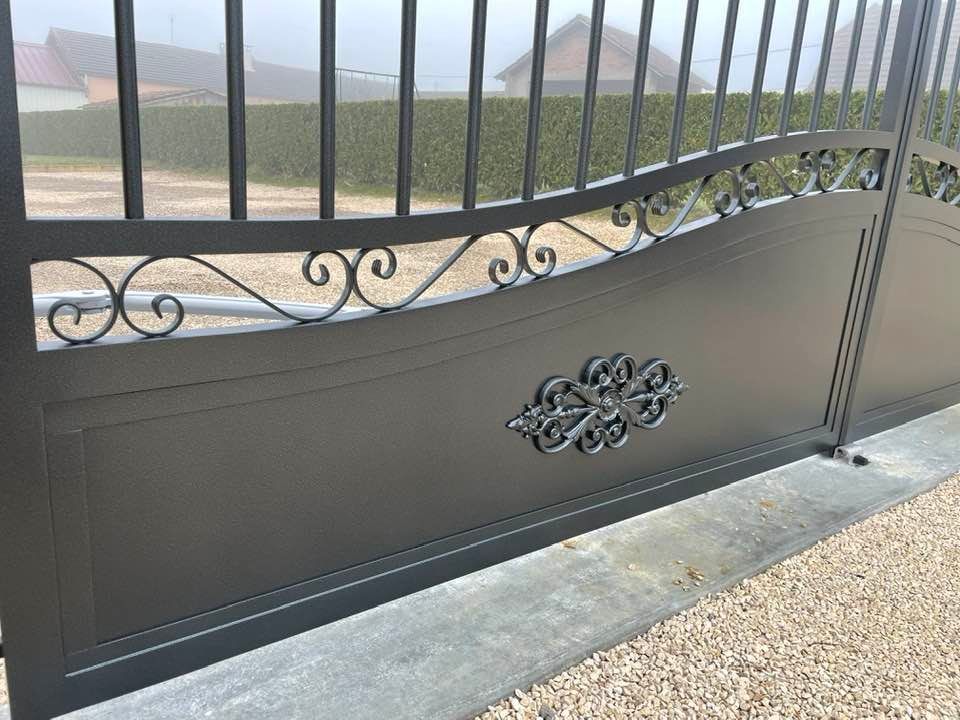 À Thurey (71) belle imitation ferronnerie traditionnelle pour ce portail en Alu gamme "Story" 😍