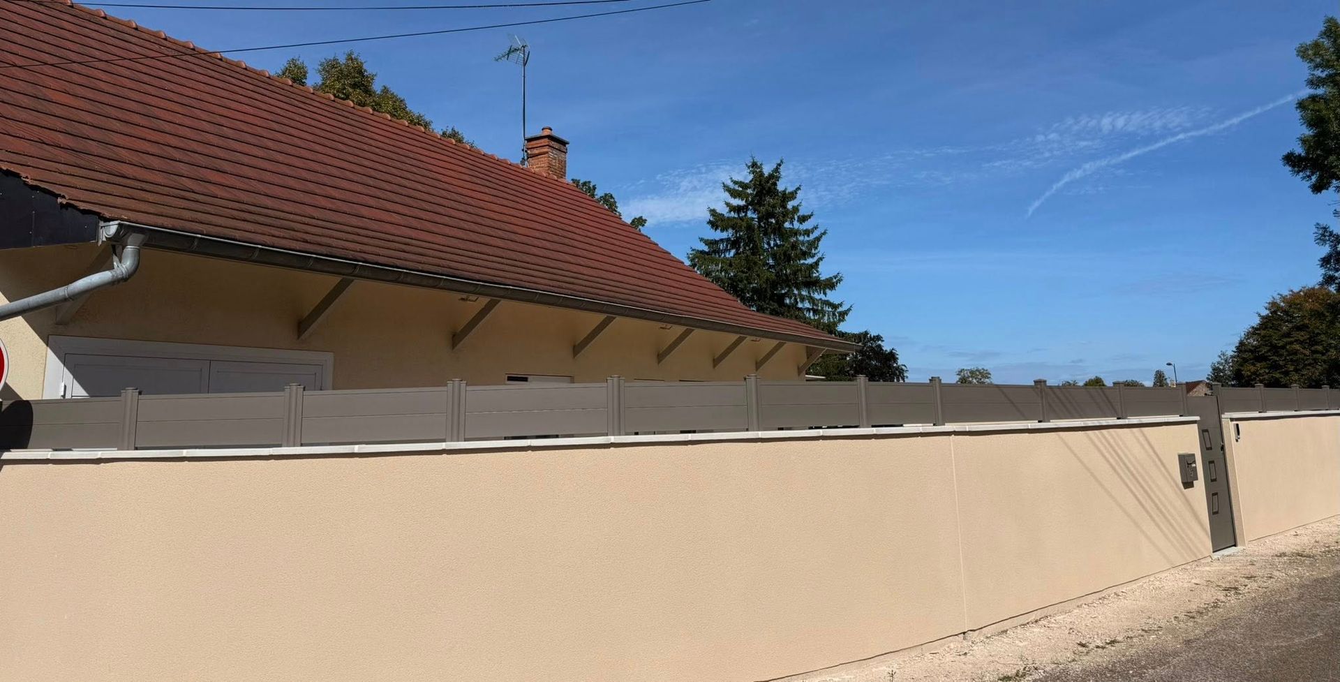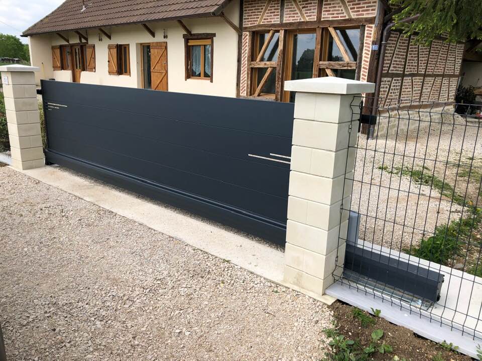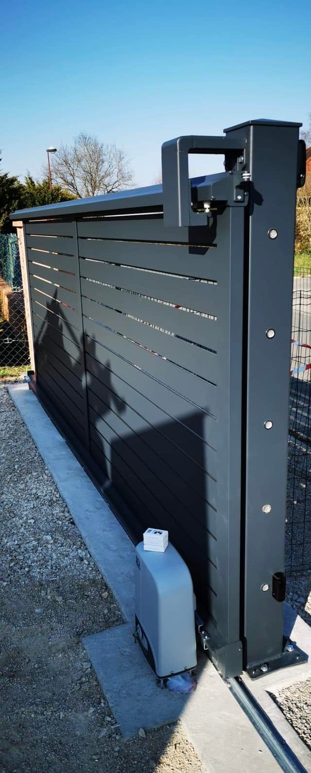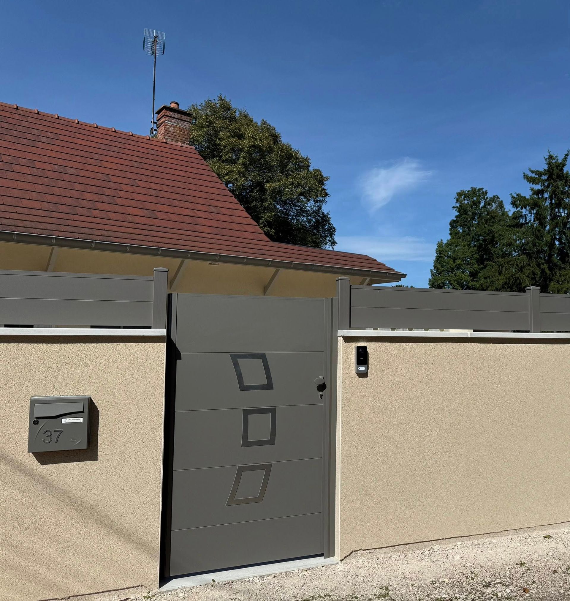 - Portail coulissant motorisé, portillon et clôtures latérales assorties avec boîte aux lettres intégrée 😃👍