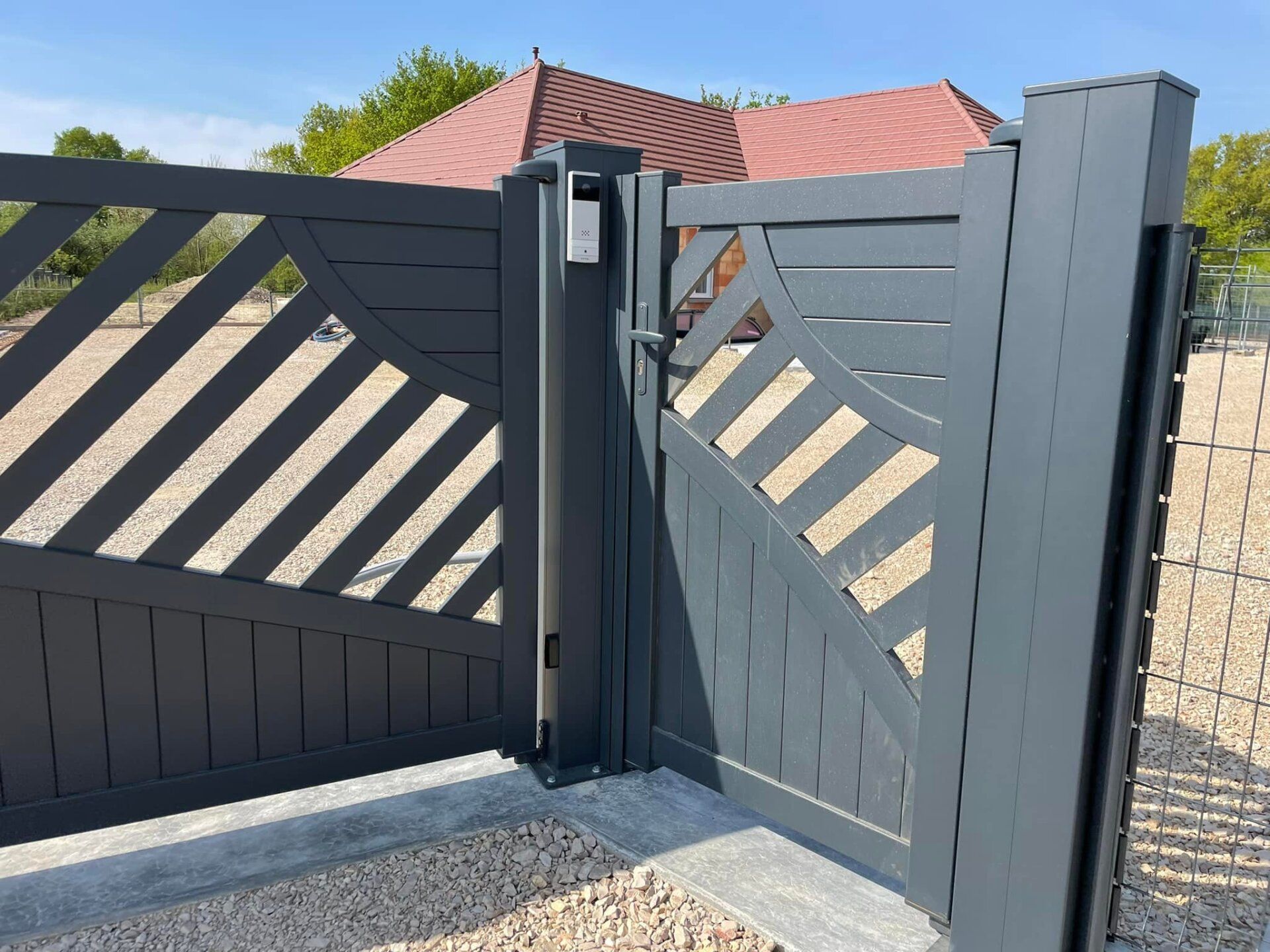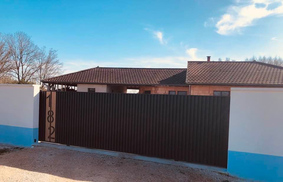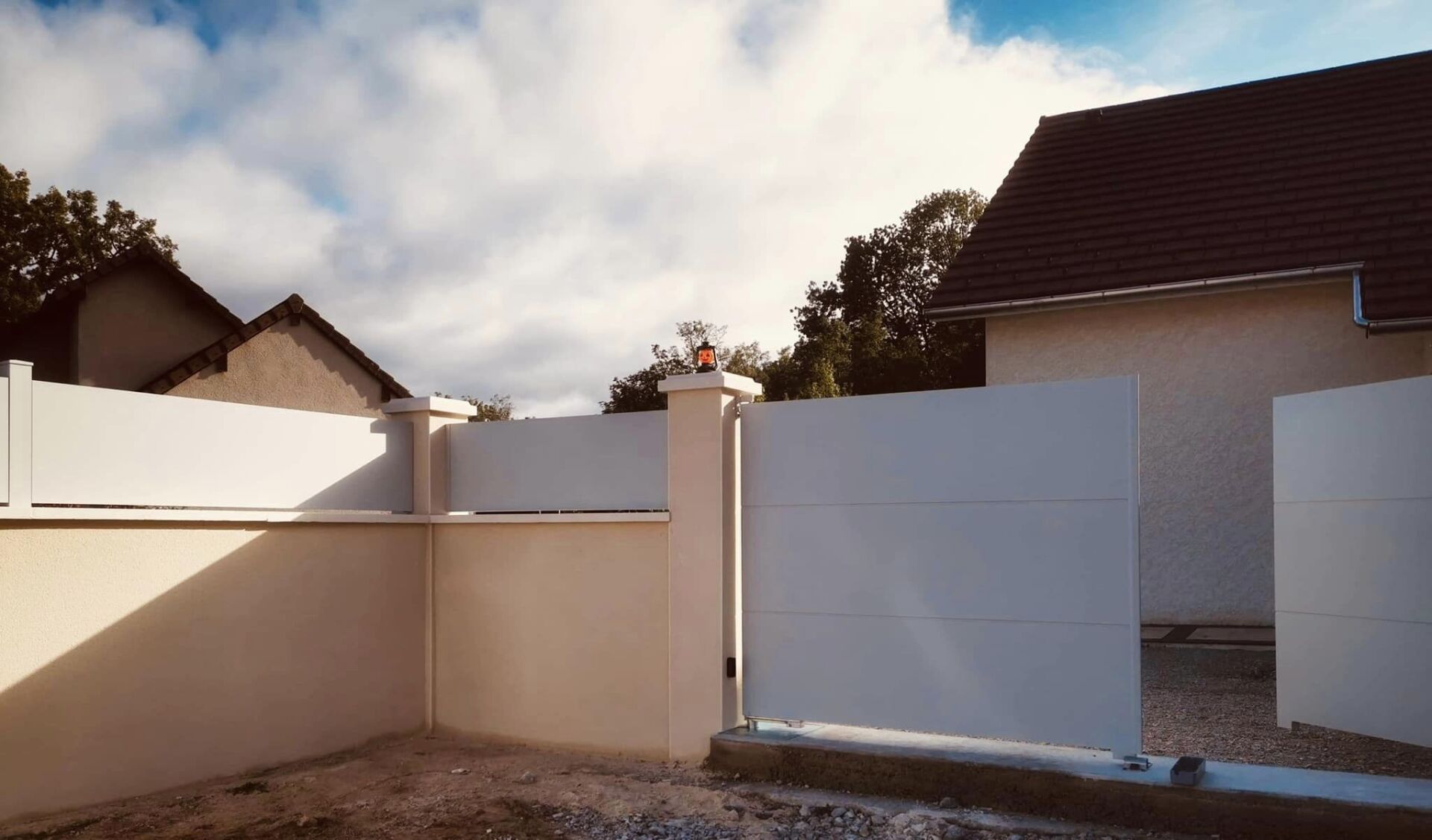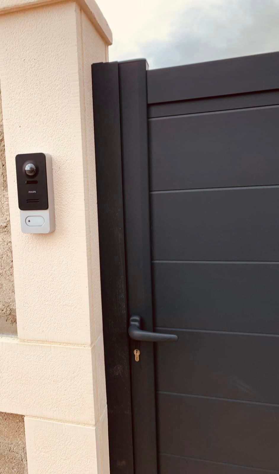- Portail coulissant motorisé, portillon et clôtures latérales assorties avec boîte aux lettres intégrée 😃👍