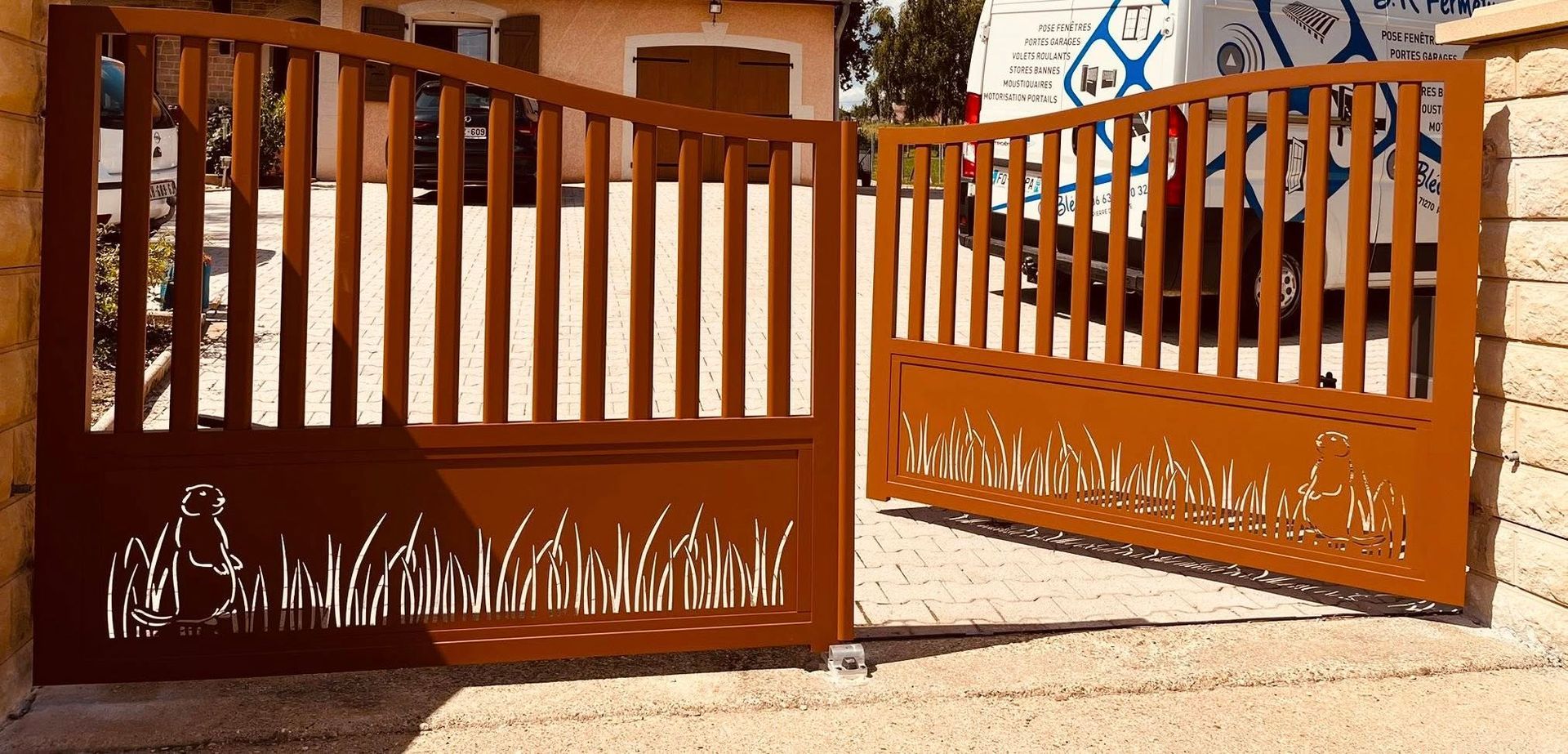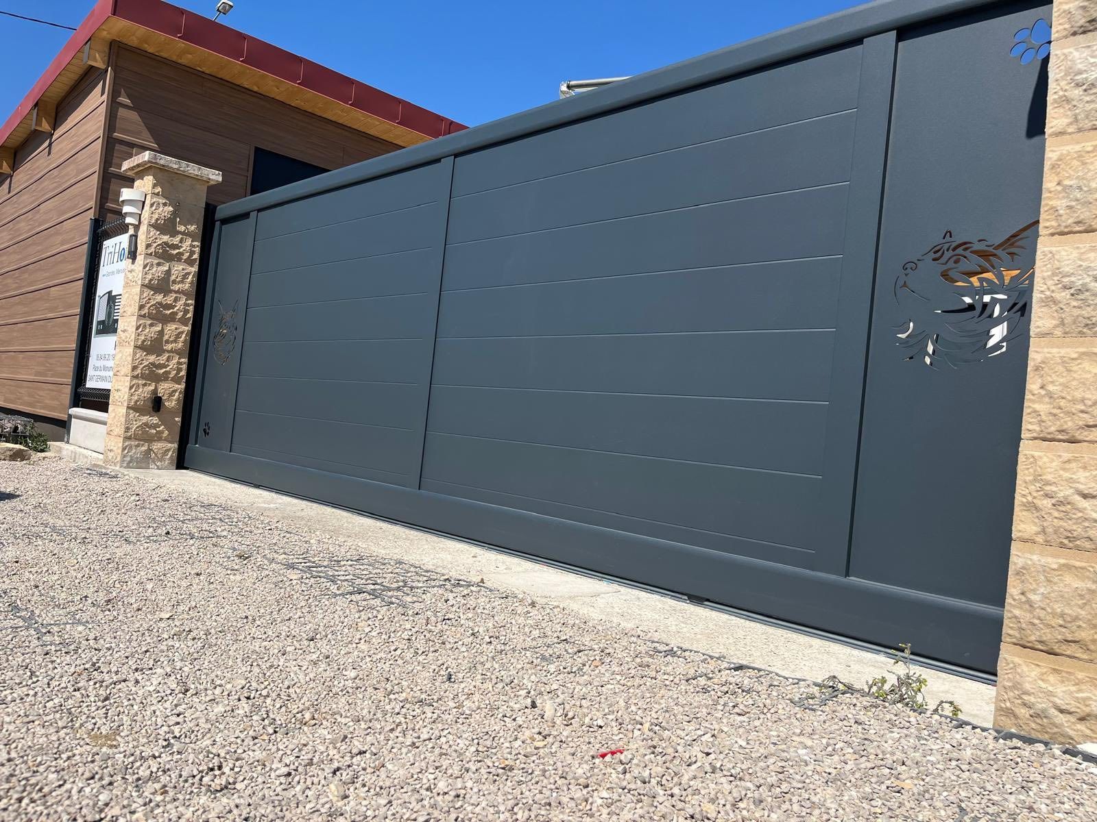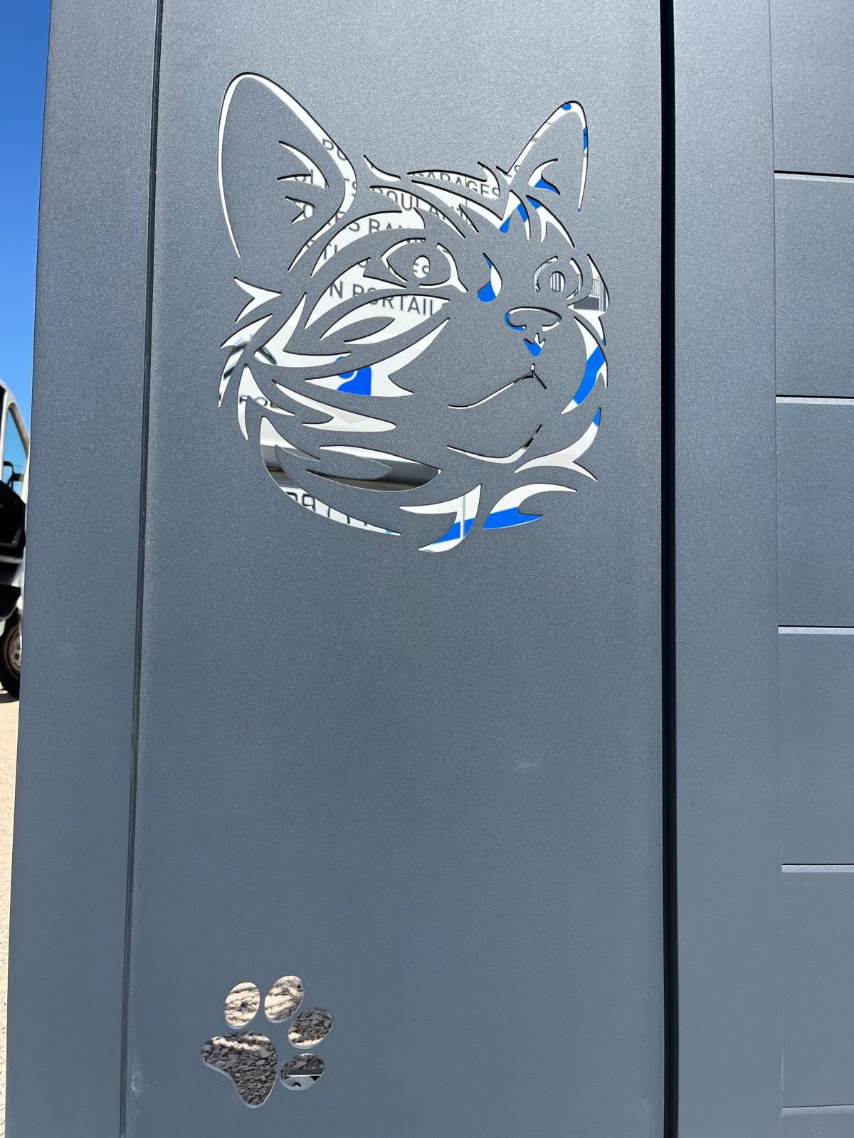À Aumur (39) ce magnifique Portail Trihome au motif sur mesure, réalisé à partir du dessin « chat et patte de chat » de notre client ! 😍