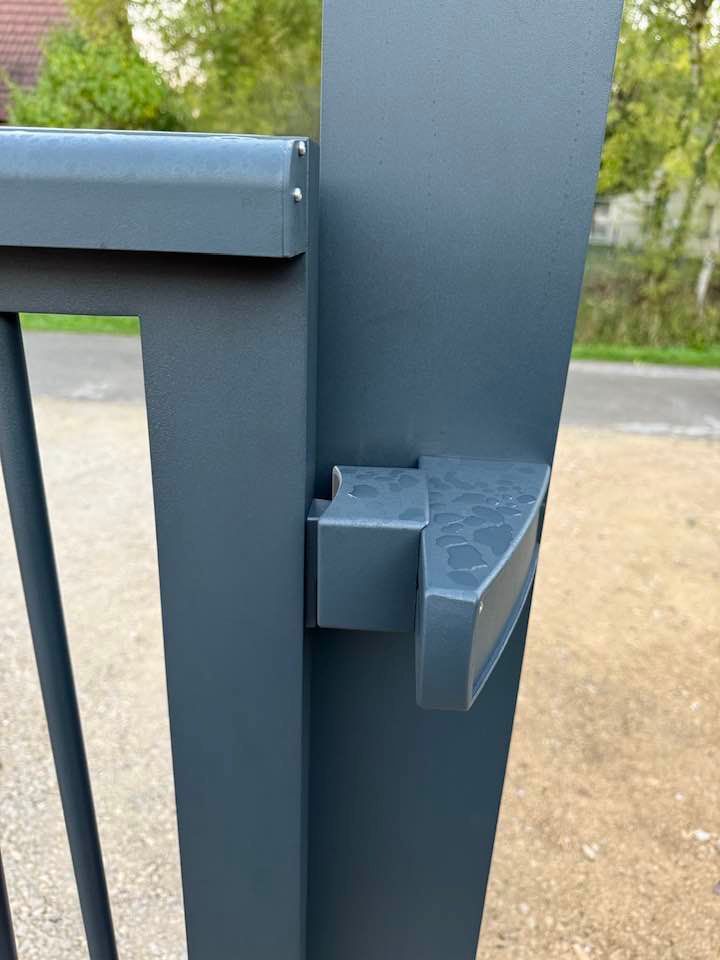 👉 portail grande largeur coulissant sur rail manuel avec verrouillage par clé sur cylindre européen.
