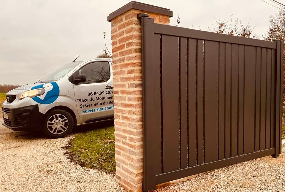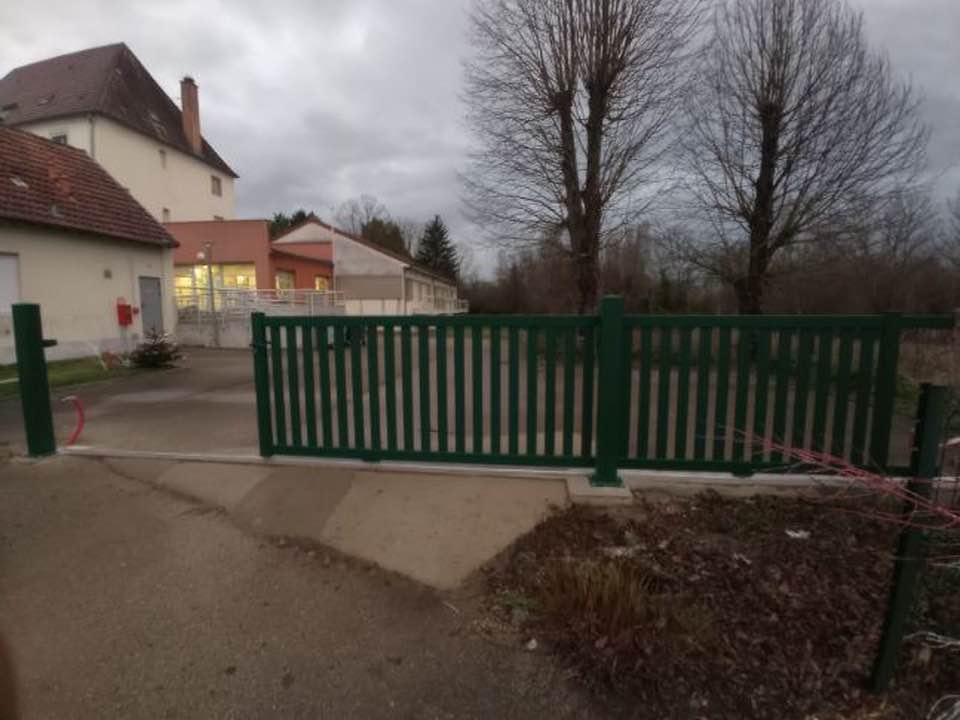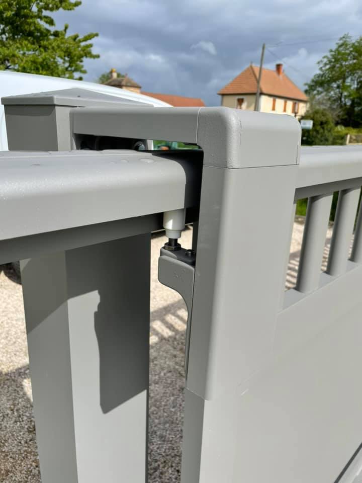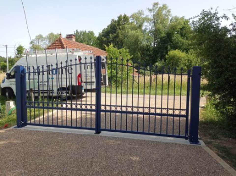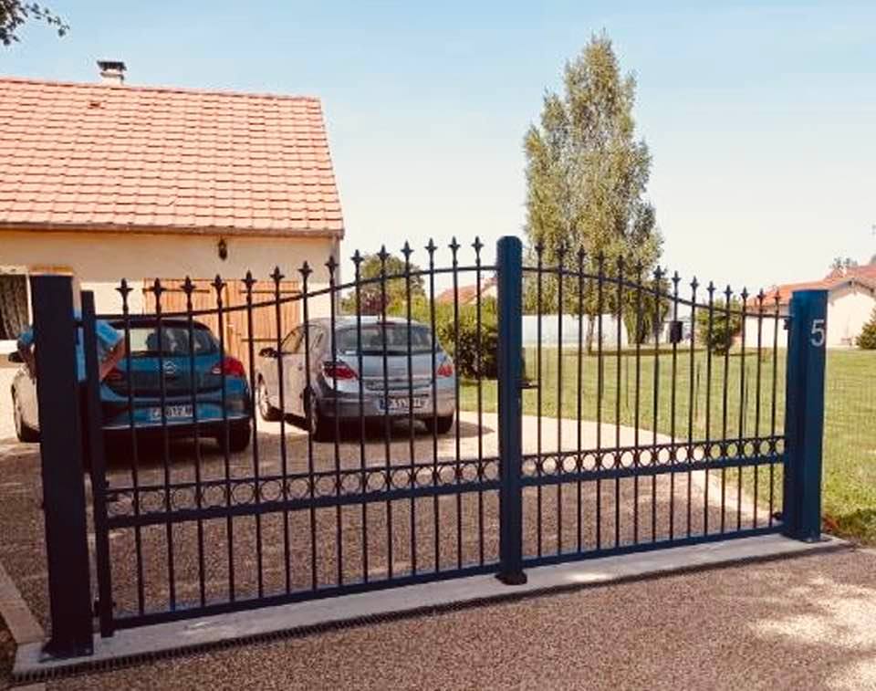 À Saint Usuge (71) ce portail deux battants posé et installé en tenant compte d'un contexte de pente chez le client