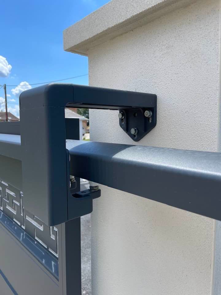 PORTAIL COULISSANT SUR RAIL, POSE SUR POTEAUX ALUMINIUM