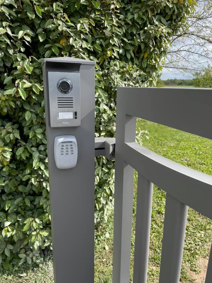 - portillon avec gâche électrique commande de l’ouverture depuis l’intérieur par visiophone et de l’extérieur par digicode.