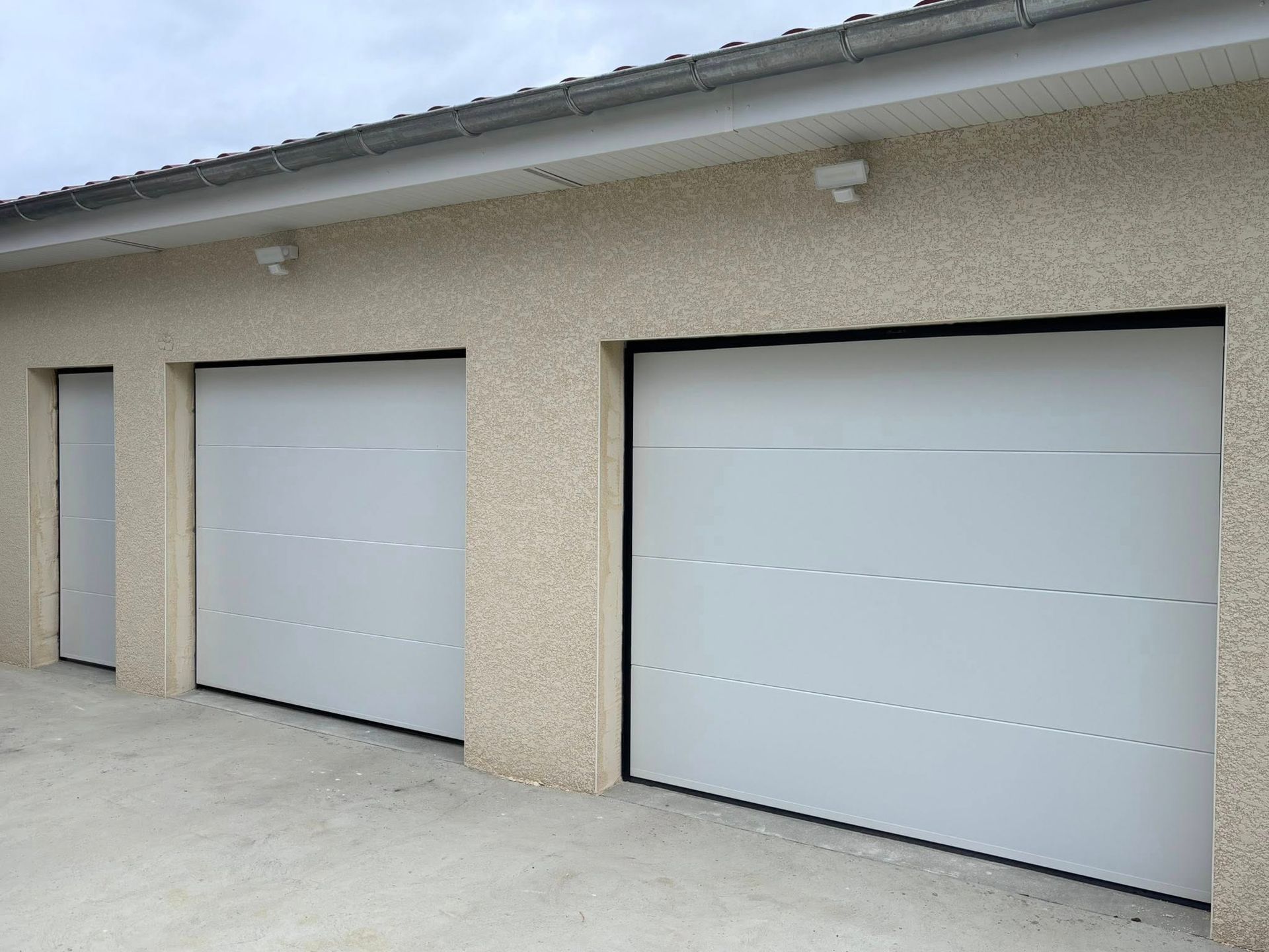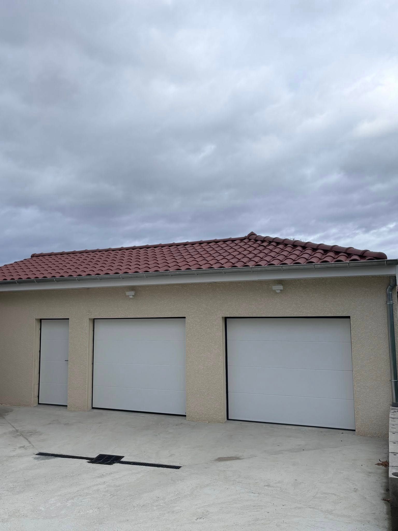 Bel ensemble installé hier à Confrançon (01) de 3 portes de garage selon 3 versions :