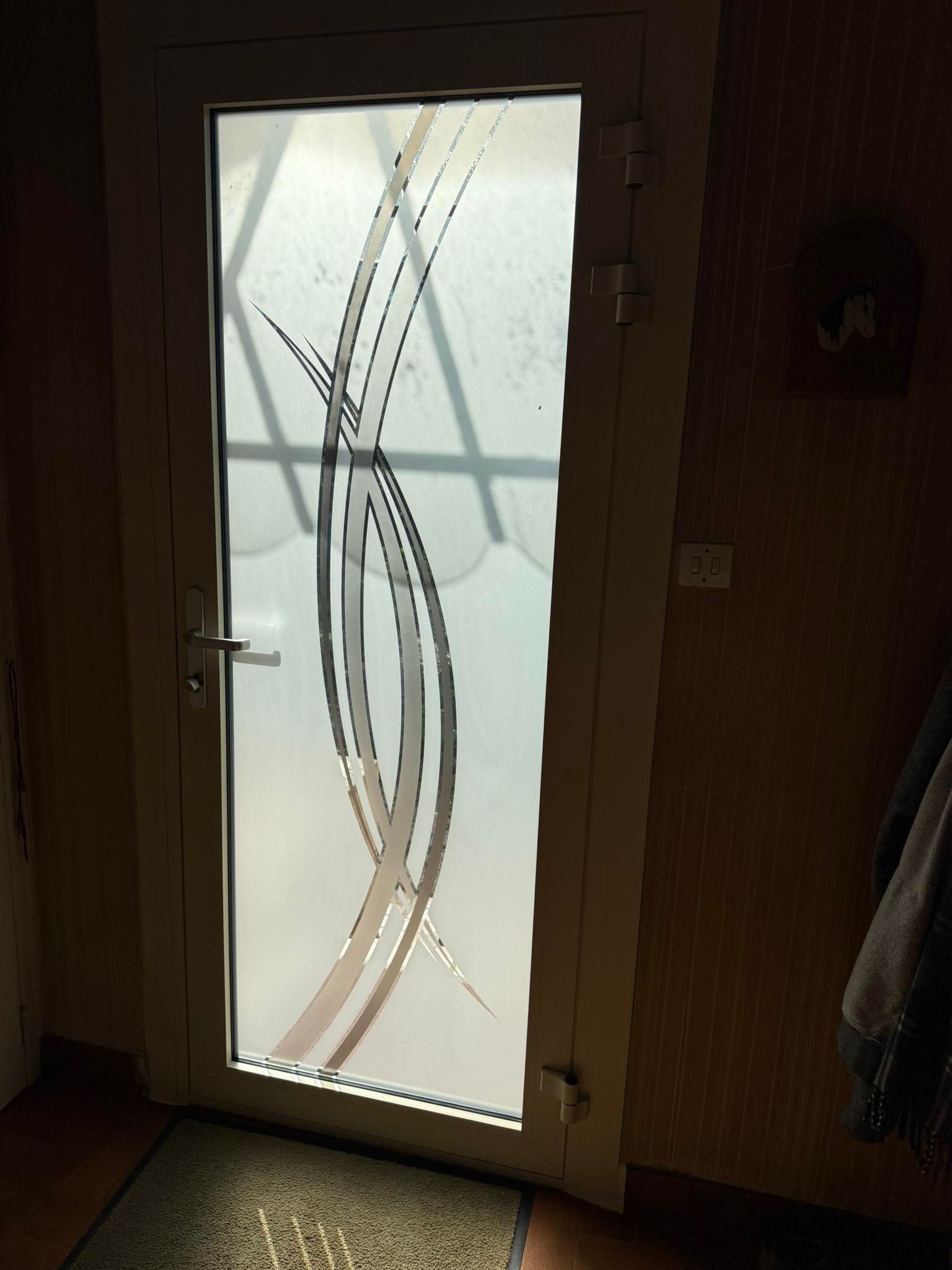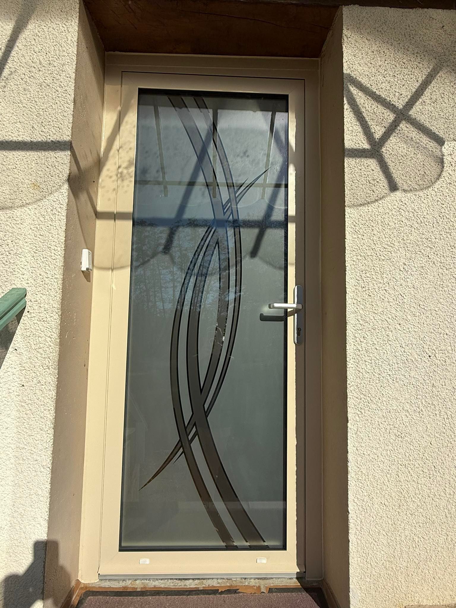 Porte très lumineuse avec ses grands hublots au vitrage sablé et la tierce vitrée.😃