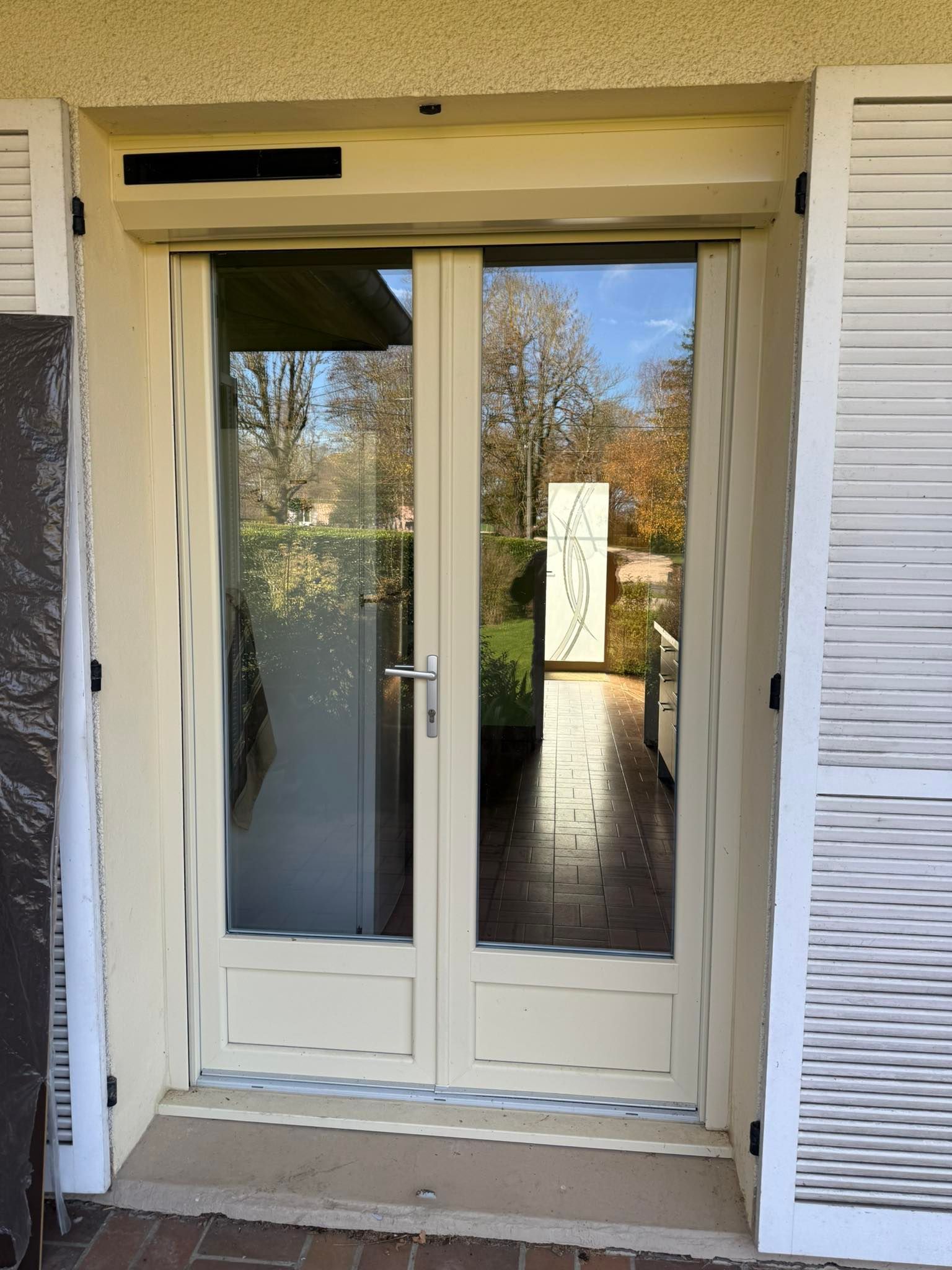 À Saint Germain du Bois ( 71) , pose en rénovation finalisée de deux belles portes sur mesure PVC dans un style traditionnel 👌. À s'y méprendre ...!