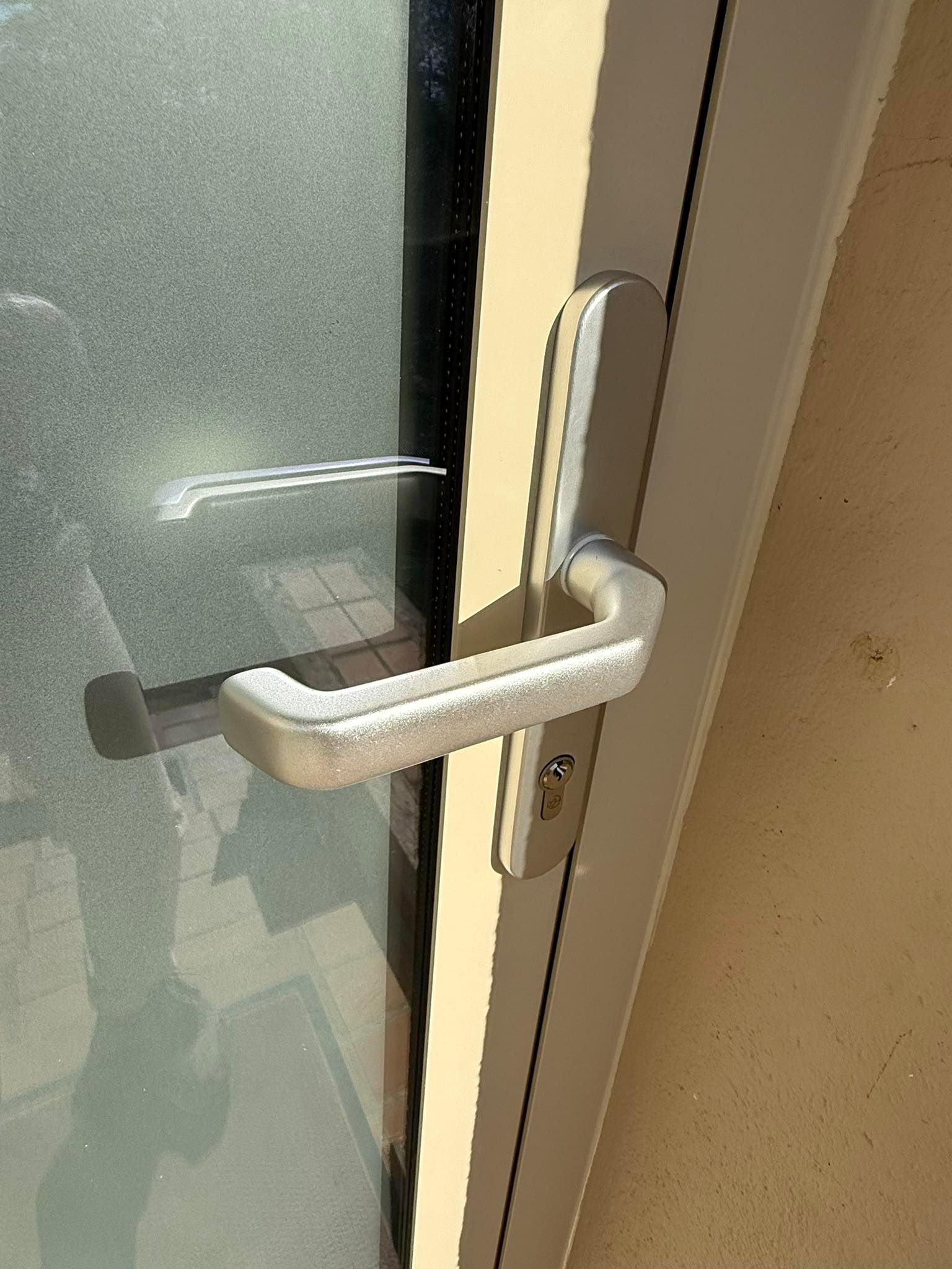 👉Barre de tirage extérieure couplée à un contrôle d’accès par lecteur d’empreintes👍.